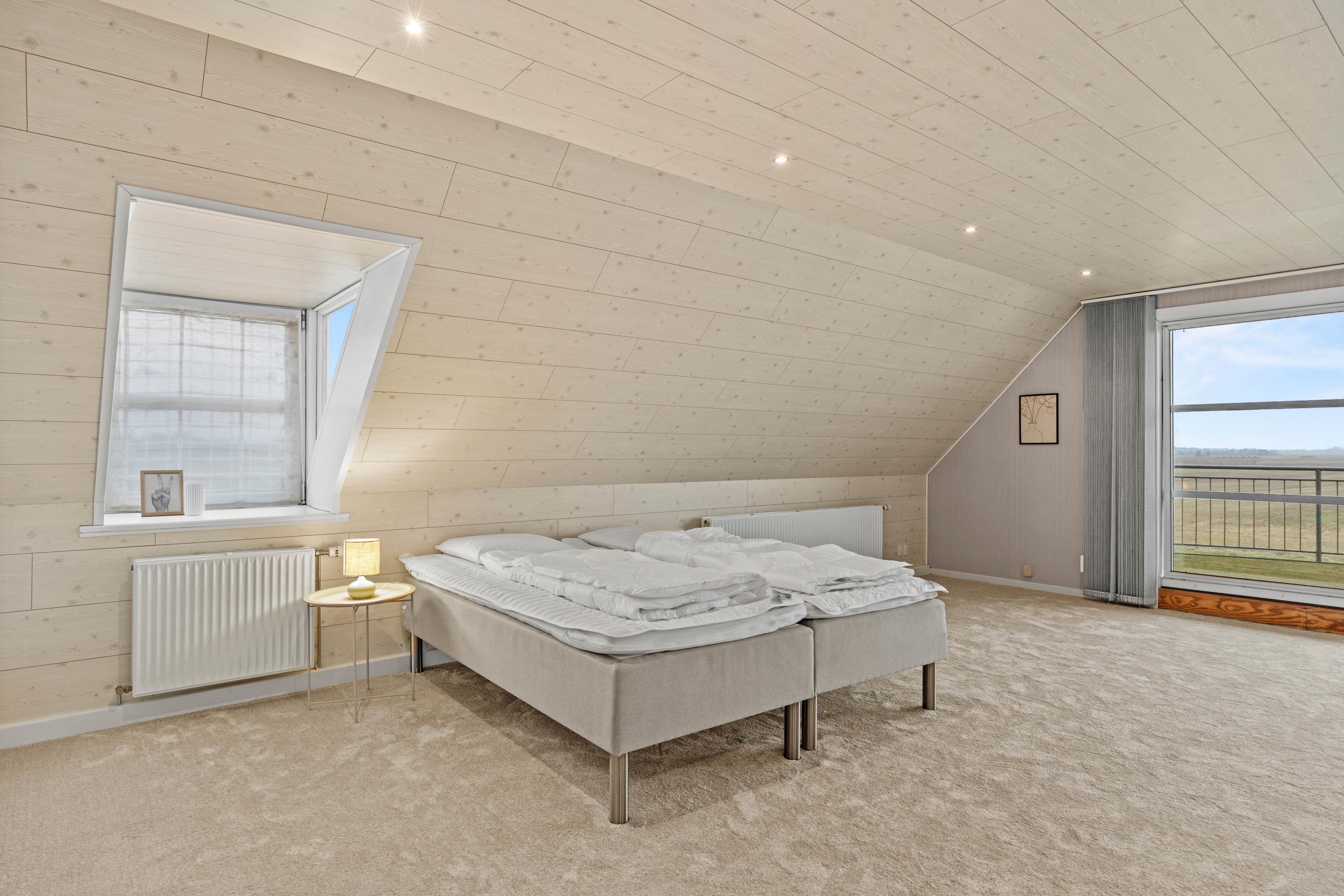 Das Ferienhaus bietet großzügige 505 m² Wohnfläche und Platz für bis zu 12 Personen, verteilt auf 6 geräumige Schlafzimmer, alle mit Doppelbetten ausgestattet. Eines der Schlafzimmer verfügt zudem über einen begehbaren Kleiderschrank, der zusätzlichen Komfort und Stauraum bietet. Das Haus ist ideal für große Familien, mehrere Generationen oder Gruppen von Freunden.