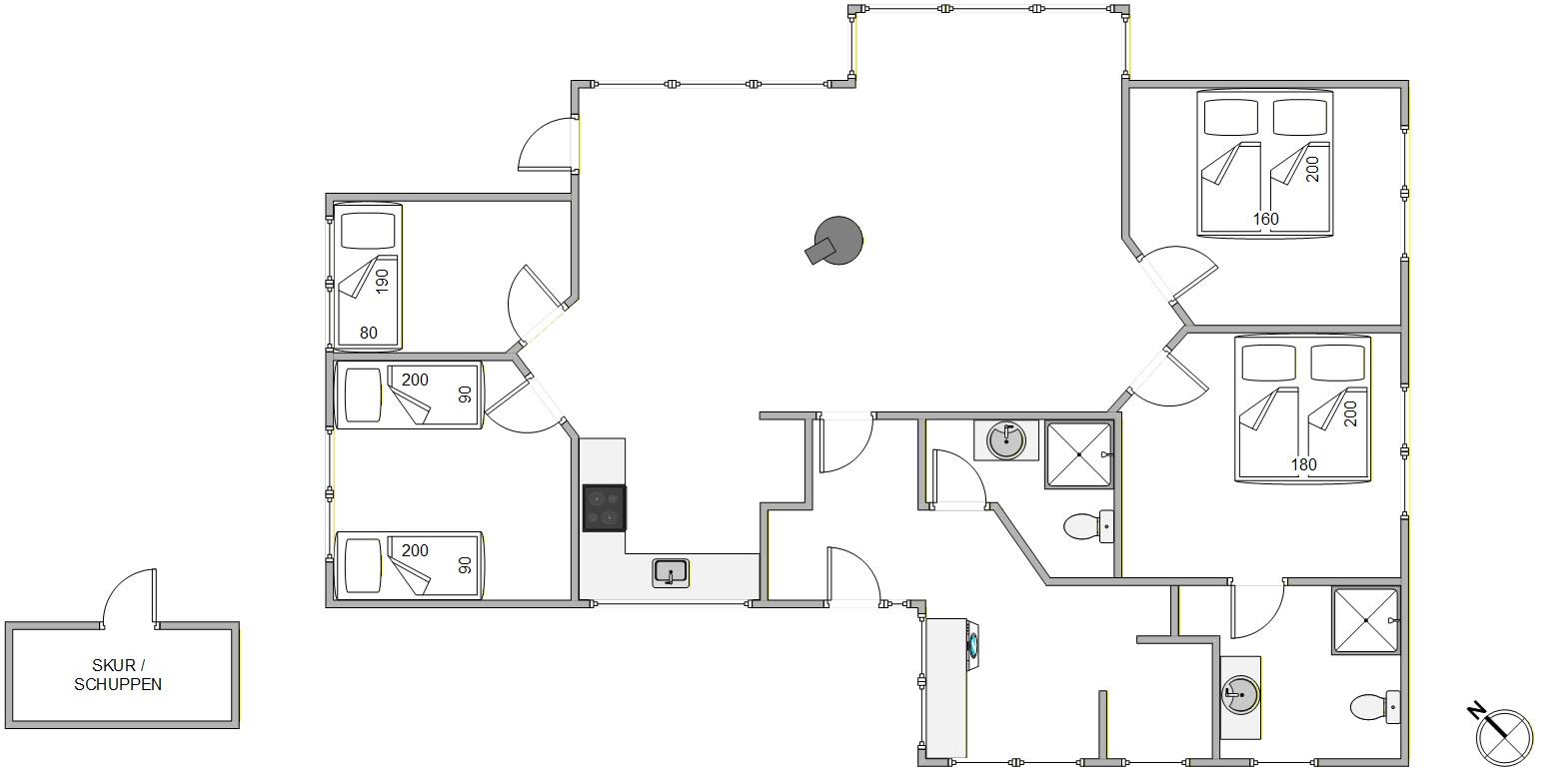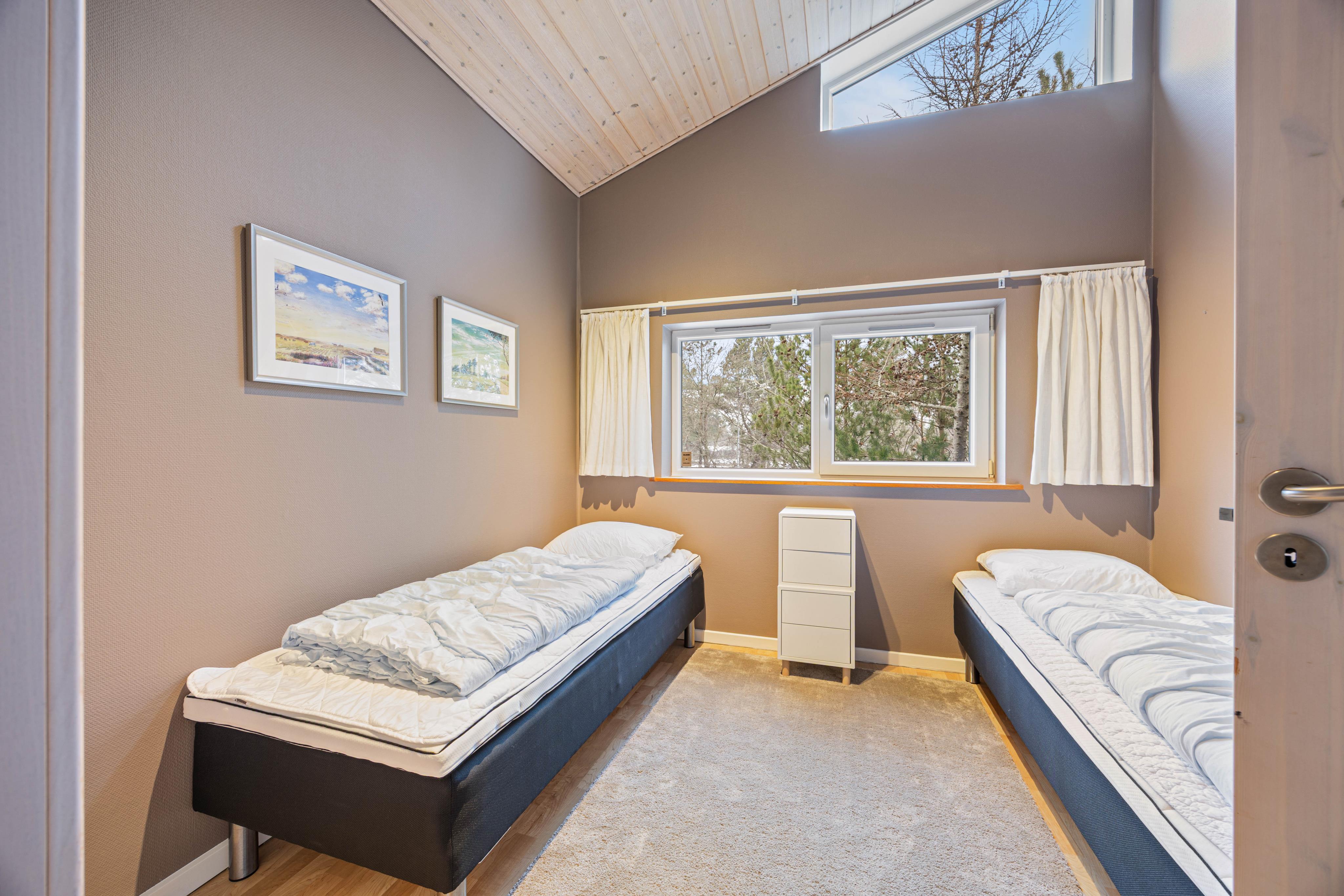 Dieses Ferienhaus in Nymindegab bietet euch mit 4 Schlafzimmern ausreichend Platz für gemeinsame Urlaubstage. 2 Schlafzimmer sind mit Doppelbetten ausgestattet, während euch in den weiteren Räumen 3 Einzelbetten zur Verfügung stehen. Damit eignet sich das Ferienhaus ideal für Familien oder kleine Reisegruppen mit bis zu 6 Personen.