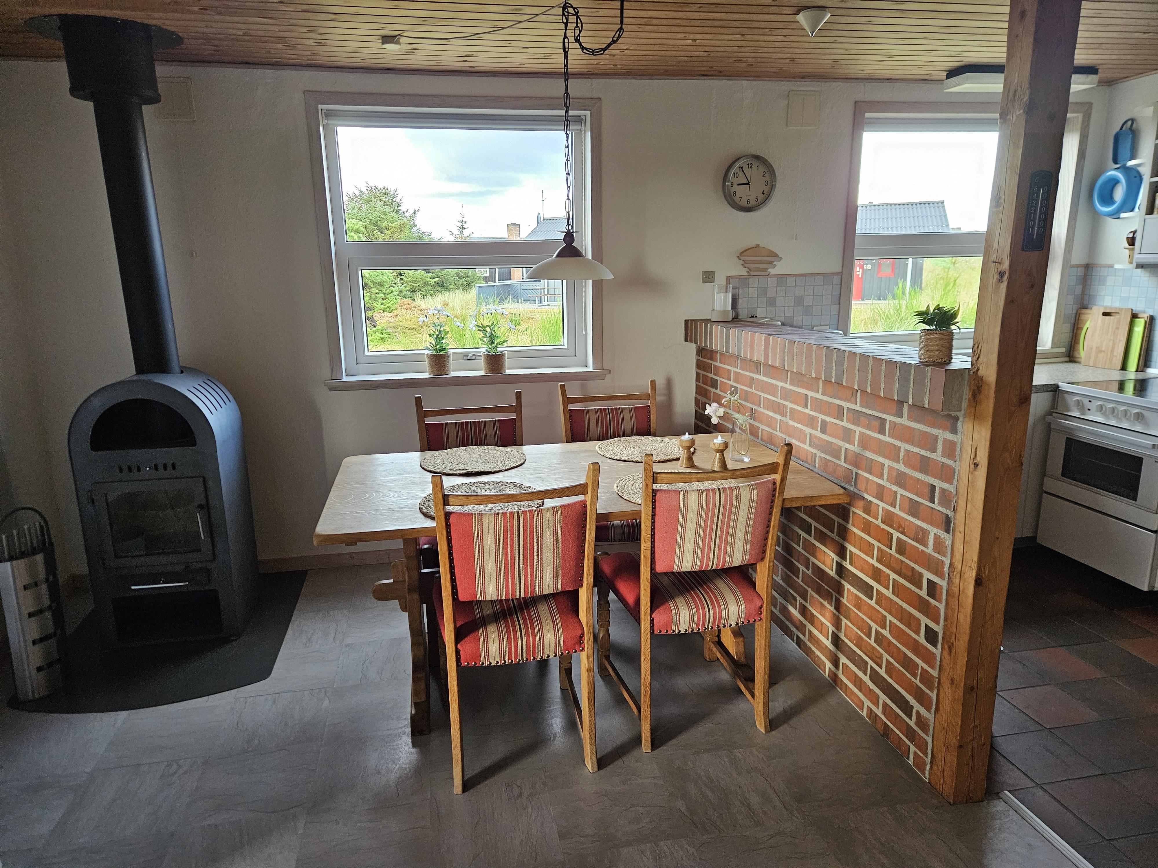 Der Holzofen im Wohnbereich sorgt an Herbst- oder Winterabenden für wohlige Wärme und schafft eine hyggelige Stimmung, in der ihr einfach zur Ruhe kommen könnt.