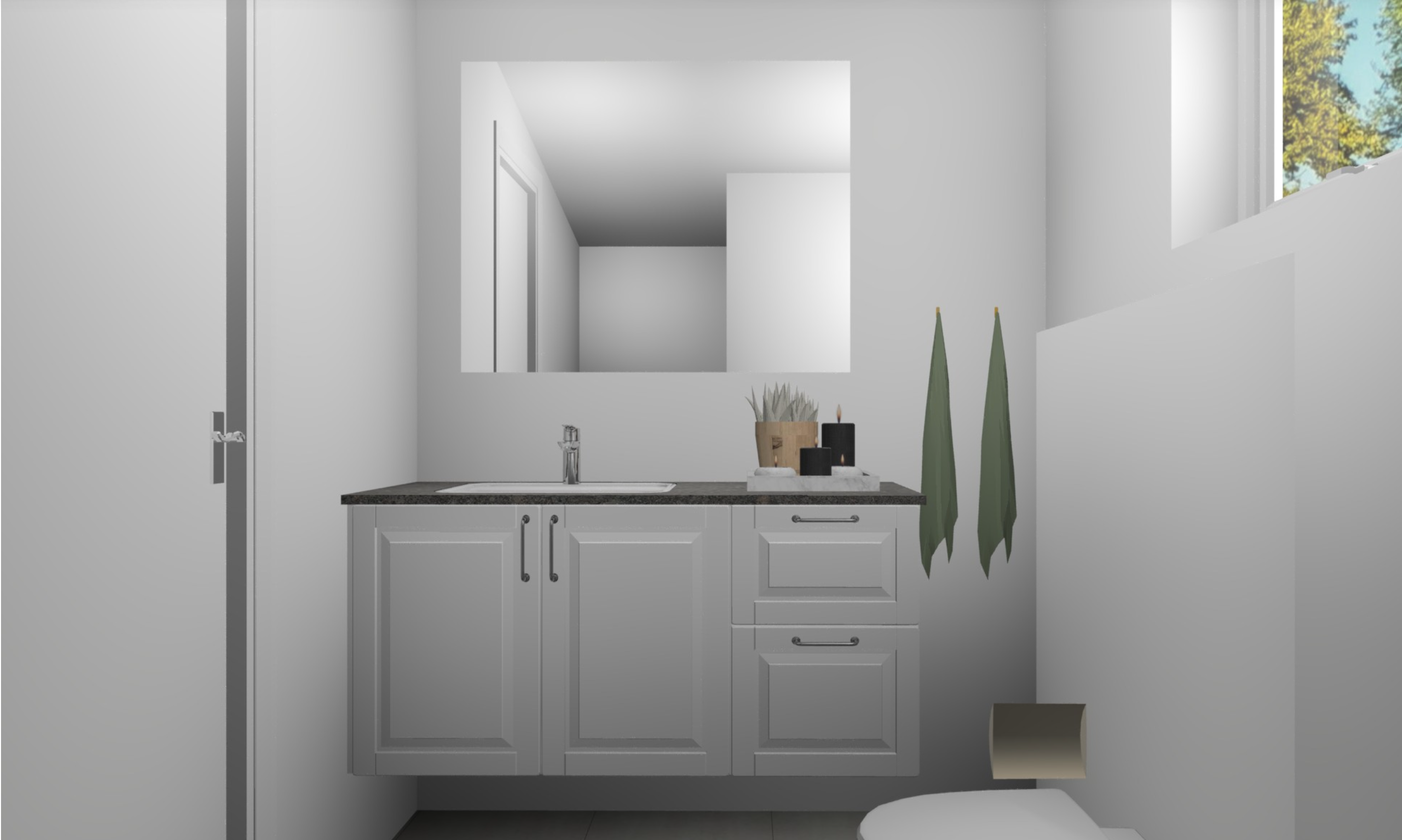 Das kleine, aber feine Badezimmer verfügt über Fußbodenheizung, die besonders an kühleren Tagen für ein angenehmes Raumklima sorgt.