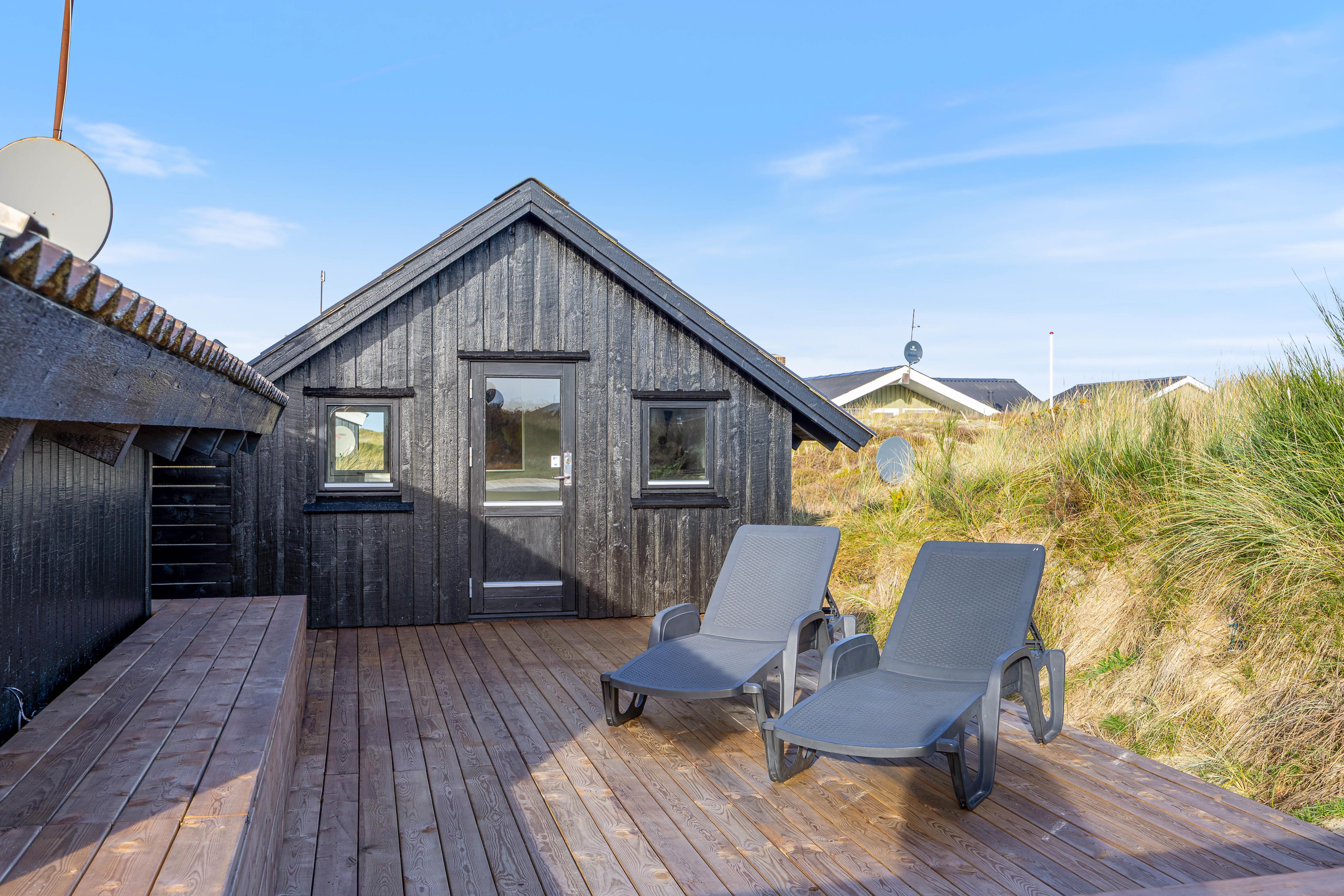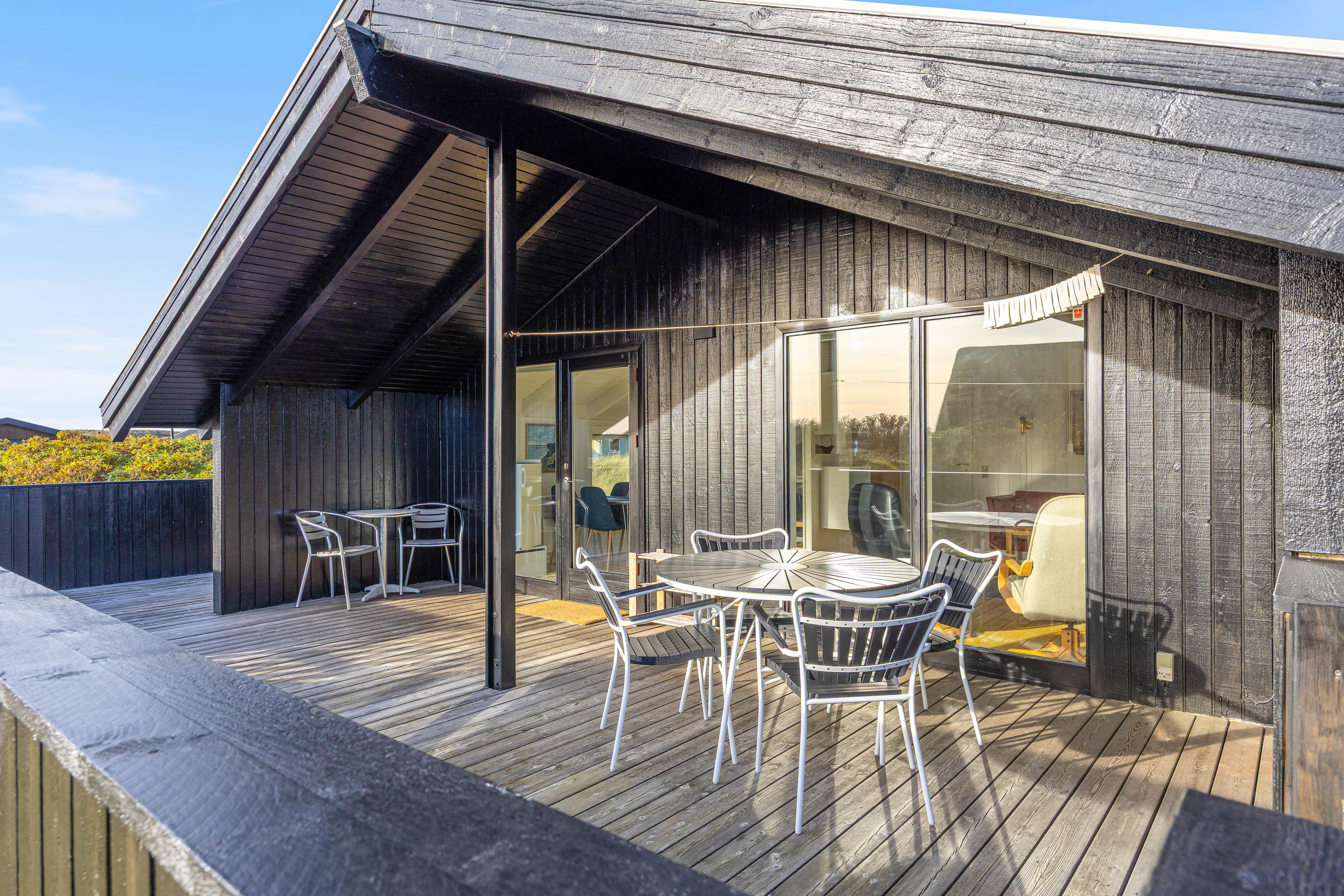 Die große Südwestterrasse mit bequemen Gartenmöbeln, Liegestühlen und Grill ist abgeschirmt und teilweise überdacht. Hier trifft sich die ganze Familie zu einem köstlichen Grillabend – vielleicht mit frisch gefangenem Fisch aus dem Ringkøbing Fjord? Wenn ihr beim Angeln kein Glück hattet, könnt ihr den Fisch auch in der gemütlichen Hafenstadt Hvide Sande kaufen, die eine 15-minütige Fahrt von hier entfernt ist.