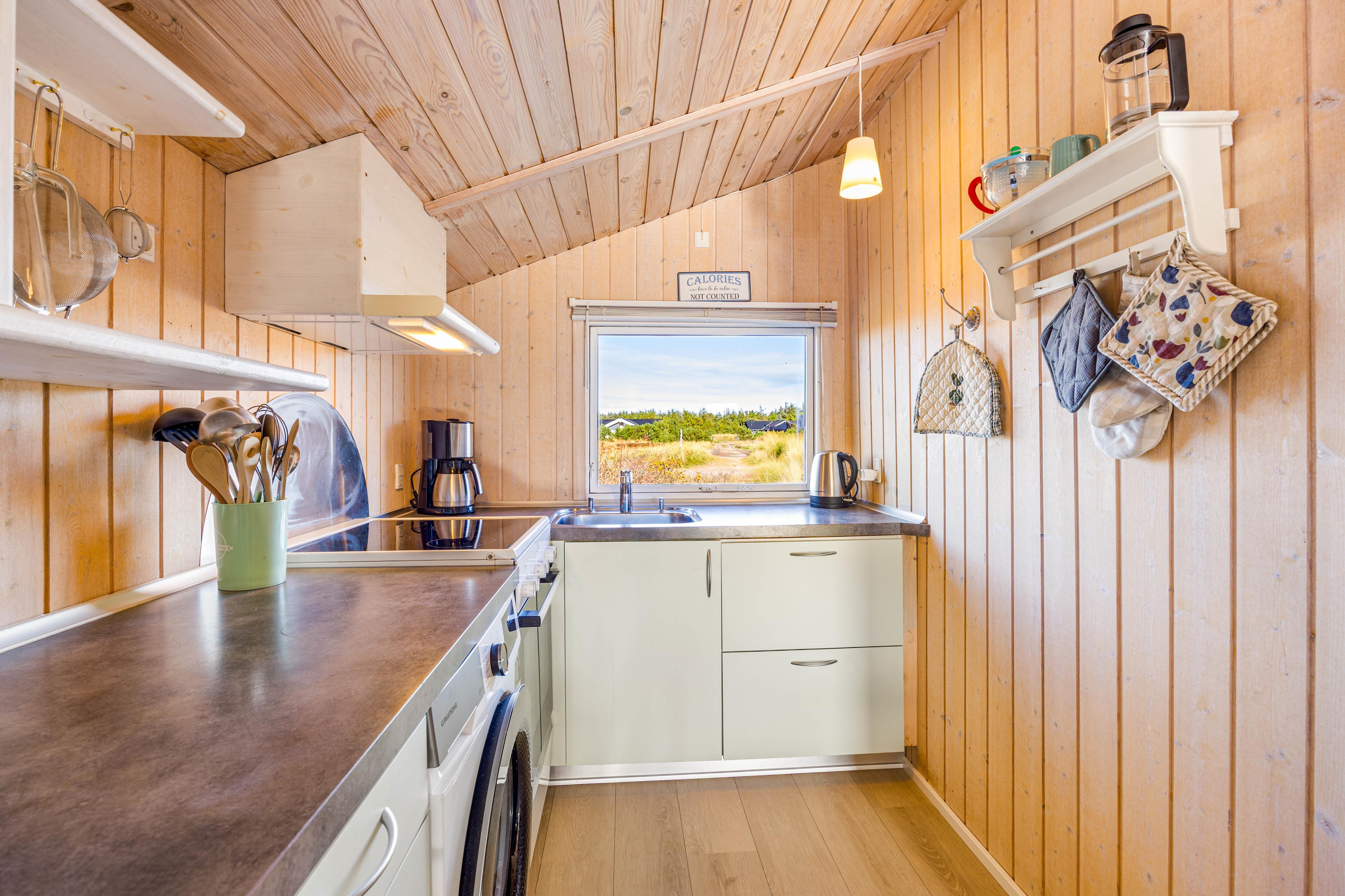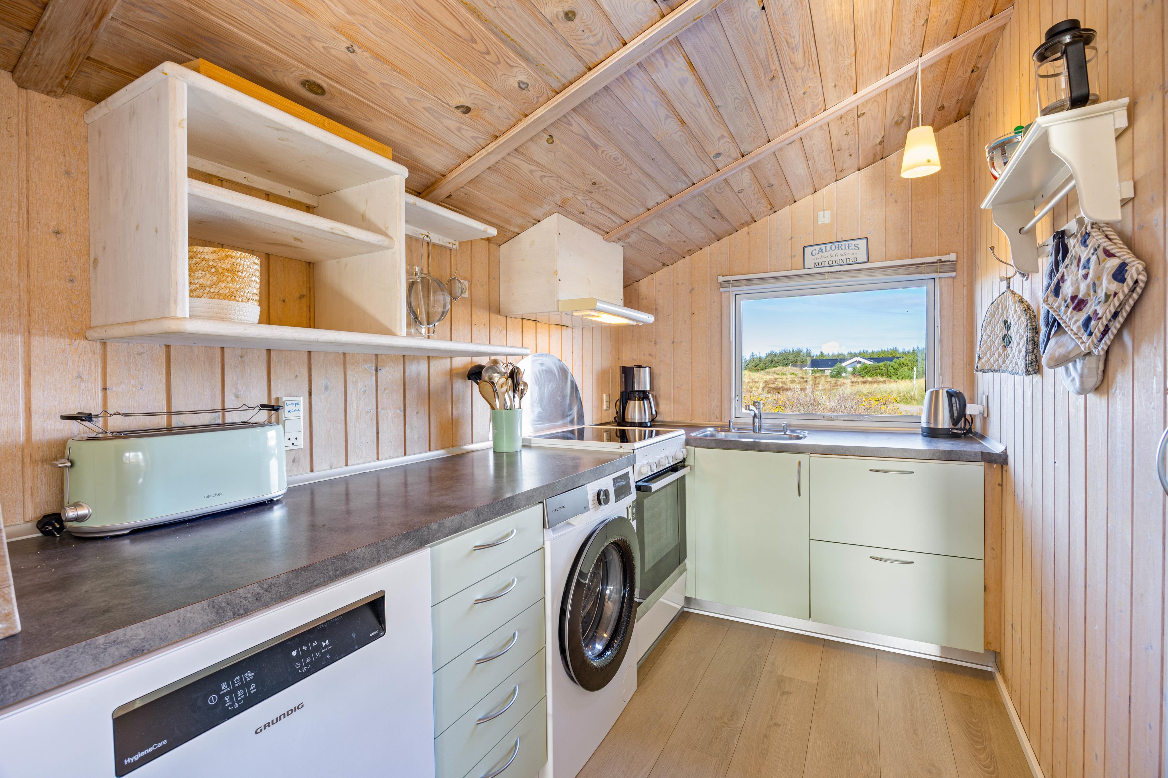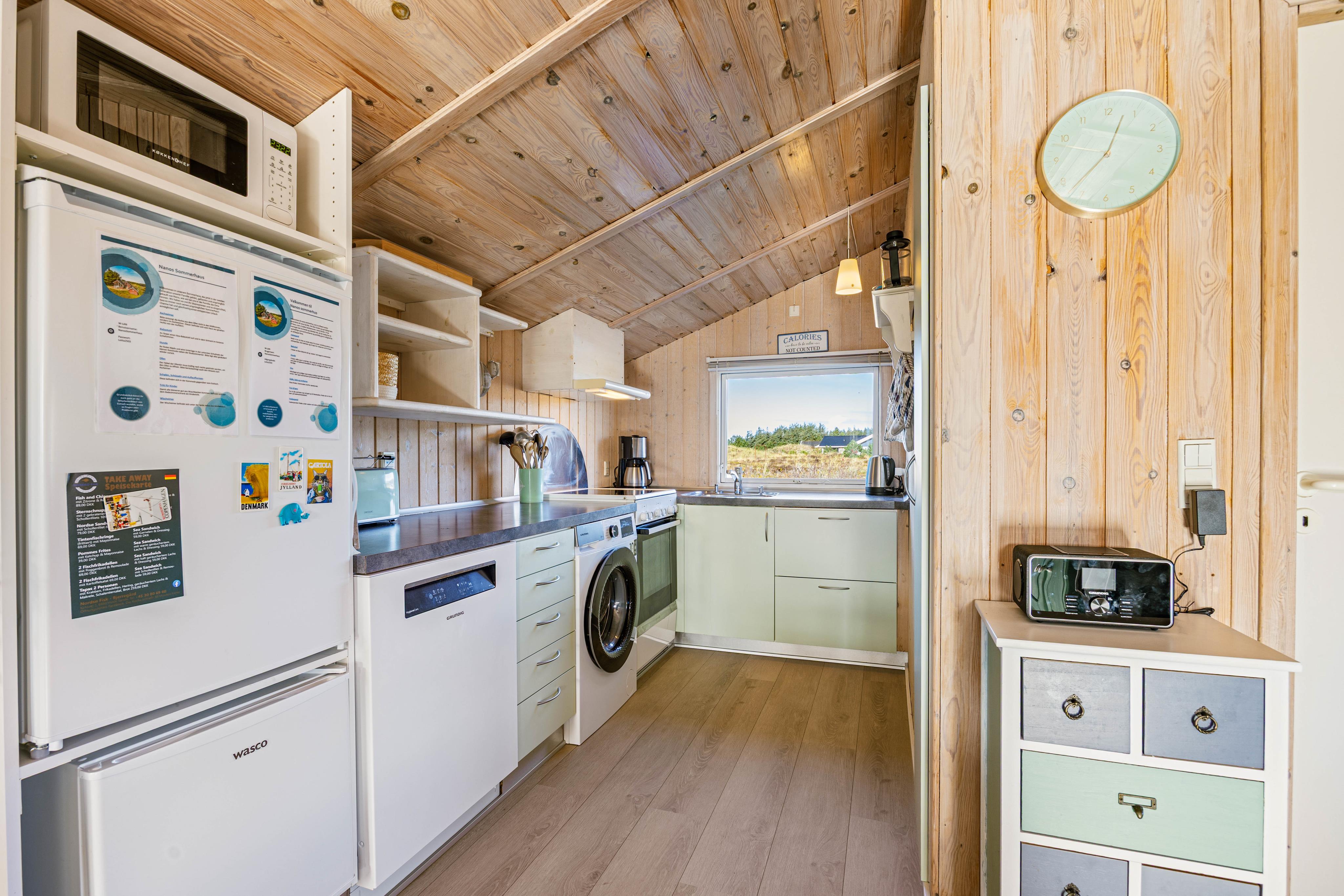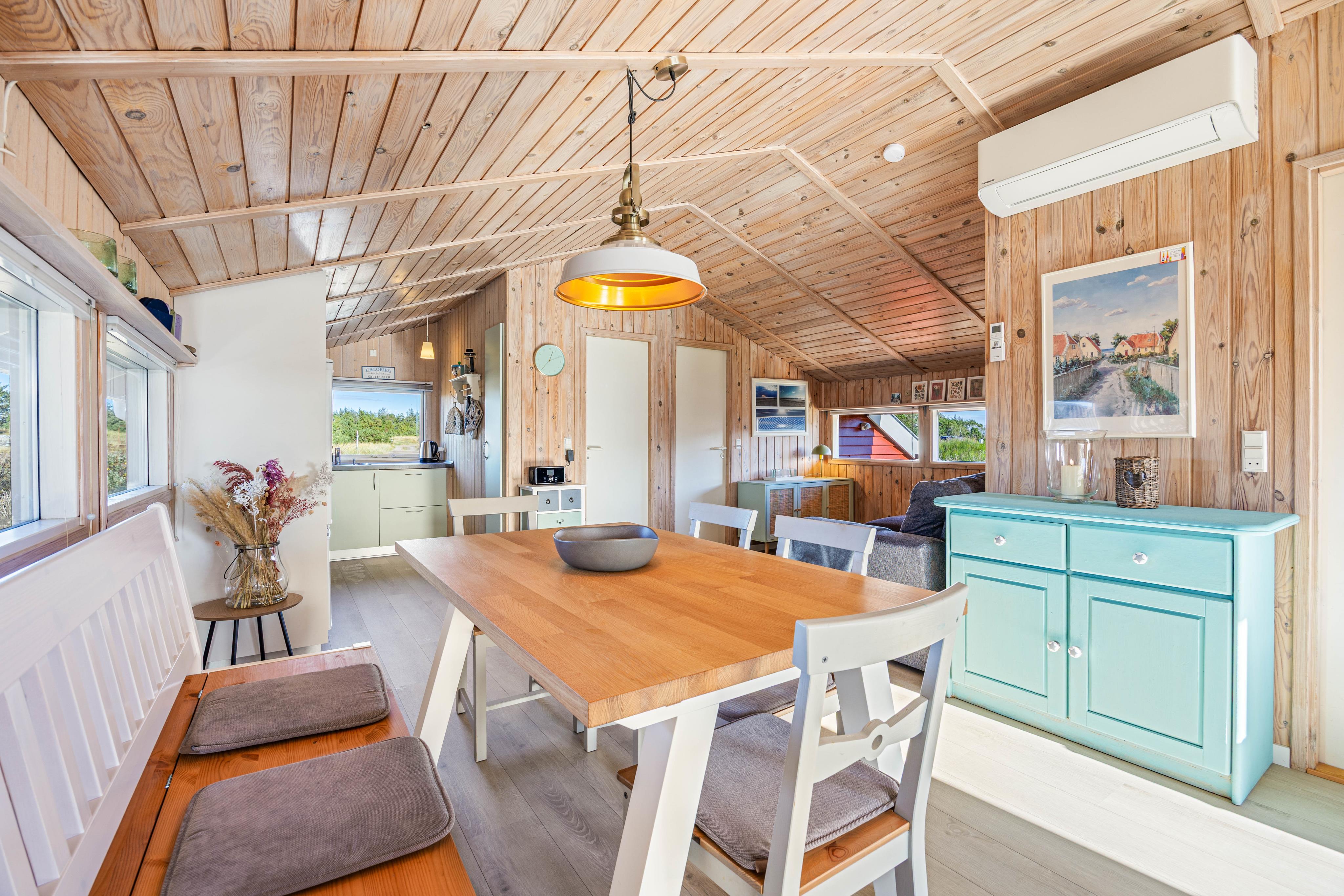 Das charmante Ferienhaus bietet euch eine typische skandinavische Einrichtung mit viel Ferienhaus-Charme. Im Wohnzimmer sorgt ein Kaminofen für wohlige Wärme und eine hyggelige Atmosphäre, gerade an kühleren Abenden. Zusätzlich unterstützt eine Wärmepumpe das Raumklima.