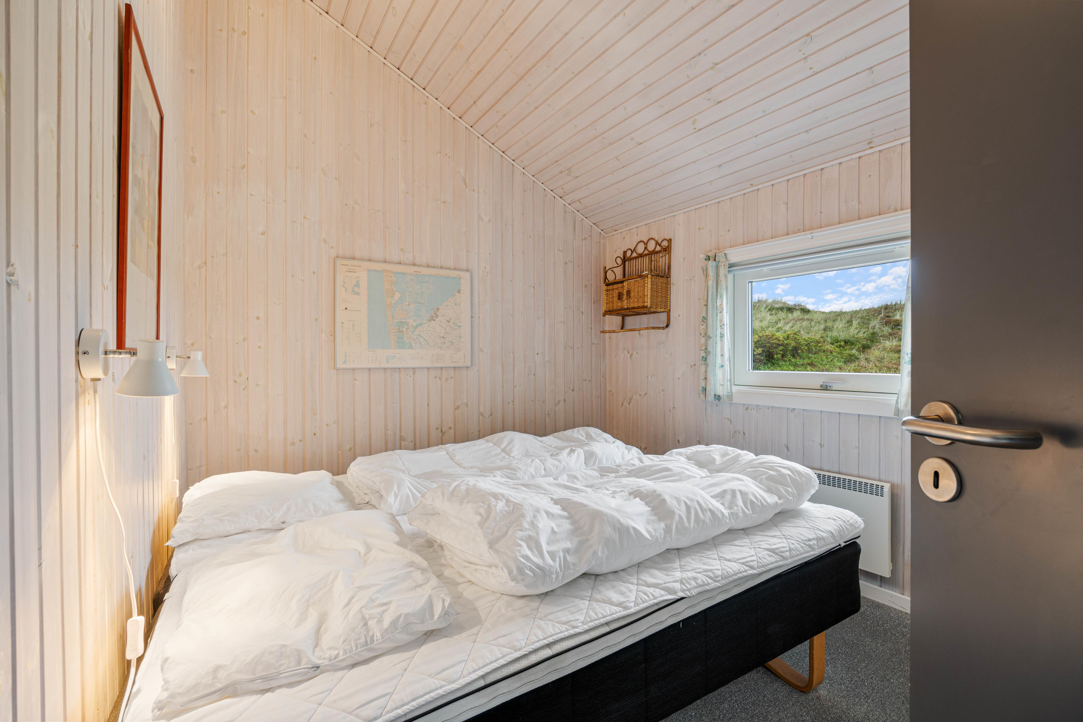 Ein sehr schönes, 92 m2 großes Ferienhaus, dass auf einem 1.343 m2 großen Naturgrundstück liegt. Das Haus besitzt 3 Schlafzimmer, 2 davon haben verfügen über Doppelbetten und in dem letzten Zimmer findet Ihr 2 Einzelbetten.