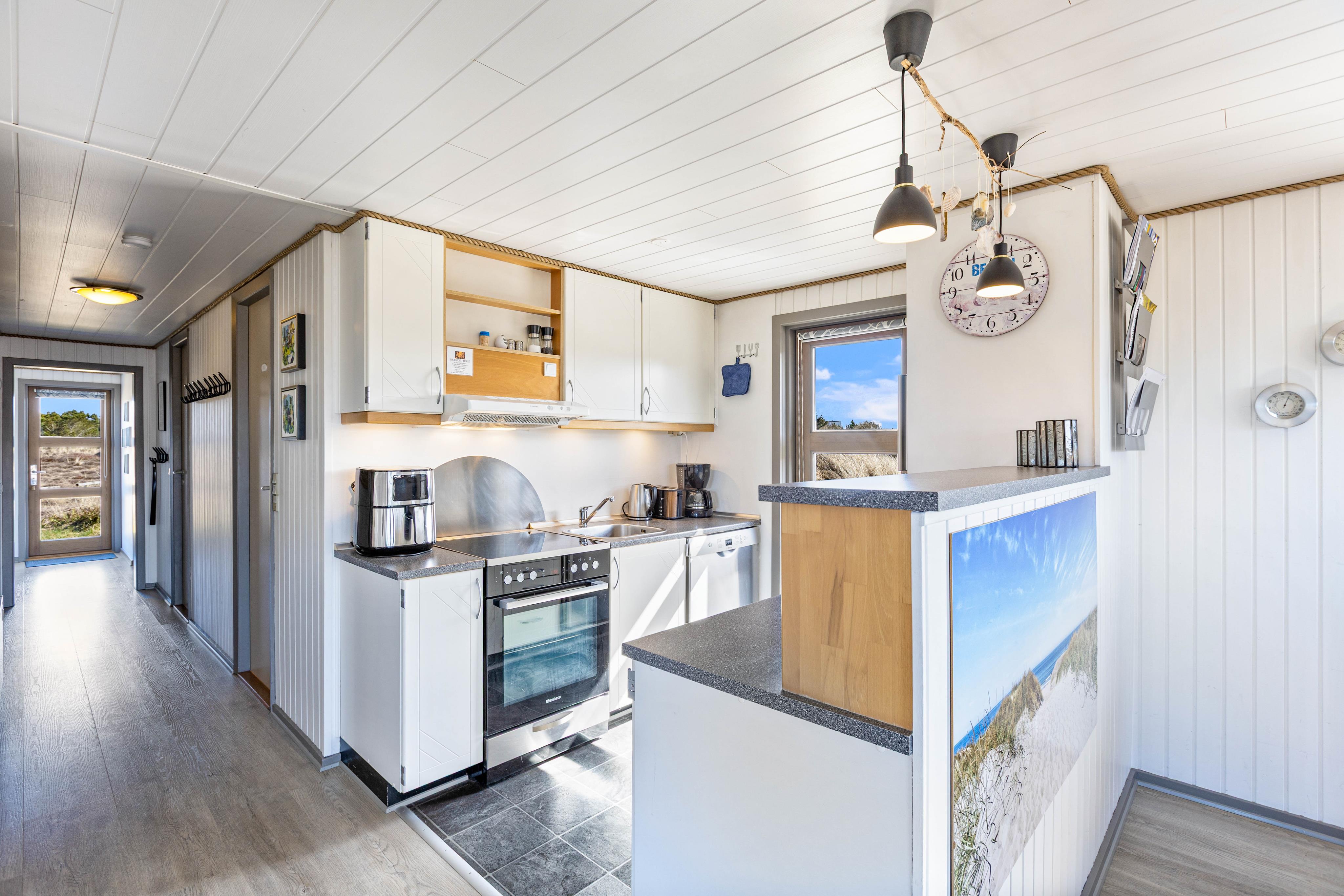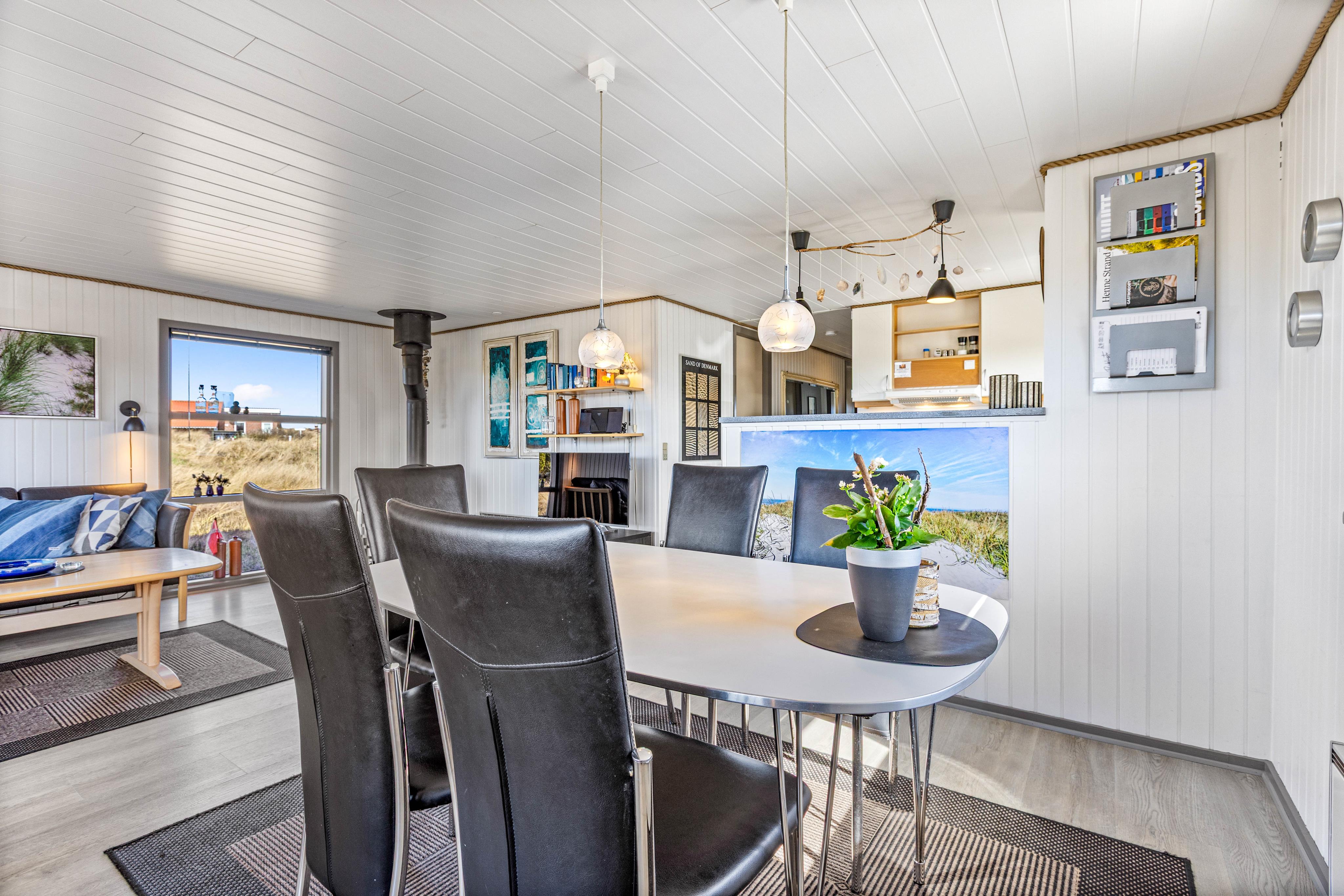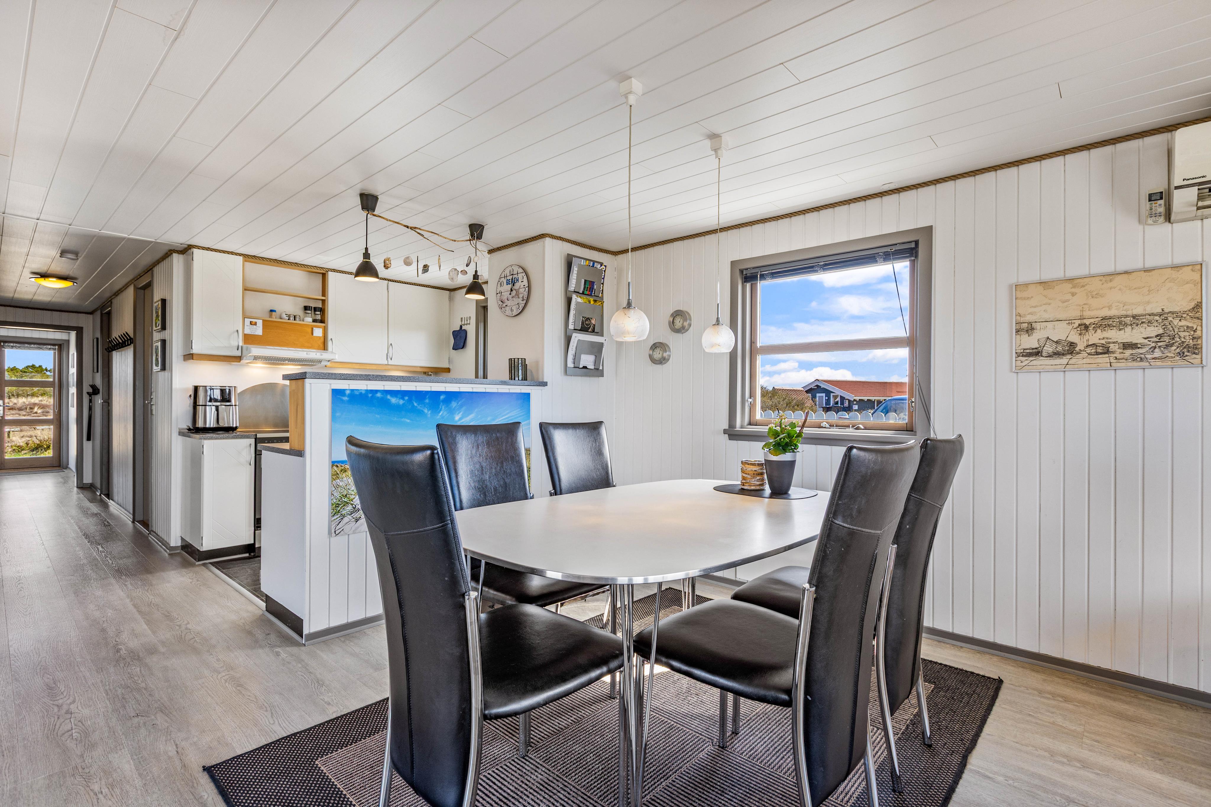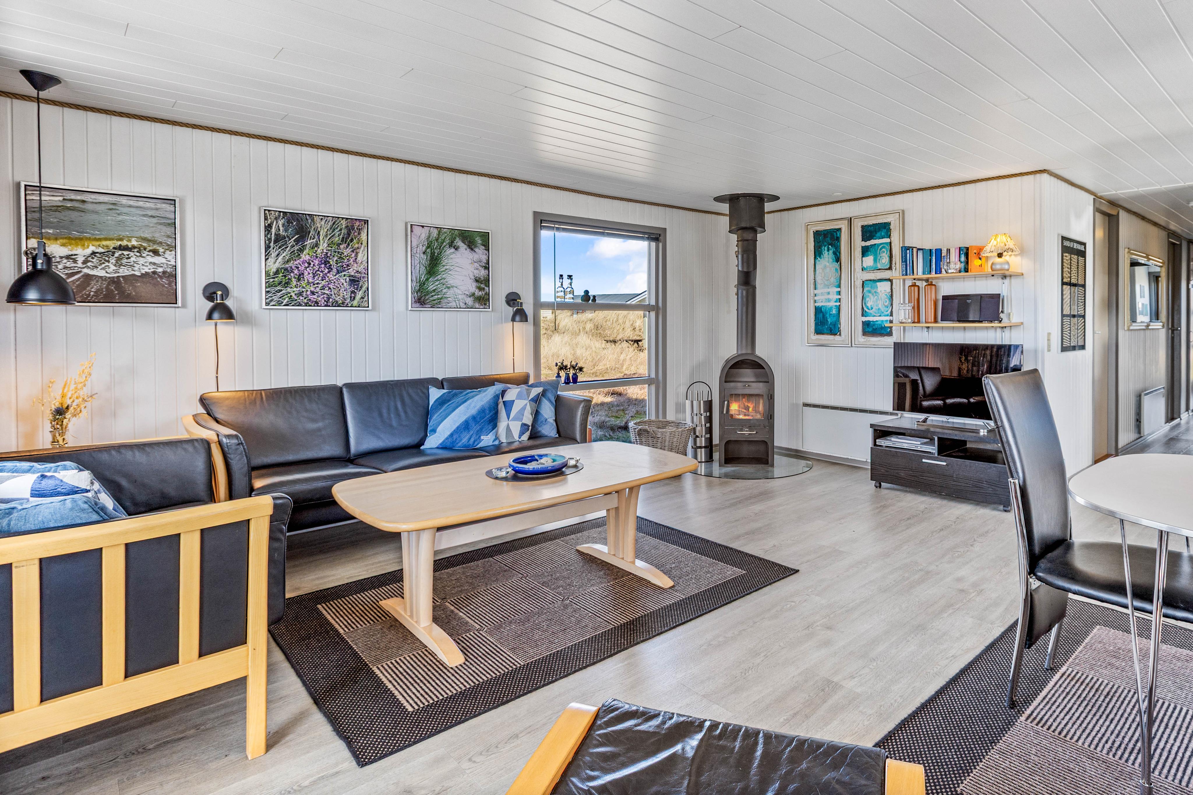 Helle Wände, Decken und Böden machen dieses gemütliche Sommerhaus zu einem perfekten zu Hause für euren Familienurlaub. Hier habt ihr eine schöne Sofaecke, wo ihr euch abends sammeln und das Beisammensein mit einem Gesellschaftspiel genießen könnt. Entzündet den Kamin und genießt die schöne Atmosphäre, die durch das Knistern des Holzes entsteht. Aber auch mit der energiesparenden Wärmepumpe könnt ihr das Ferienhaus auf eure Wohlfühltemperatur bringen.