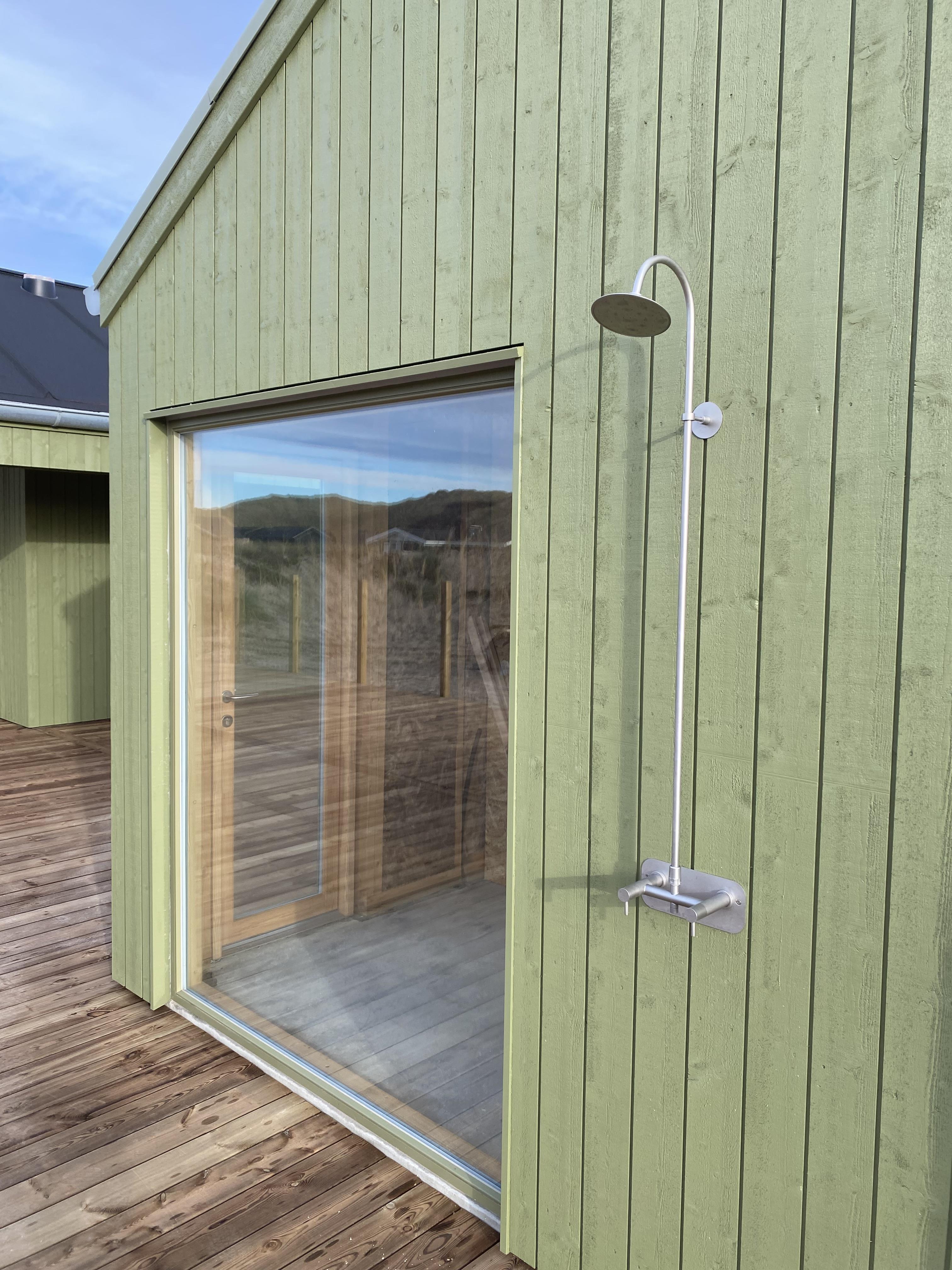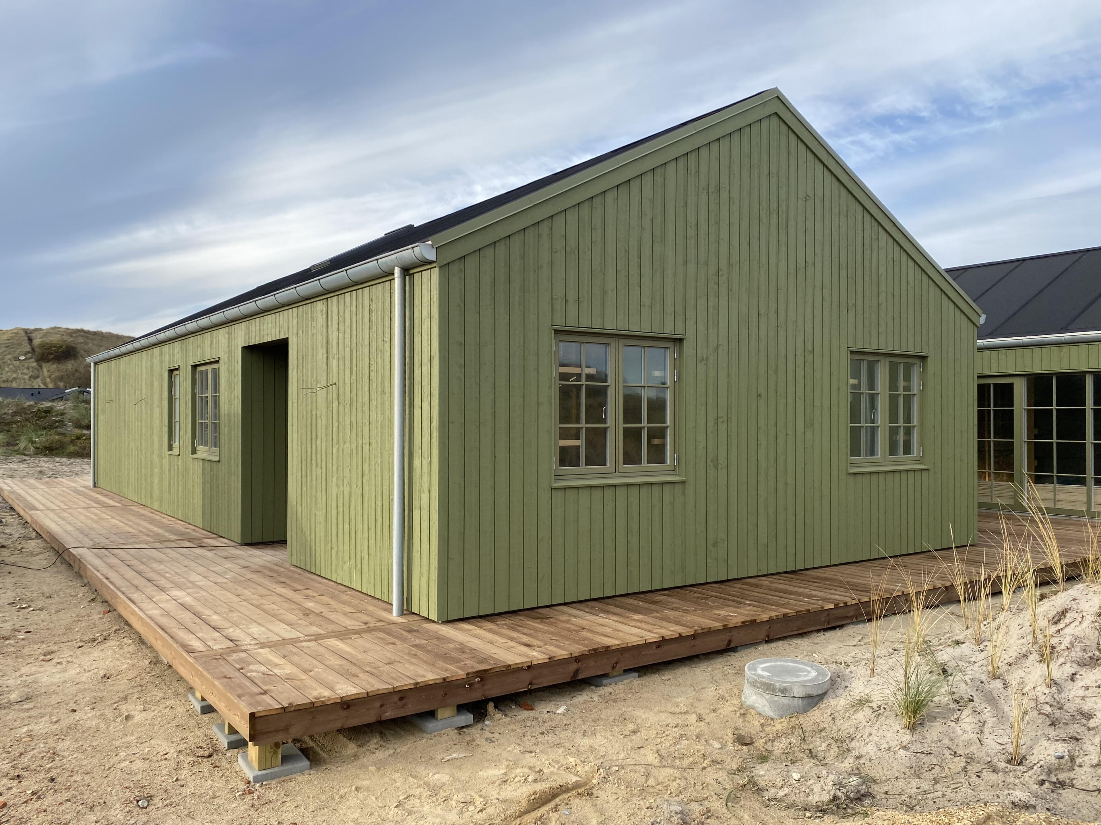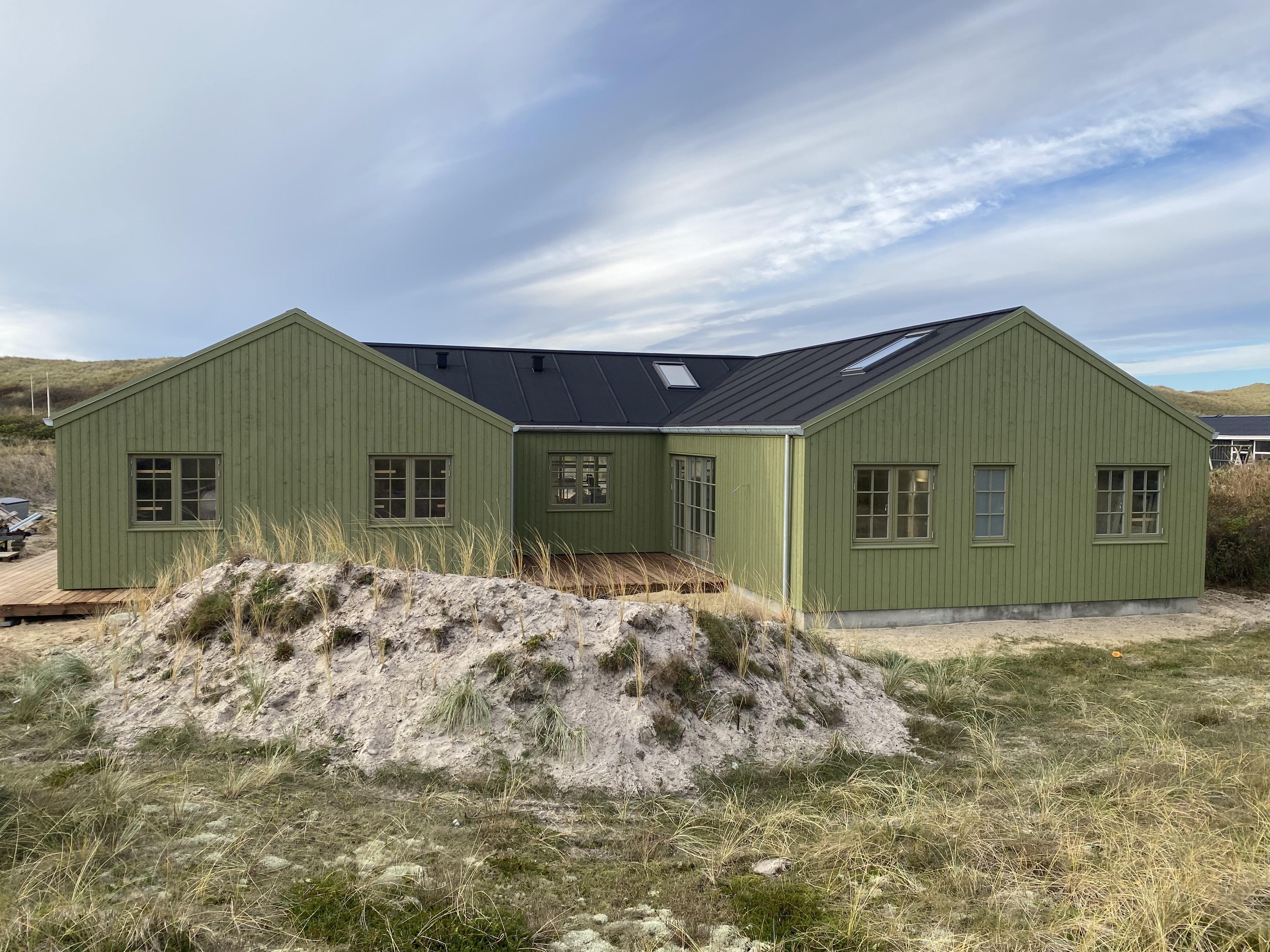 Das Ferienhaus fügt sich mit seiner grünen Fassade harmonisch in die Natur ein und verbindet moderne Ausstattung mit Gemütlichkeit. In der offenen Küche mit Essbereich und Wohnzimmer könnt ihr gemeinsam kochen, essen und entspannen – der Kaminofen sorgt für wohlige Wärme. Neben dänischen TV-Kanälen stehen euch auch deutsche Programme zur Verfügung. 7 Schlafzimmer bieten reichlich Platz: 5 davon mit Doppelbetten, 2 weitere mit jeweils 2 Einzelbetten. Zusätzlich gibt es 2 separate Hems – einer im Aktivitätsraum mit zwei Schlafplätzen und ein weiterer im Eingangsbereich mit ebenfalls zwei Schlafplätzen. So können auch größere Familien oder befreundete Paare komfortabel untergebracht werden.