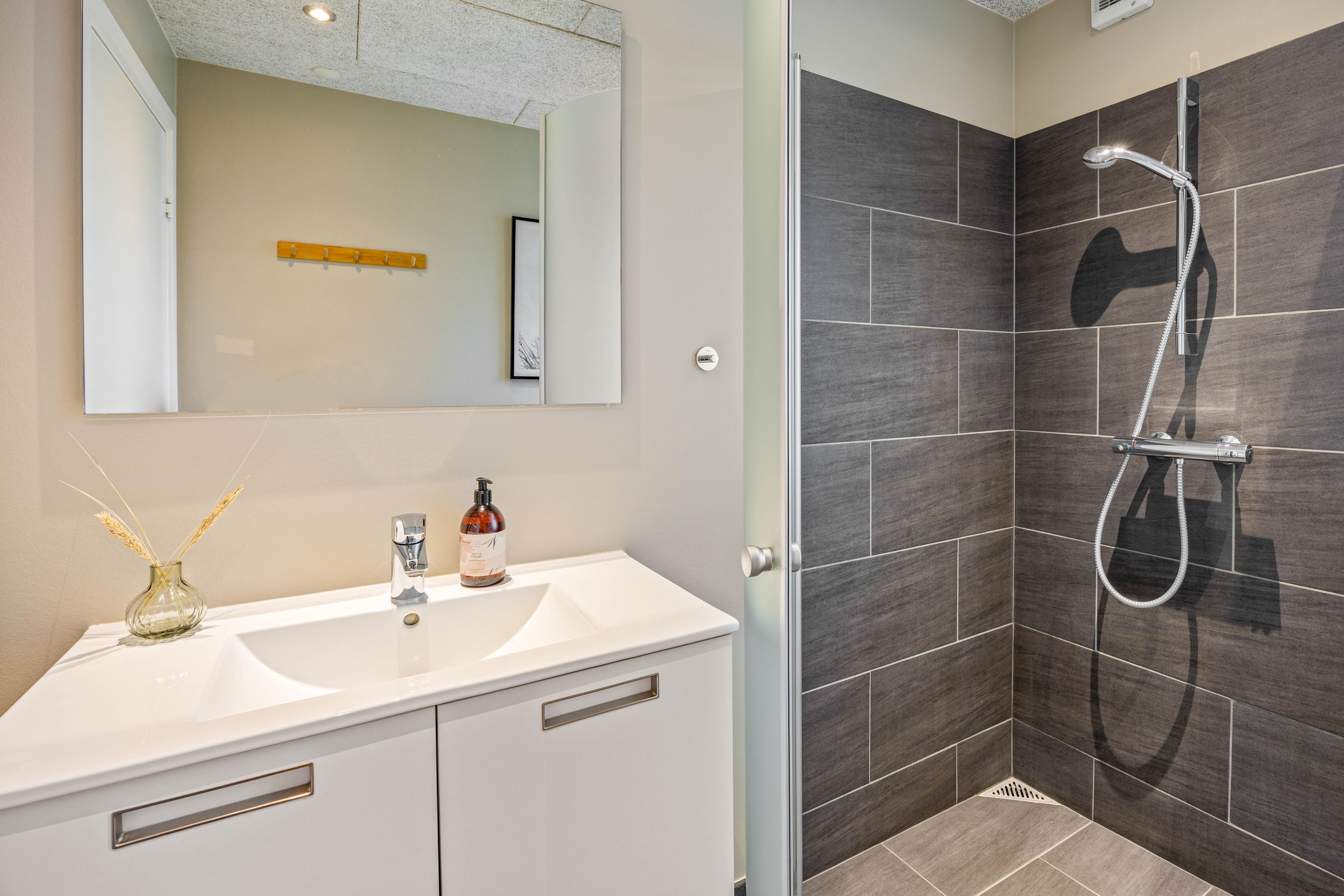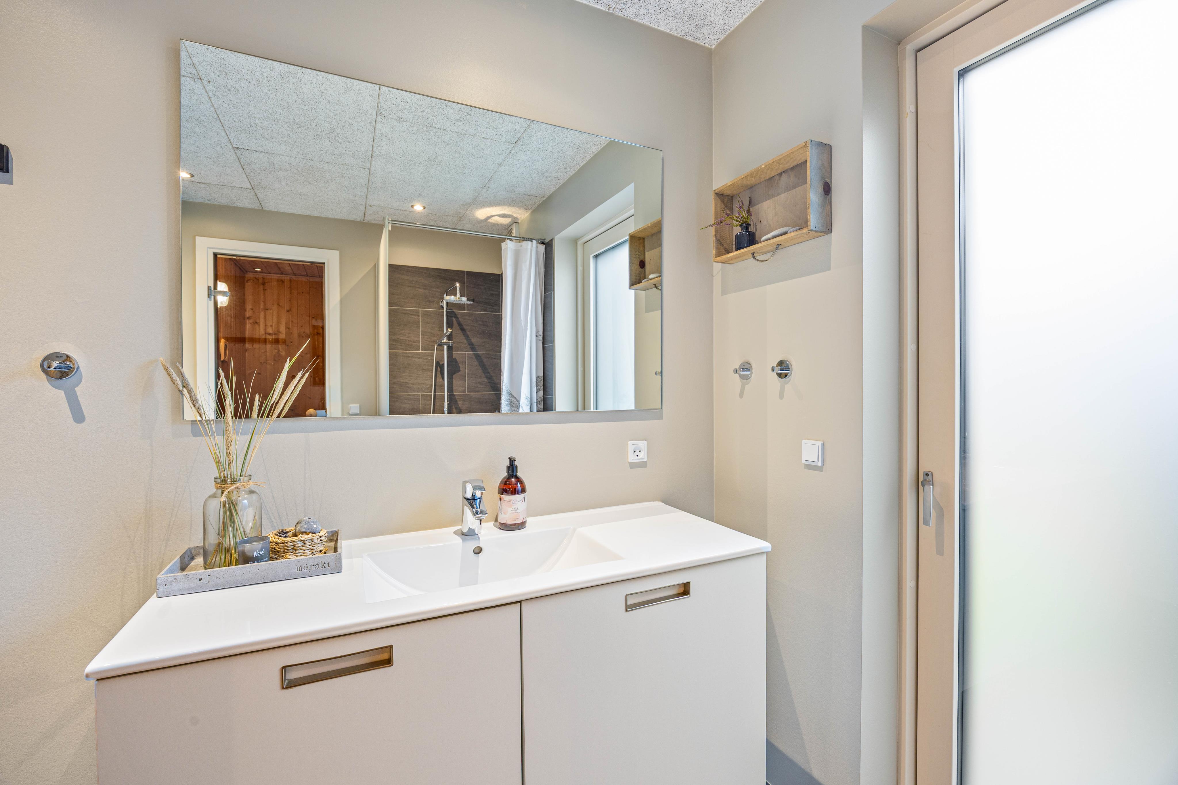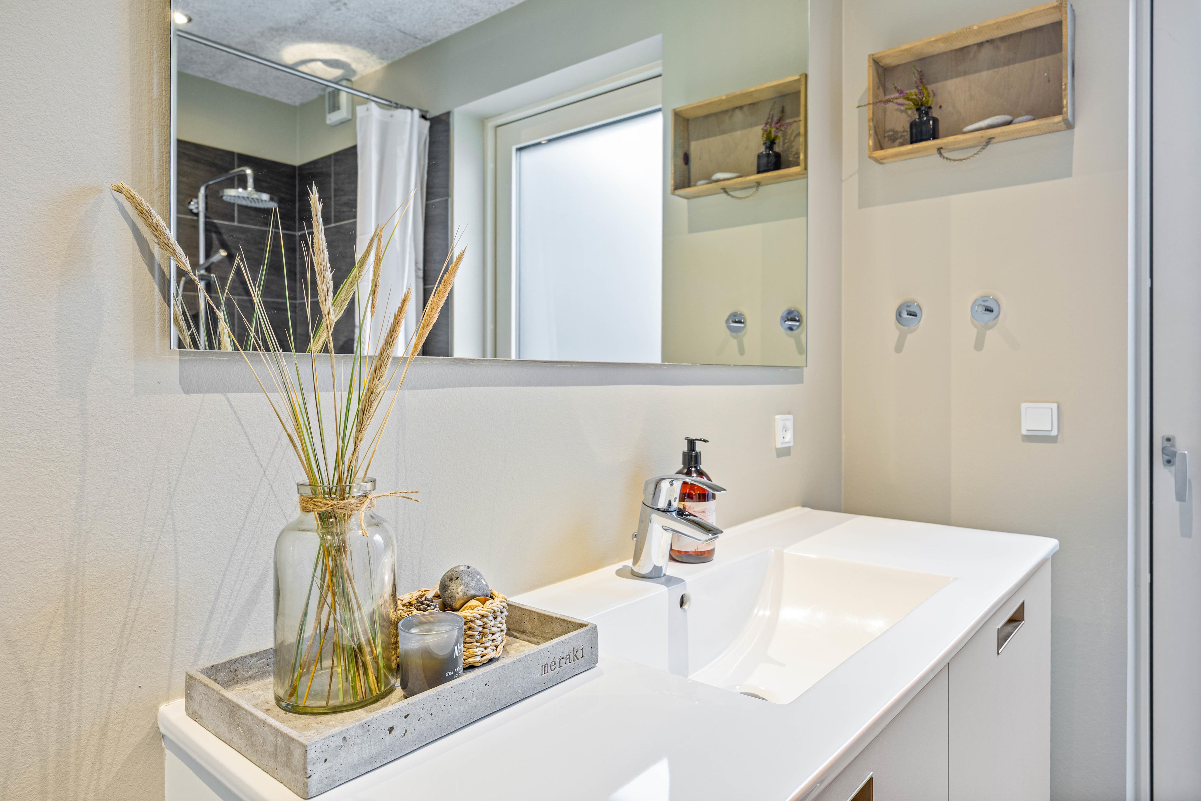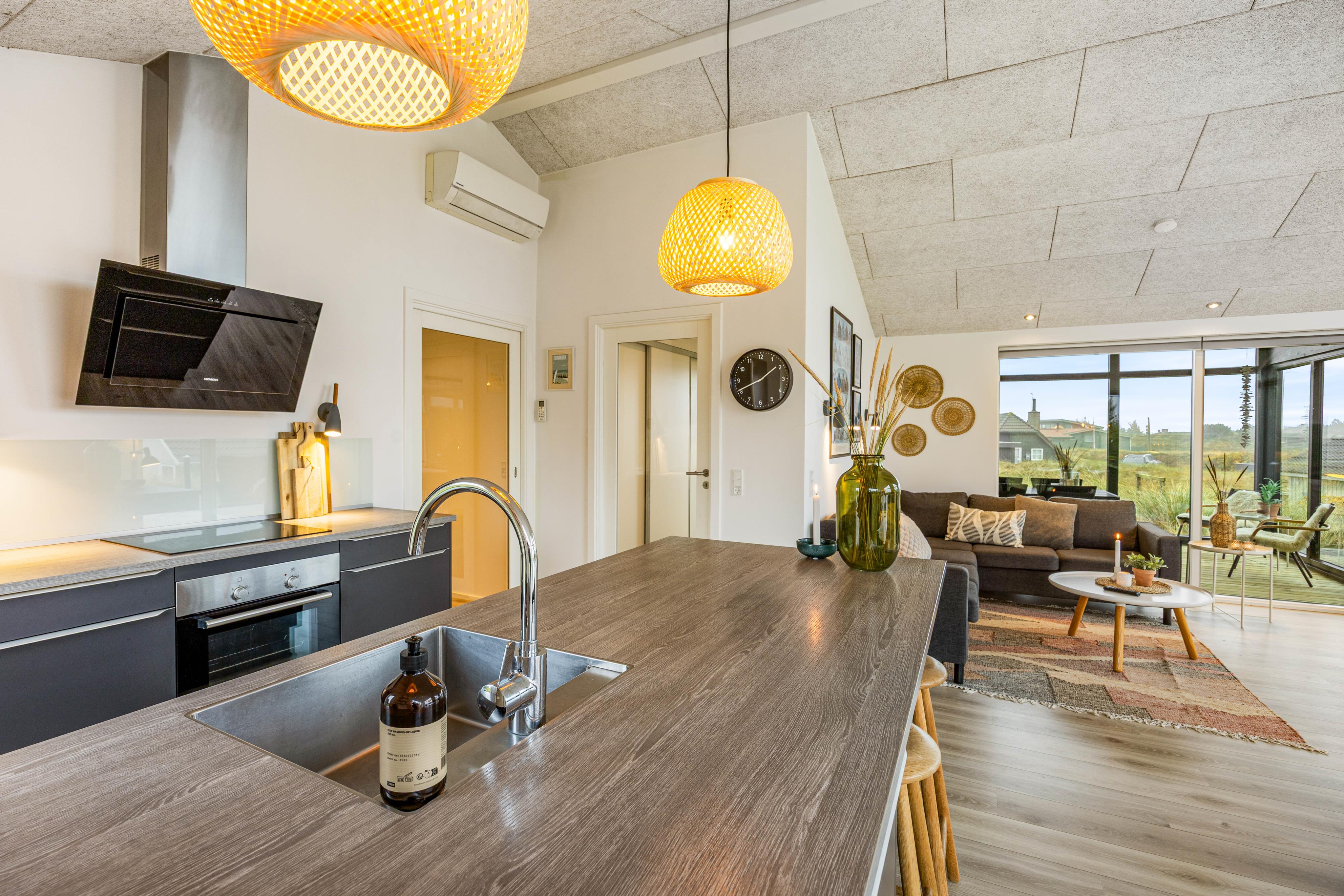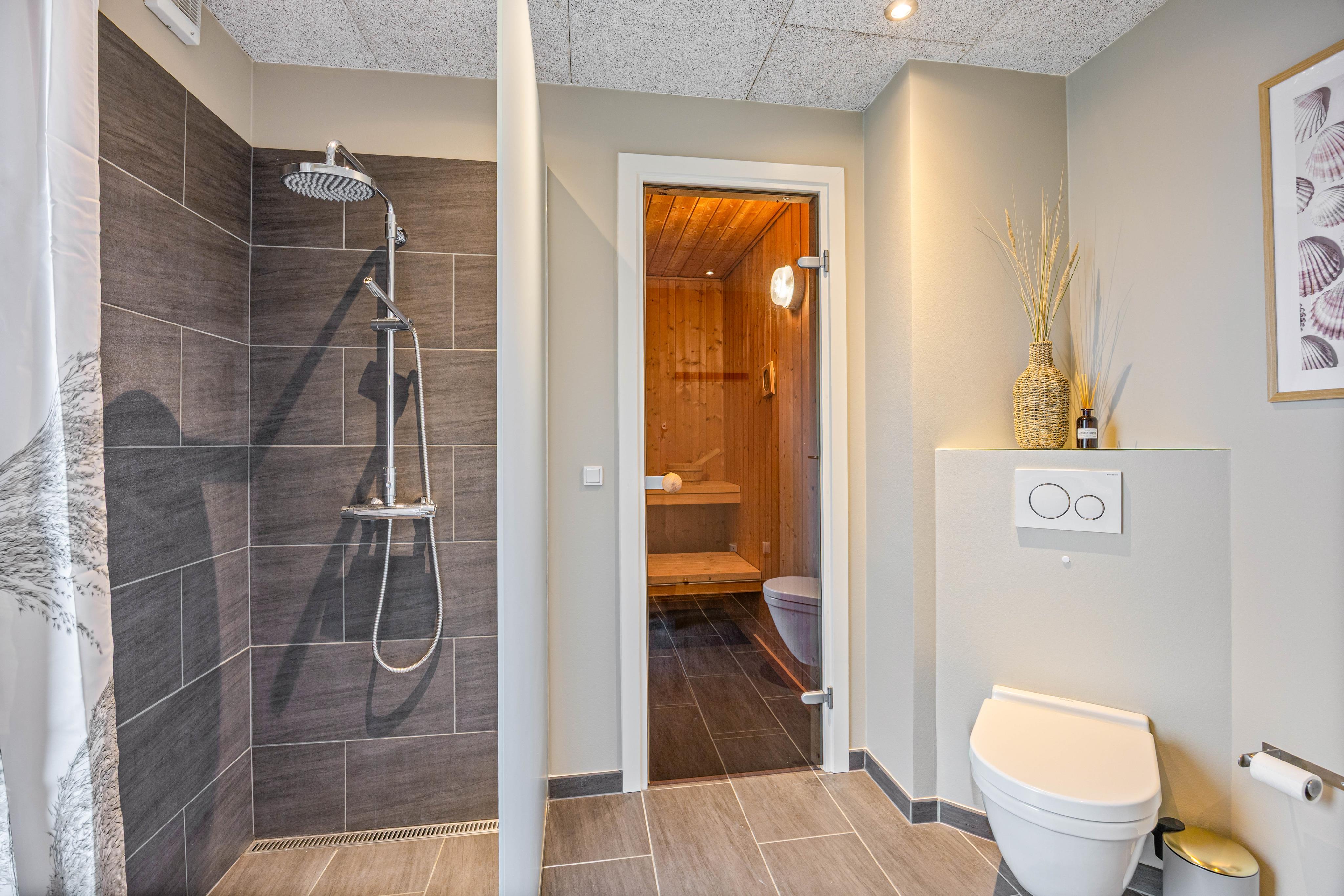 Die helle und offene Küche lädt zum gemeinsamen Kochen ein, und verfügt natürlich über alles was man zum Kochen benötigt. Nach dem Essen könnt ihr in der Sauna die Füße hochlegen und dem Geschirrspüler den Abwasch überlassen. Warst du am Strand? Dann ist die Aussendusche auf der Terrasse perfekt, um nach einem Bad im Meer, Sand und Salz abzuspülen (von April bis November nutzbar).