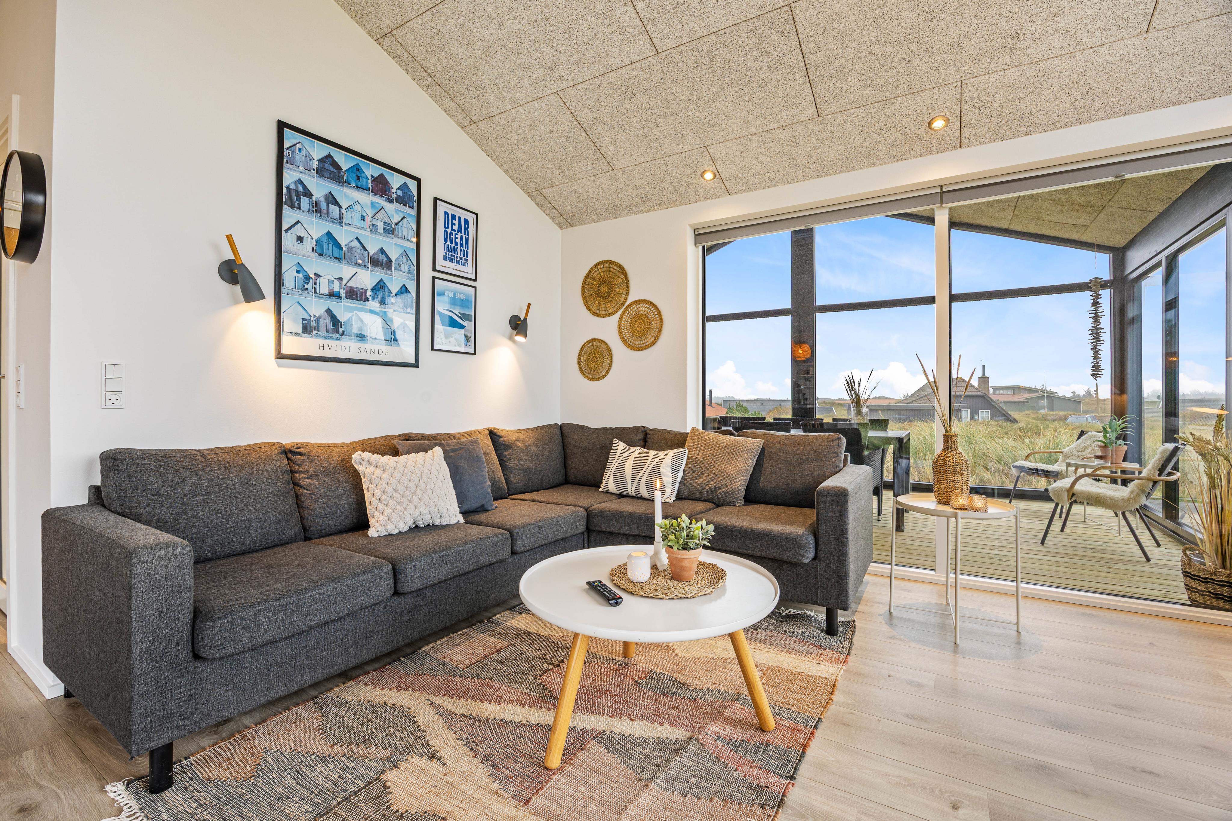 Dieses stilvolle Ferienhaus in den Dünen bei Hvide Sande bietet skandinavisches Design, moderne Ausstattung und absolute Ruhe – perfekt für einen erholsamen Urlaub an der dänischen Nordsee. Große Fenster, ein heller Wohnbereich mit Kamin, eine offene Küche und eine Sauna sorgen für höchsten Komfort. Drei gemütliche Schlafzimmer bieten Platz für bis zu sechs Personen. Die große Terrasse mit Grillplatz lädt zum Entspannen ein, der Strand ist nur wenige Gehminuten entfernt. Ein Haus zum Ankommen, Abschalten und Genießen – besser geht’s nicht.