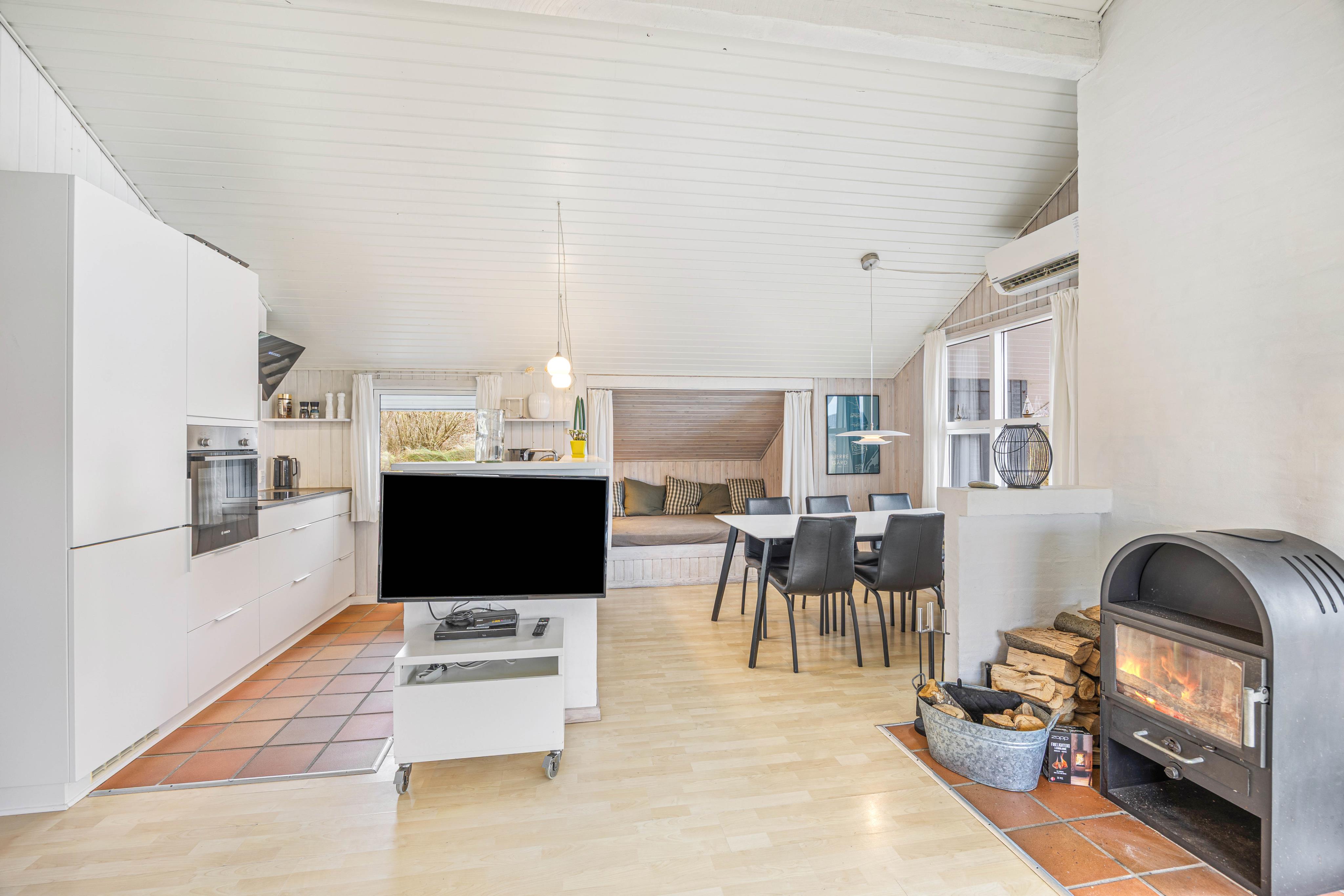 In diesem gepflegten und gemütlichem Ferienhaus ist der Wohnbereich, die Küche und die Eßecke offen miteinander verbunden, damit ihr mit der Familie so viel Zeit wie möglich verbringen könnt.
