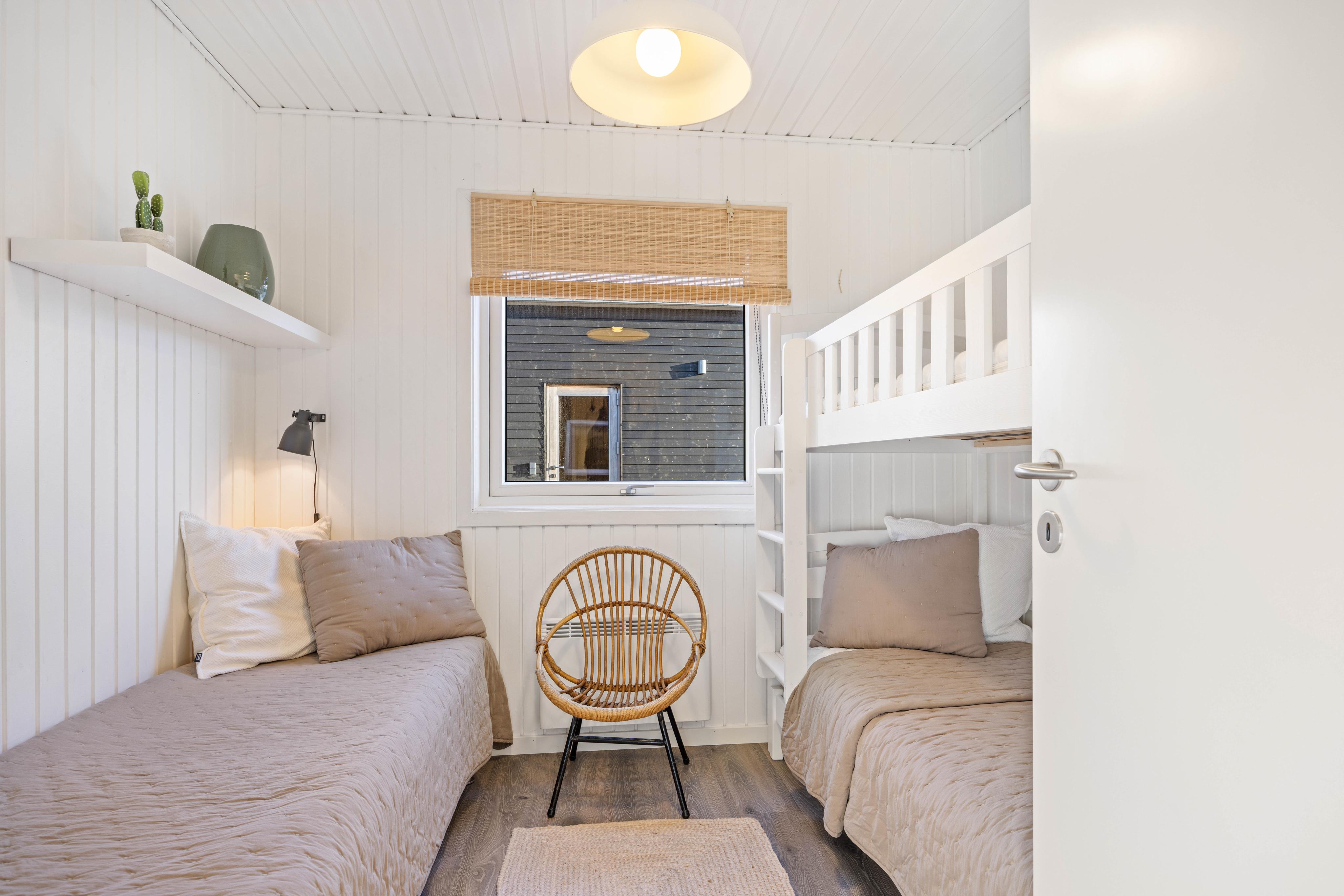 Die Schlafräume liegen in einem separaten Flurbereich, sodass besonders kleinere Kinder die nötige Ruhe finden. Aufgeteilt auf drei Schlafzimmer erwarten euch zwei Doppelbetten, ein Einzelbett und für die jüngsten Urlauber ein Etagenbett, in dem sie es sich gemütlich machen können. Eines der Doppelbetten ist höhenverstellbar.