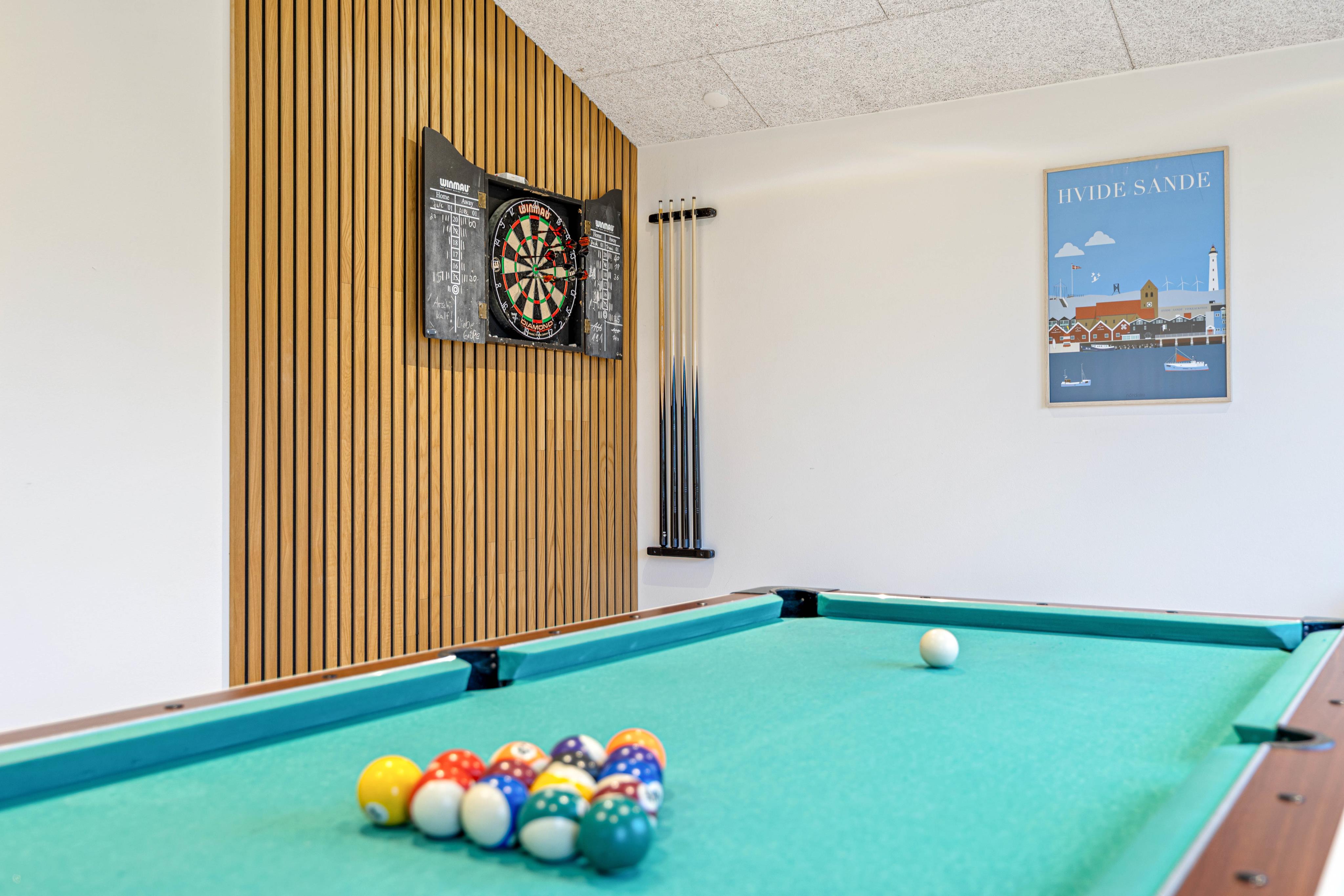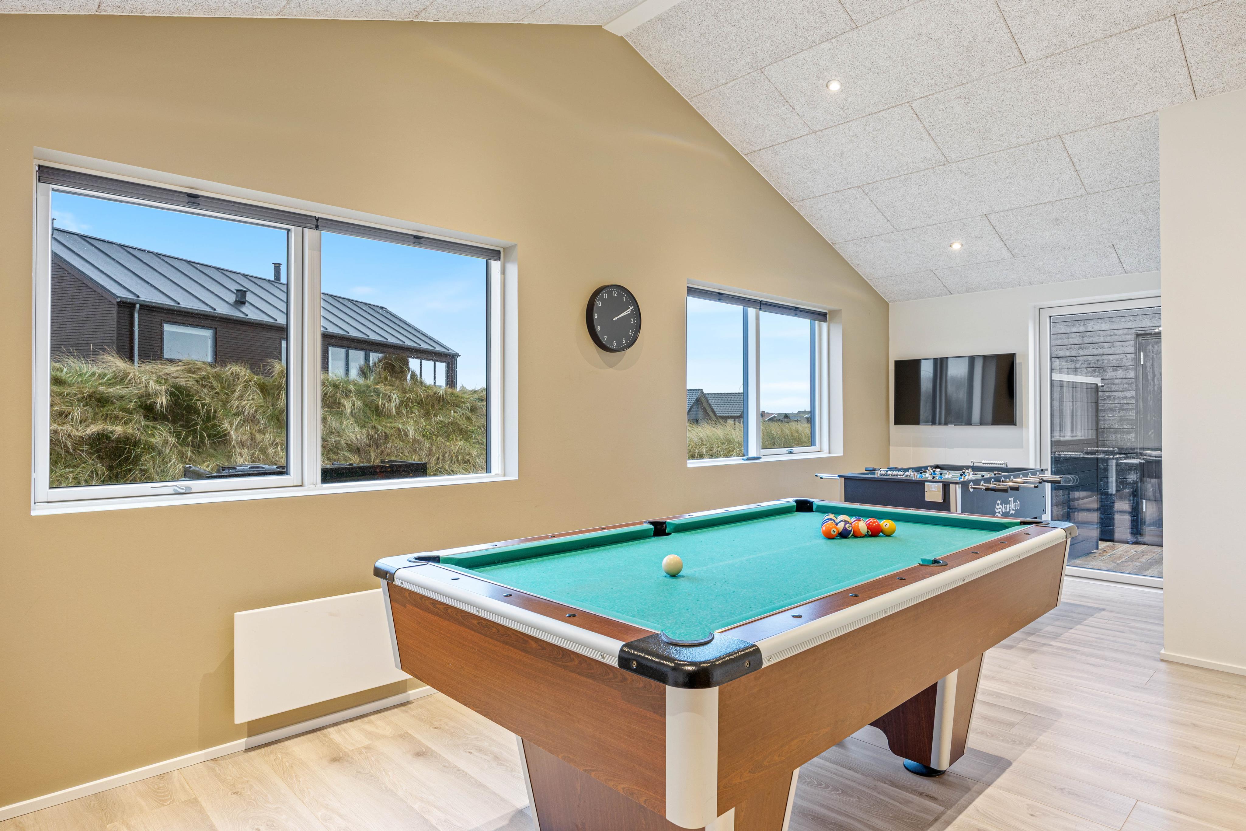 Eingebettet in die Dünen Bjerregårds liegt dieses wunderschöne Haus. Es bietet neben 4 geräumigen Schlafzimmern einen hervorragend geschnittenen Wohn- und Essraum sowie eine wunderbare, überdachte Außenterasse. Für Jung und Alt bietet der Aktivitätenraum mit Darts, Billard und einem Tischkicker, auch bei schlechtem Wetter, viel Abwechslung. Und nach sportlicher Aktivität kann man in die Außensauna mit anschließendem Besuch im Außen-Whirlpool. Mit wenigen Schritten ist man am Strand und kann hier lange Spaziergänge oder den ein oder anderen Schwimmzug in der Nordsee unternehmen.