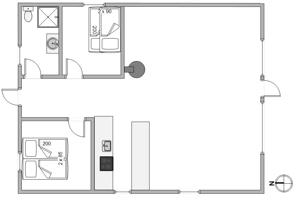 Wenn du Entspannung, Familienzeit und Strandbesuche liebst, dann ist dieses Ferienhaus genau das Richtige. Das Wohnzimmer, der Essbereich und die Küche sind in einem Raum eingerichtet, damit du so viel Zeit wie möglich mit der Familie verbringen kannst. Ideal für Paare oder eine kleine Familie mit 1 Kind und 1 Hund.