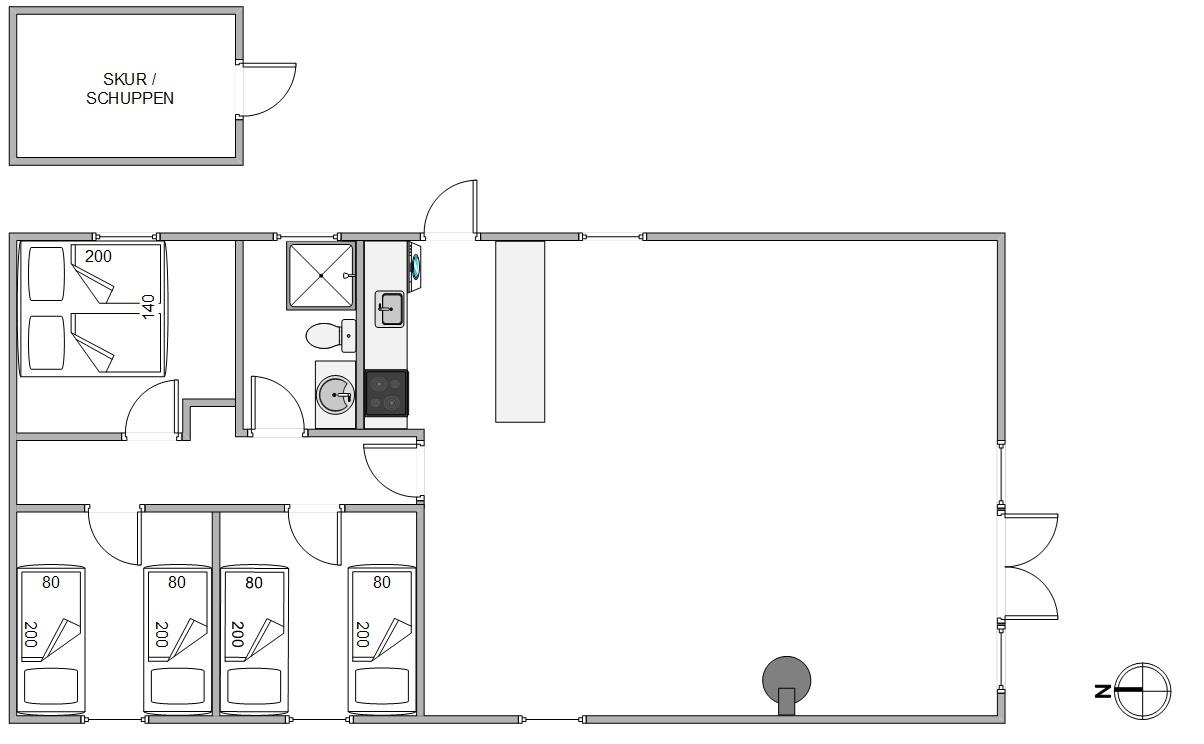 Der Dortheasvej bietet eine schöne und ruhige Lage inmitten der tollen Dünenlandschaft und das örtliche Lebensmittelgeschäft in Bjerregård ist nur wenige Gehminuten vom Haus entfernt. Jeden Morgen könnt ihr hier frisch gebackene Brötchen zum Frühstück abholen und den Tag ganz genüsslich starten.