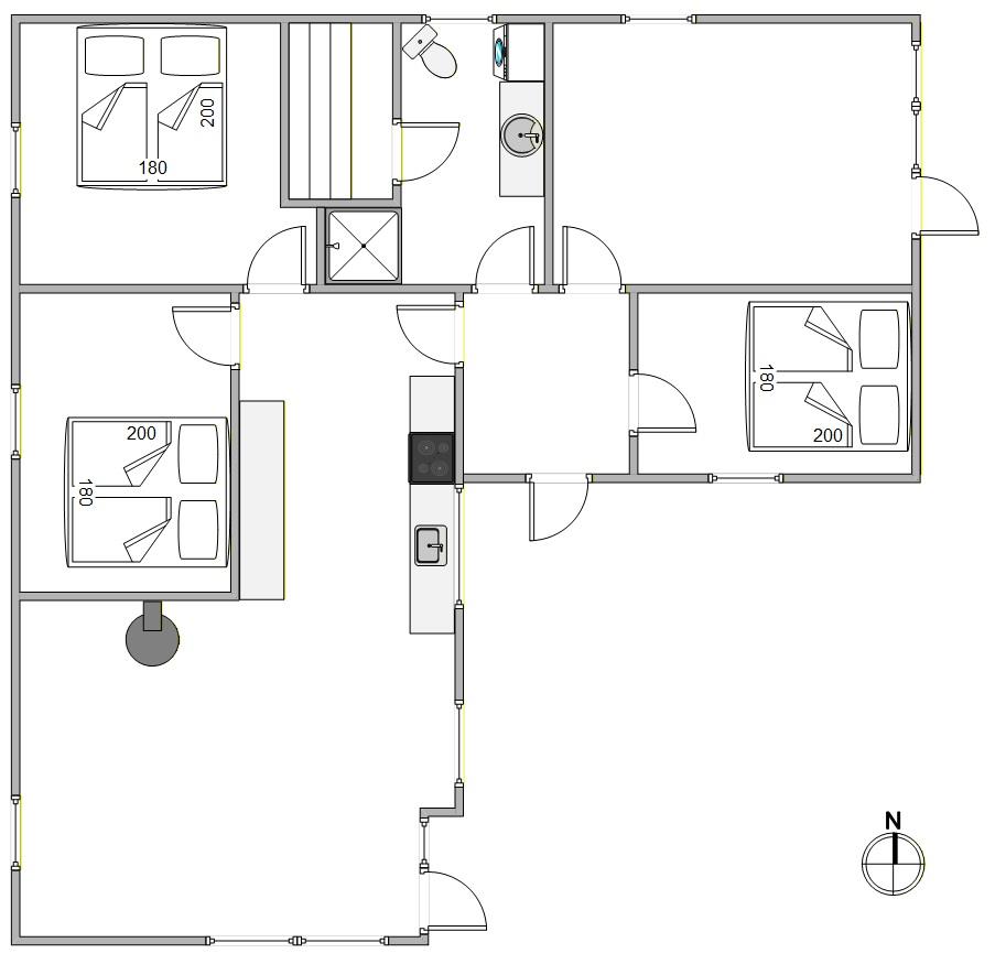 Schönes Ferienhaus für sechs Personen mit drei Schlafzimmer mit je zwei Betten. Die Küche hat eine Mikrowelle,ein Backofen, eine Spülmaschine und ein Gefrierschrank. Eine Sauna ist auch vorhanden. Das Haus hat eine große Terrasse mit Gartenmöbel und Grill. Internet ist auch vorhanden. Zum Strand sind es ca 1 km. Einkaufen ist in der Nähe.