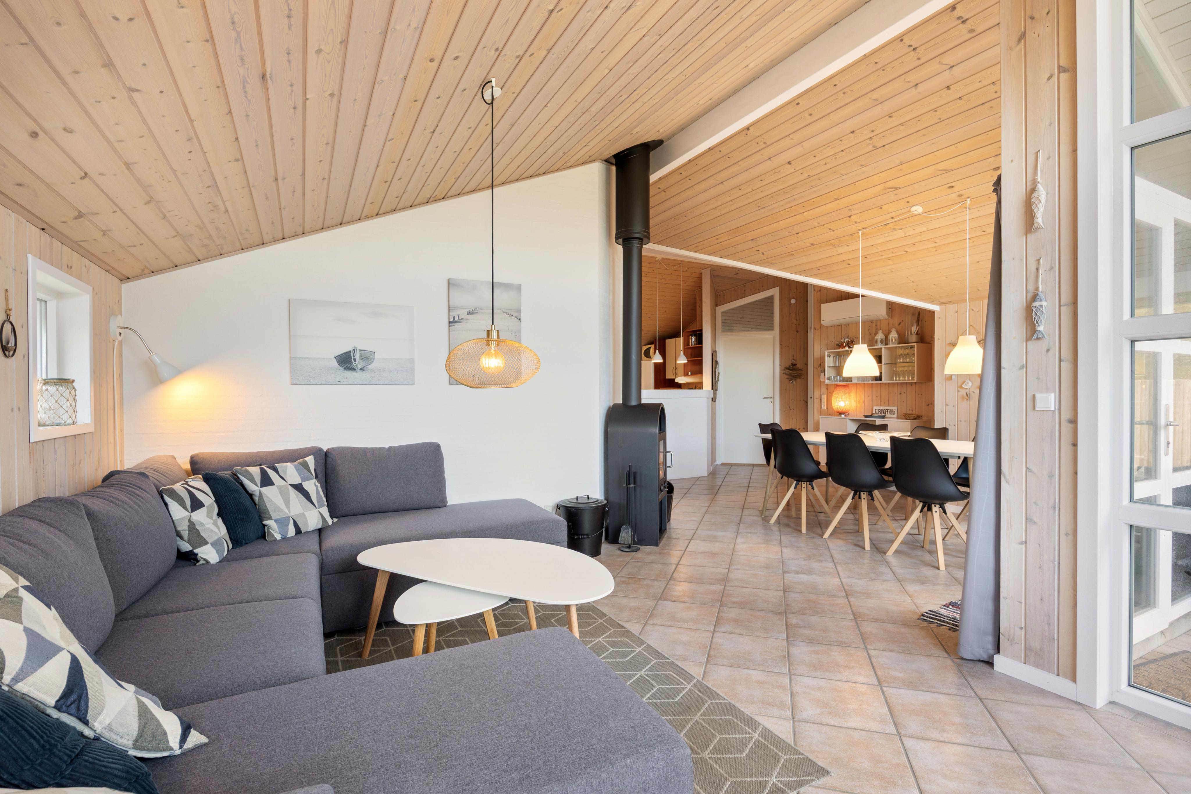 Im Zentrum eures Ferienhauses erwartet euch eine helle, offene Küche, welche mit einem Geschirrspüler als nützlicher Haushaltshelfer ausgestattet ist. Am großen Esstisch findet jedes Familienmitglied seinen Platz für ein leckeres, frischzubereitetes Abendessen. Direkt von der Küche geht es in den gemütlichen Wohnraum, wo euch eine bequeme Sofaecke zum Wohlfühlen und Entspannen erwartet. Bei einer heißen Tasse Tee auf dem Sofa an der Fensterfront könnt ihr hier beim Knistern des Kamins euren Lieblingsfilm genießen. Damit es keine kalten Füße gibt, ist der Wohnraum zusätzlich mit einer Fußbodenheizung ausgestattet.