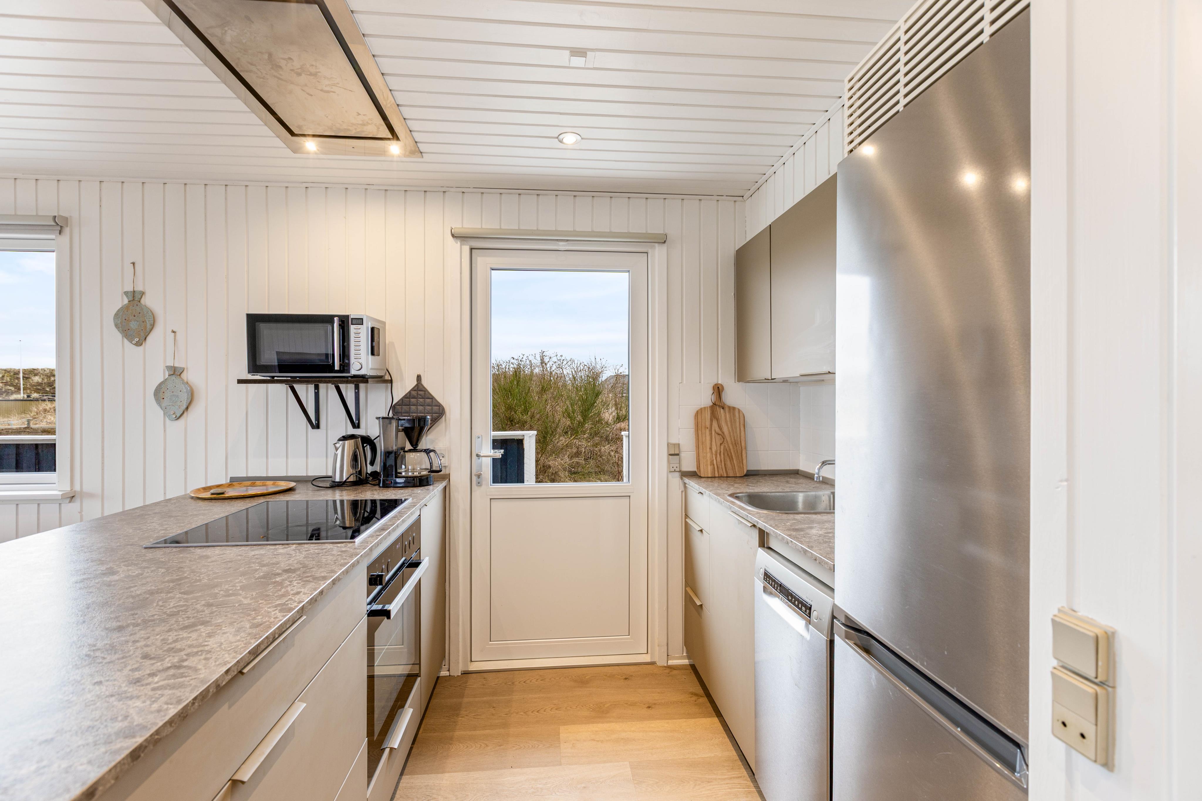 Die praktische Küche verfügt natürlich über einen Geschirrspüler und einen Induktionsherd, sowie über eine Gefriermöglichkeit mit 60 l, was besonders die Angler freuen wird. Die energiesparende Wärmepumpe sorgt auch bei kälteren Temperaturen für Wärme und kann zusätzlich zum Kamin verwendet werden. Praktischerweise verfügt dieses Ferienhaus auch über eine Waschmaschine, so dass ihr euch über schmutzige Wäsche keine Gedanken machen müsst.