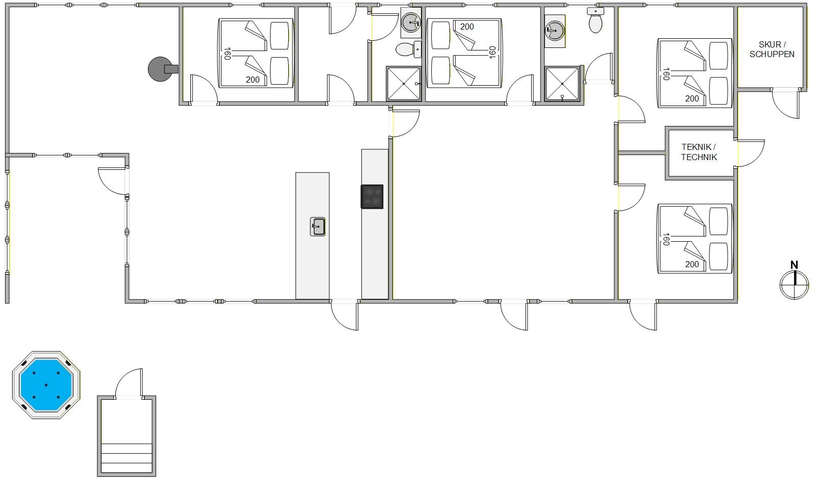 Das Ferienhaus ist auf einem aktuellen Stand was Einrichtung und Ausstattung betrifft. Es ist hell und freundlich, sowie großzügig geschnitten. Die offene Raumgestaltung schafft ein Bild der Leichtigkeit in diesem schönen Ferienhaus. Der außenliegende Whirlpool und die Faßsauna runden das ganze ab.