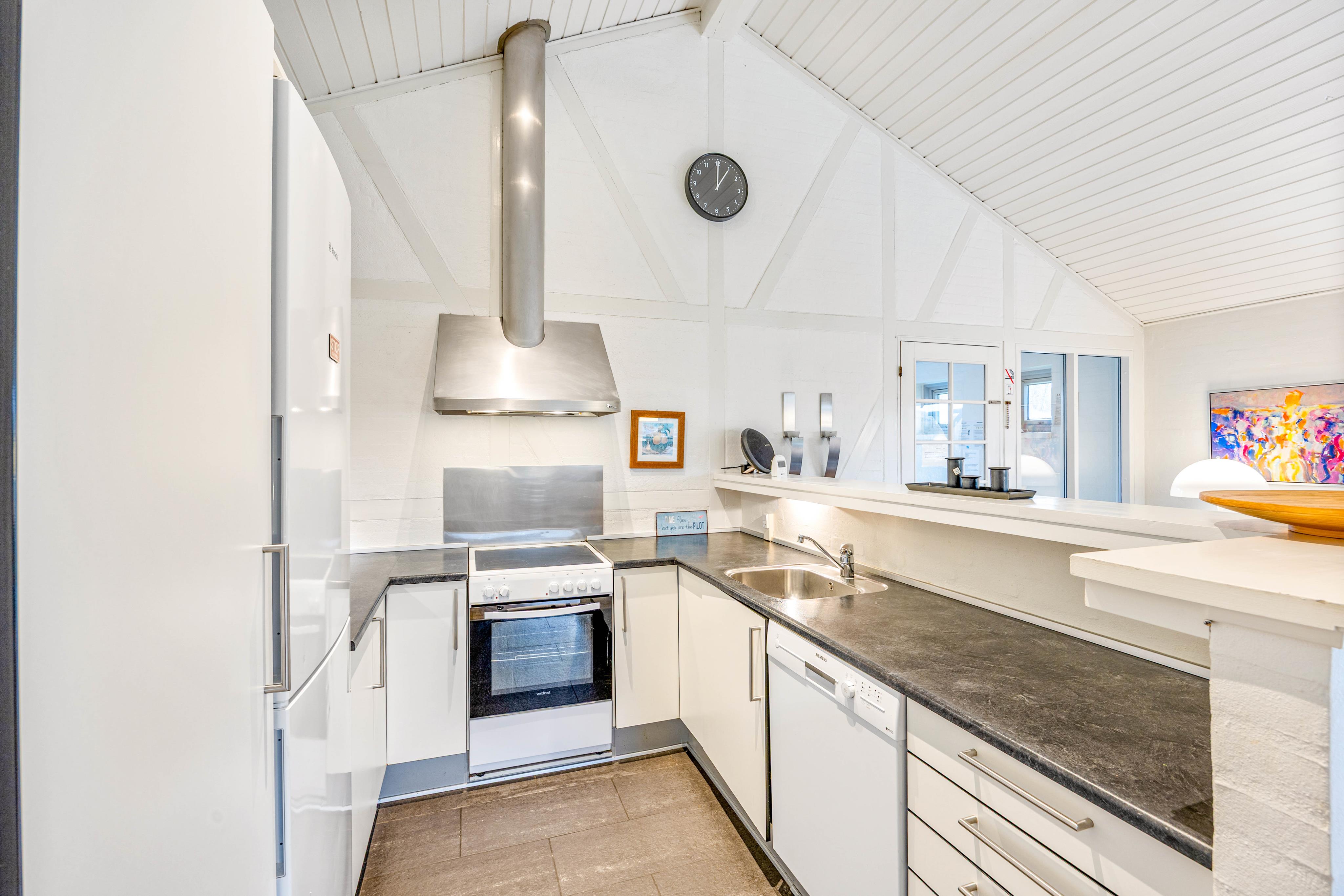Die helle und gemütliche Einrichtung wurde farblich aufeinander abgestimmt, so dass ihr euch auf Anhieb wie zuhause fühlt und die Zeit mit euren Liebsten in vollen Zügen genießen könnt. Die hohen Decken im Küchen- und Wohnbereich lassen den Raum größer wirken und die vielen Fenster sorgen für viel Licht und einen schönen Blick auf das Grundstück.
