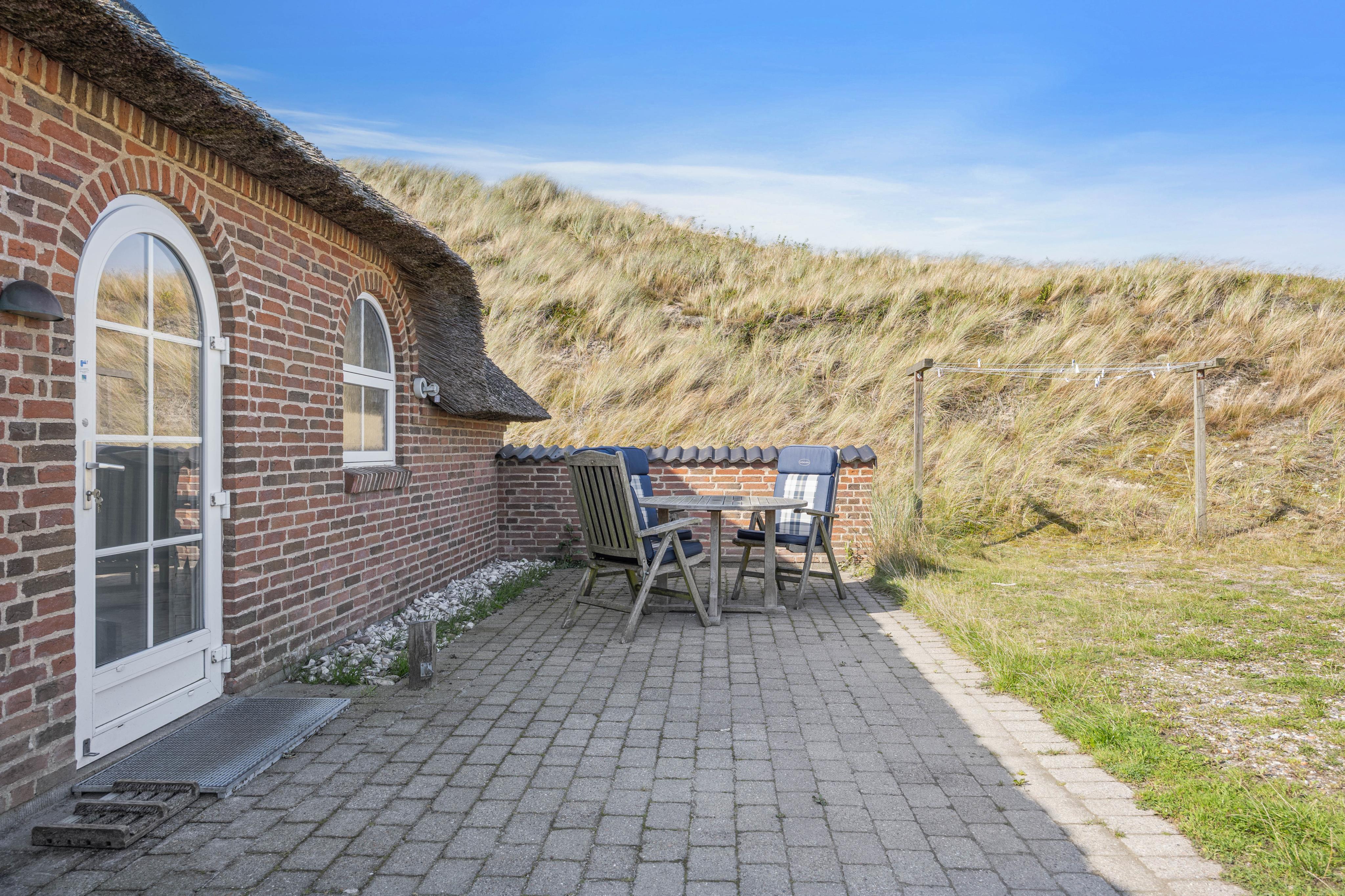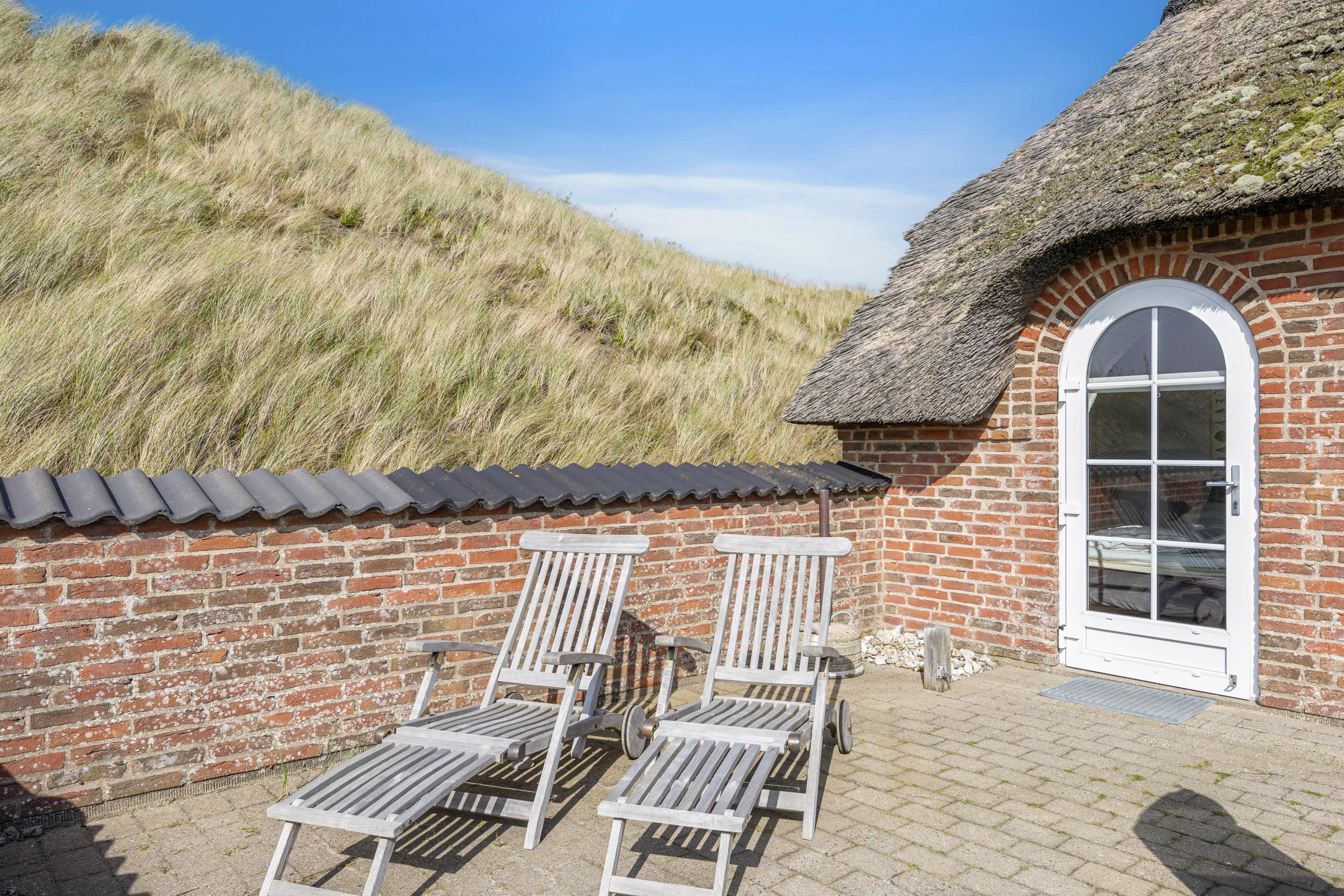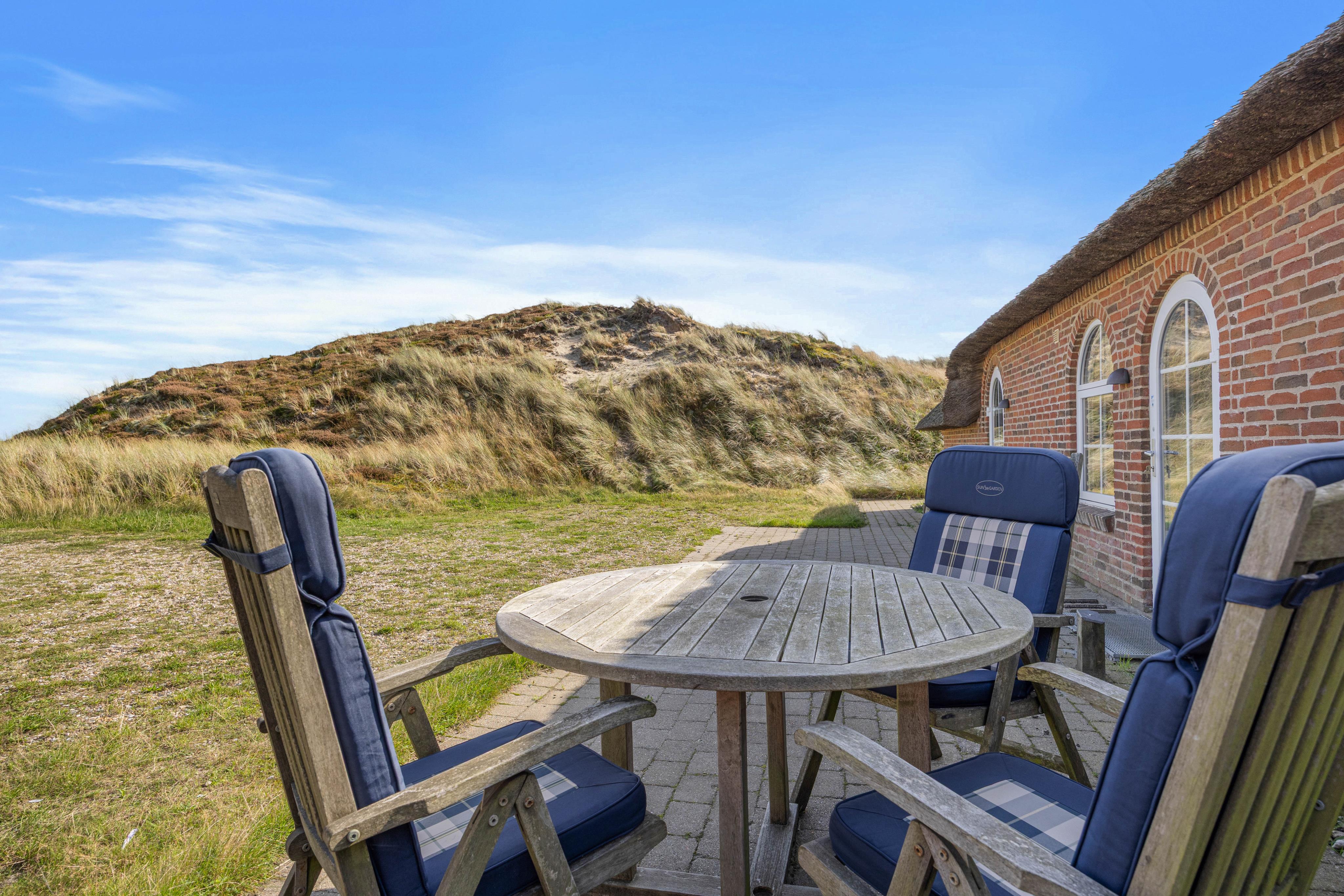 Euer Ferienhaus steht auf einem 4500 qm großen, hügeligen Dünengrundstück, auf dem ihr eure Privatsphäre genießen könnt. Dafür stehen euch auf der geschützten Terrasse bequeme Gartenmöbel und Sonnenliegen zur Verfügung. Hier könnt ihr euch mit einem eurem Lieblingsbuch zurücklehnen, den Blick in die Dünen schweifen lassen und den Alltagsstress vergessen.
