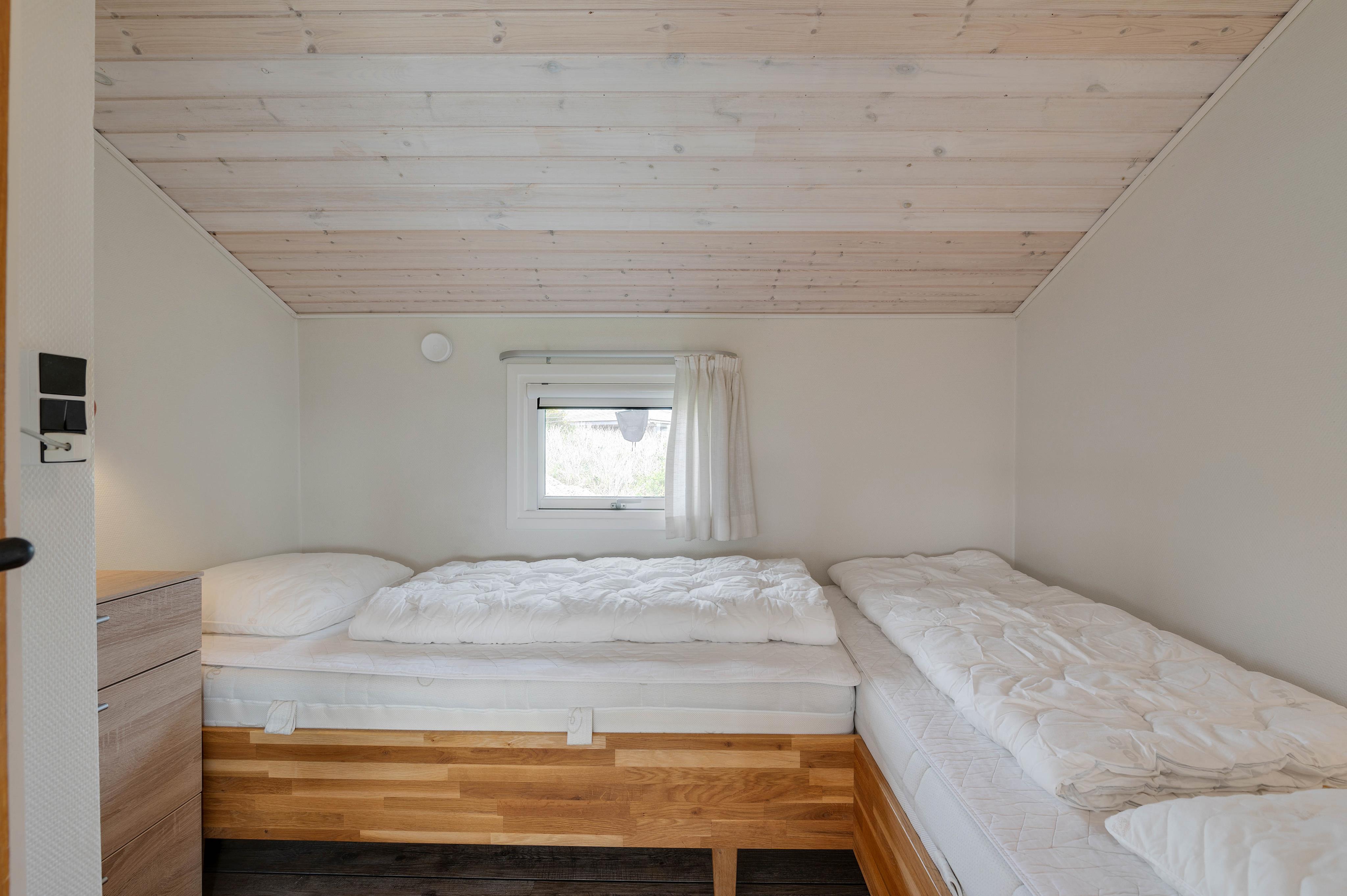 Genießt euer frischzubereitetes Abendessen in der gemütlichen Sitzecke am Fenster mit einem wunderschönen Ausblick in die Natur der Dünenlandschaft von Haurvig. Danach sorgen drei Schlafzimmer für eine erholsame Nachtruhe. Ein Schlafzimmer ist mit einem Doppelbett eingericht, wobei die zwei weiteren Schlafzimmer mit Einzelbetten ausgestattet sind. Eine energiesparende Wärmepumpe bietet euch eine alternative Heizmethode, welche ihr jederzeit hinzuschalten könnt.