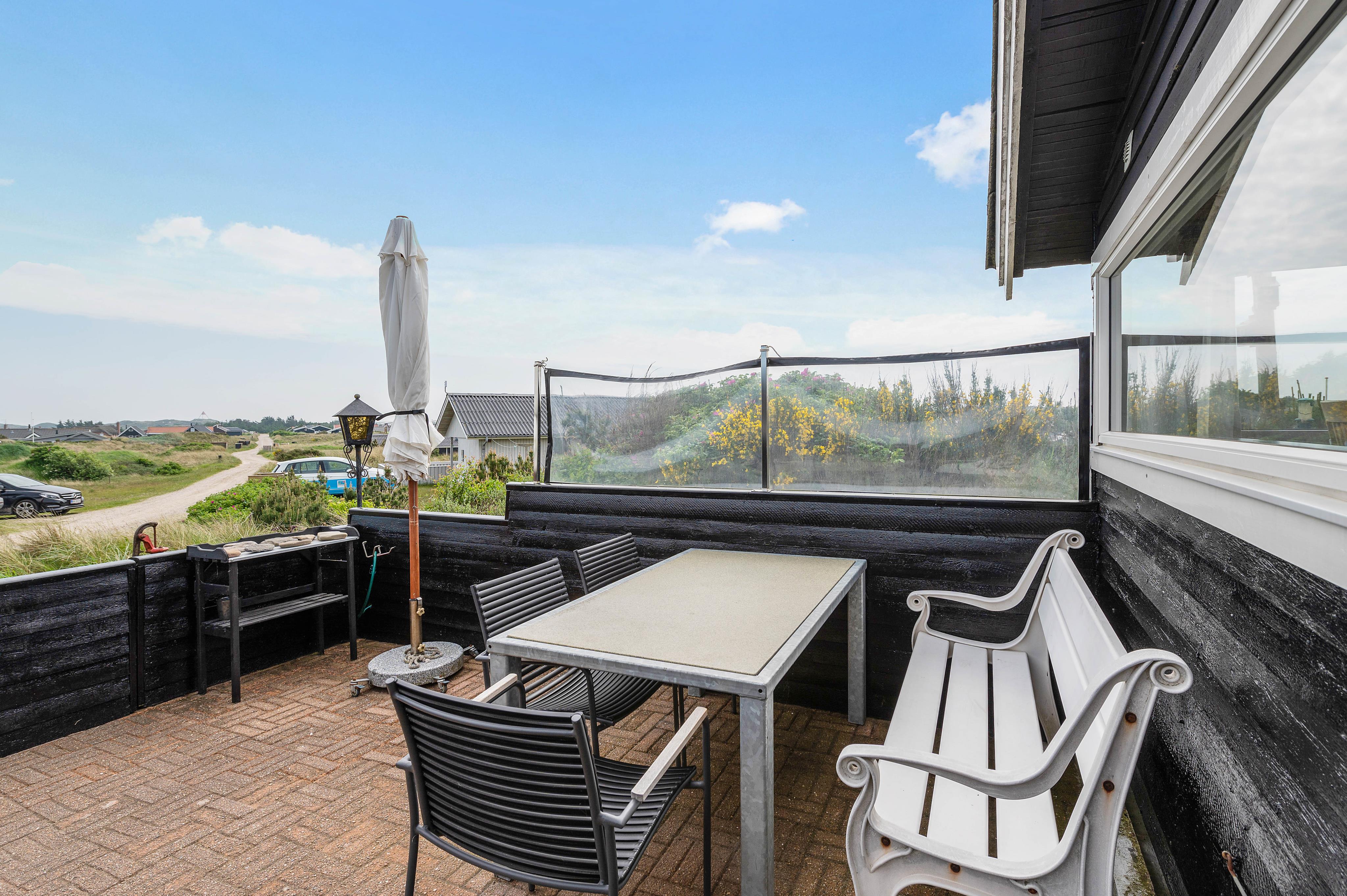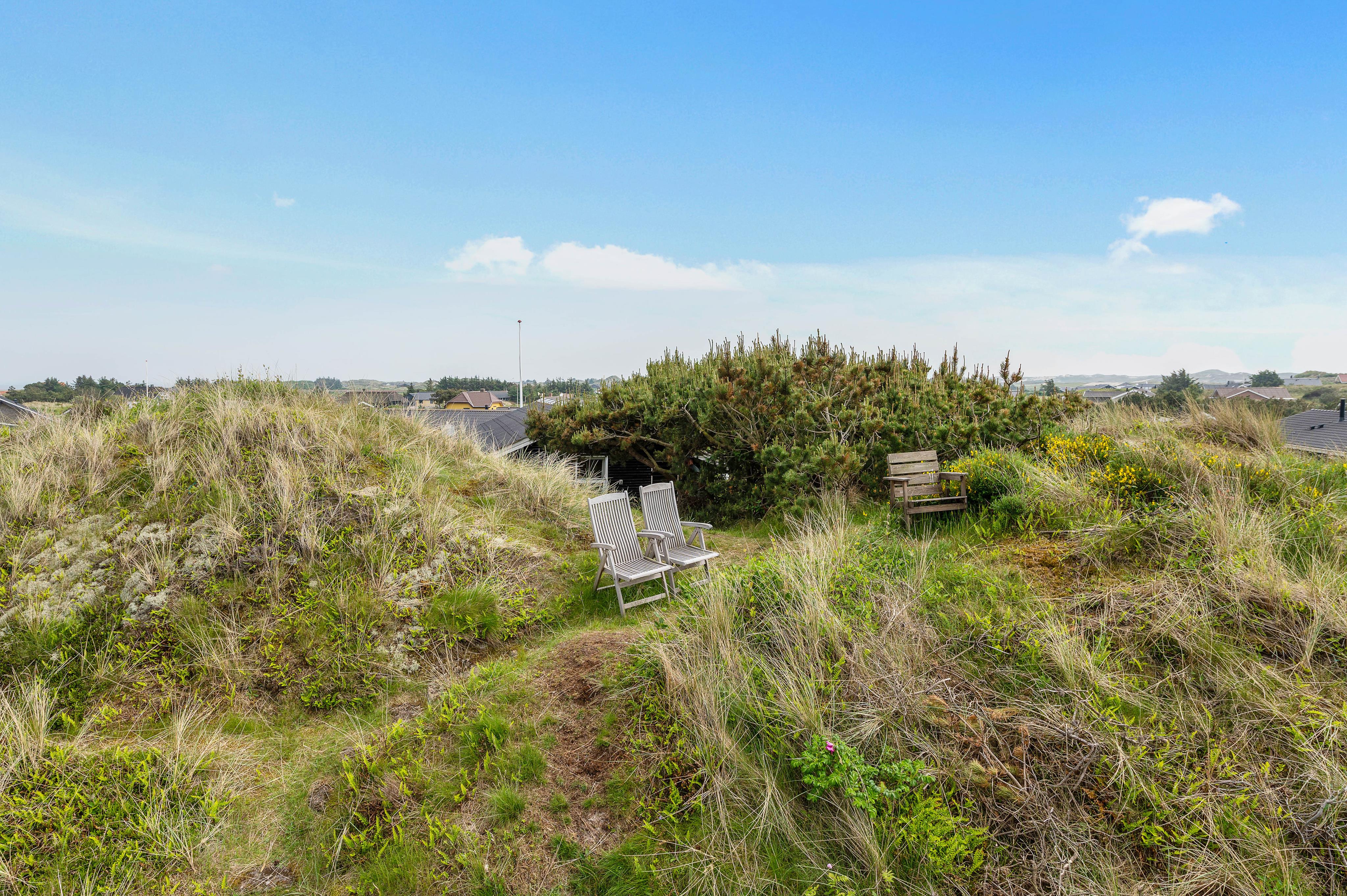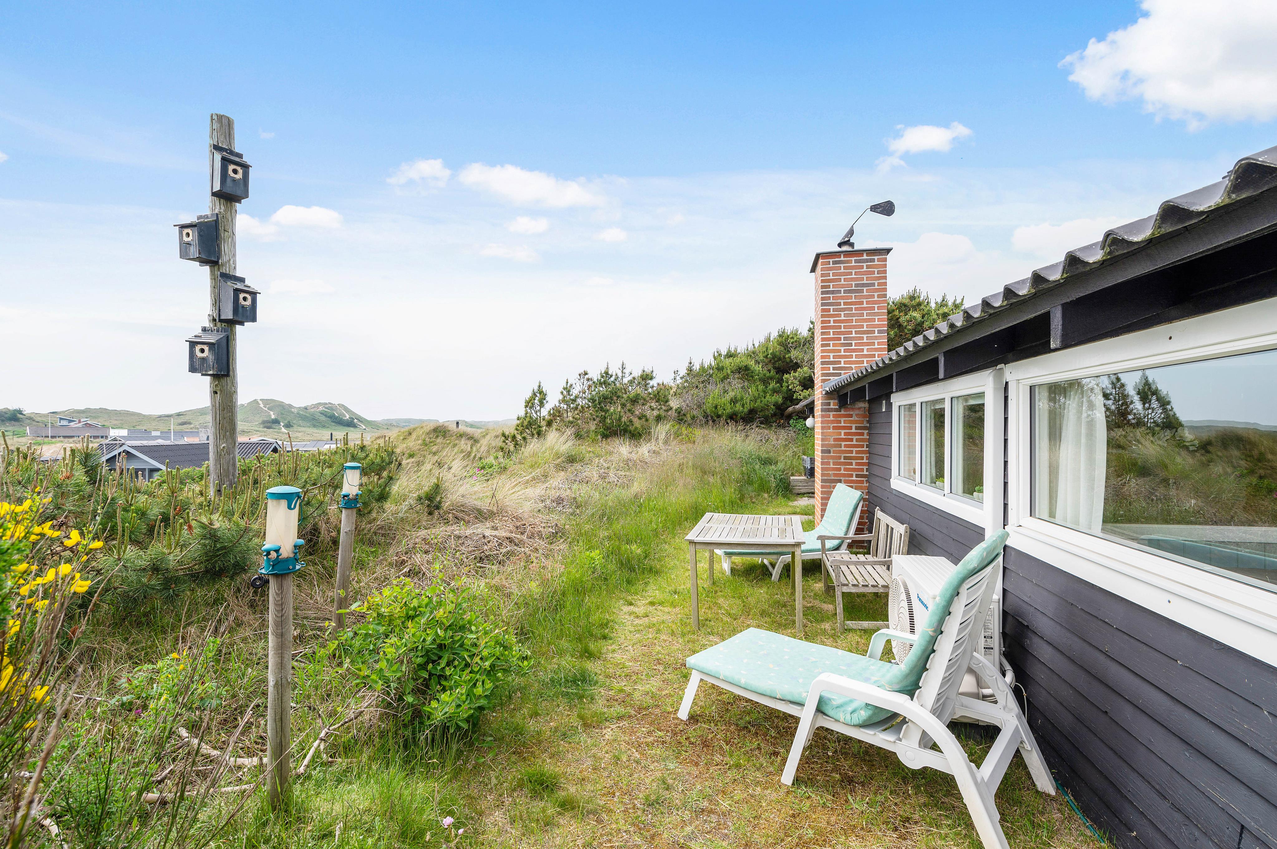 Euer Ferienhaus liegt inmitten der atemberaubenden Dünenlandschaft von Haurvig und lädt euch zu einem unvergesslichen Ausblick über die wunderschöne Umgebung ein. Die geschlossene Terrasse, ausgestattet mit bequemen Gartenmöbeln, ist teilweise abgeschirmt und bietet euch so Schutz vor Wind.