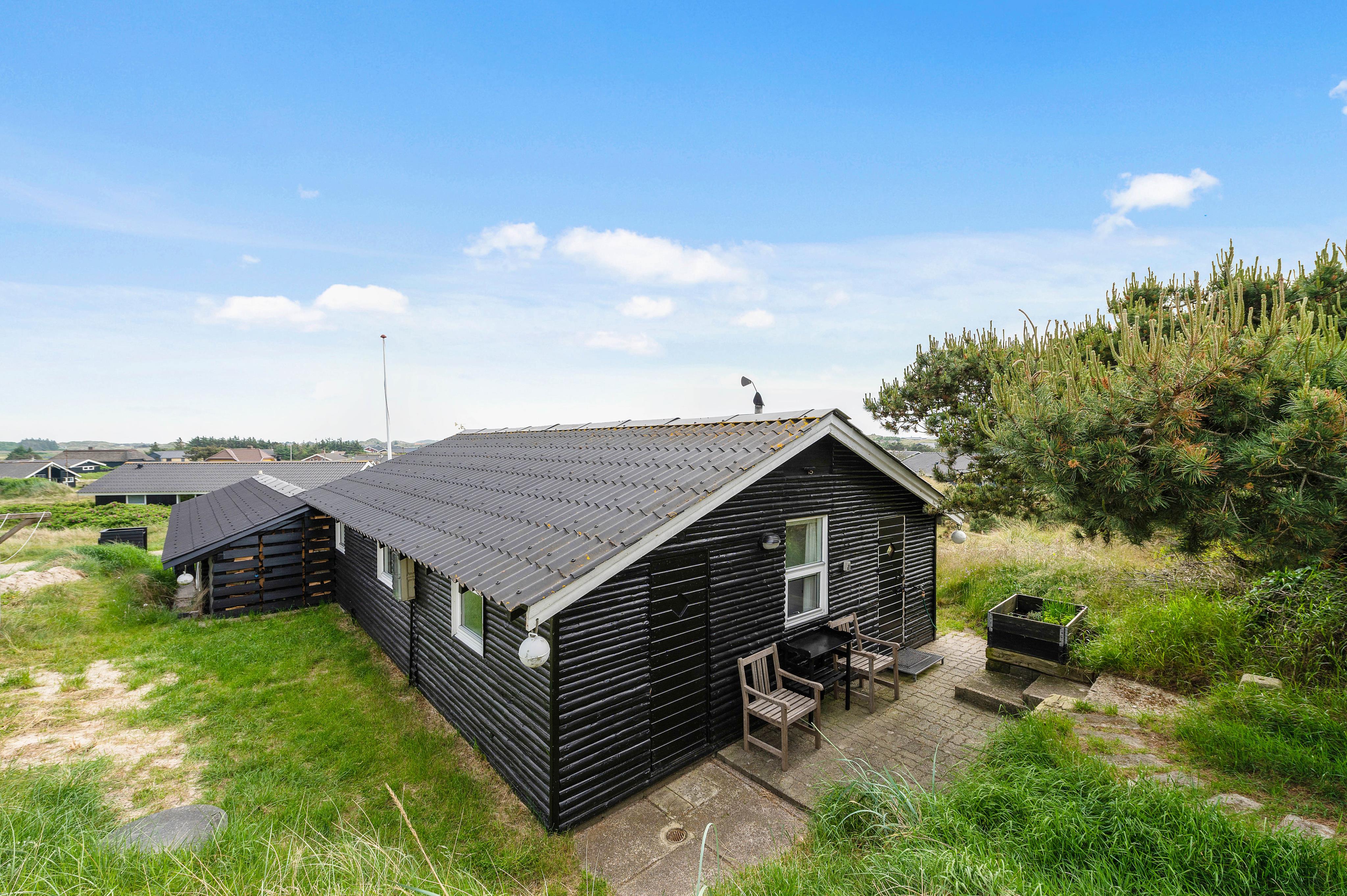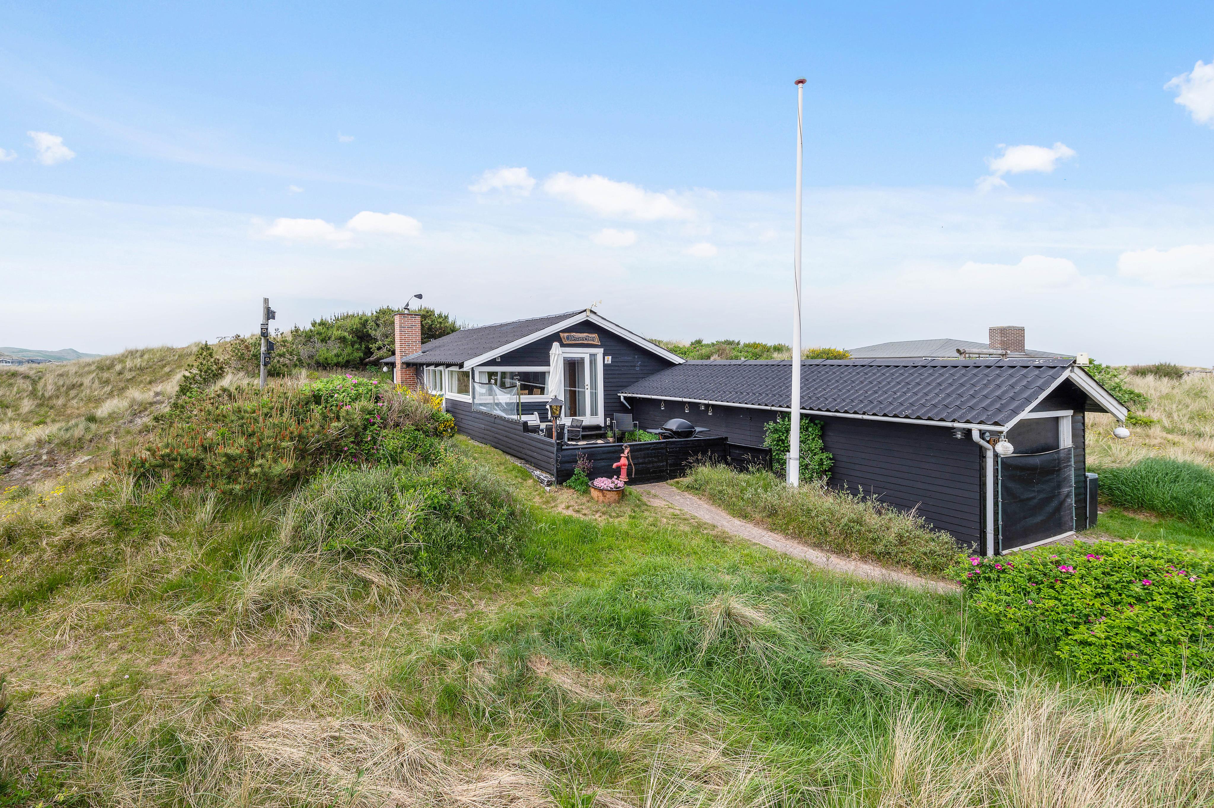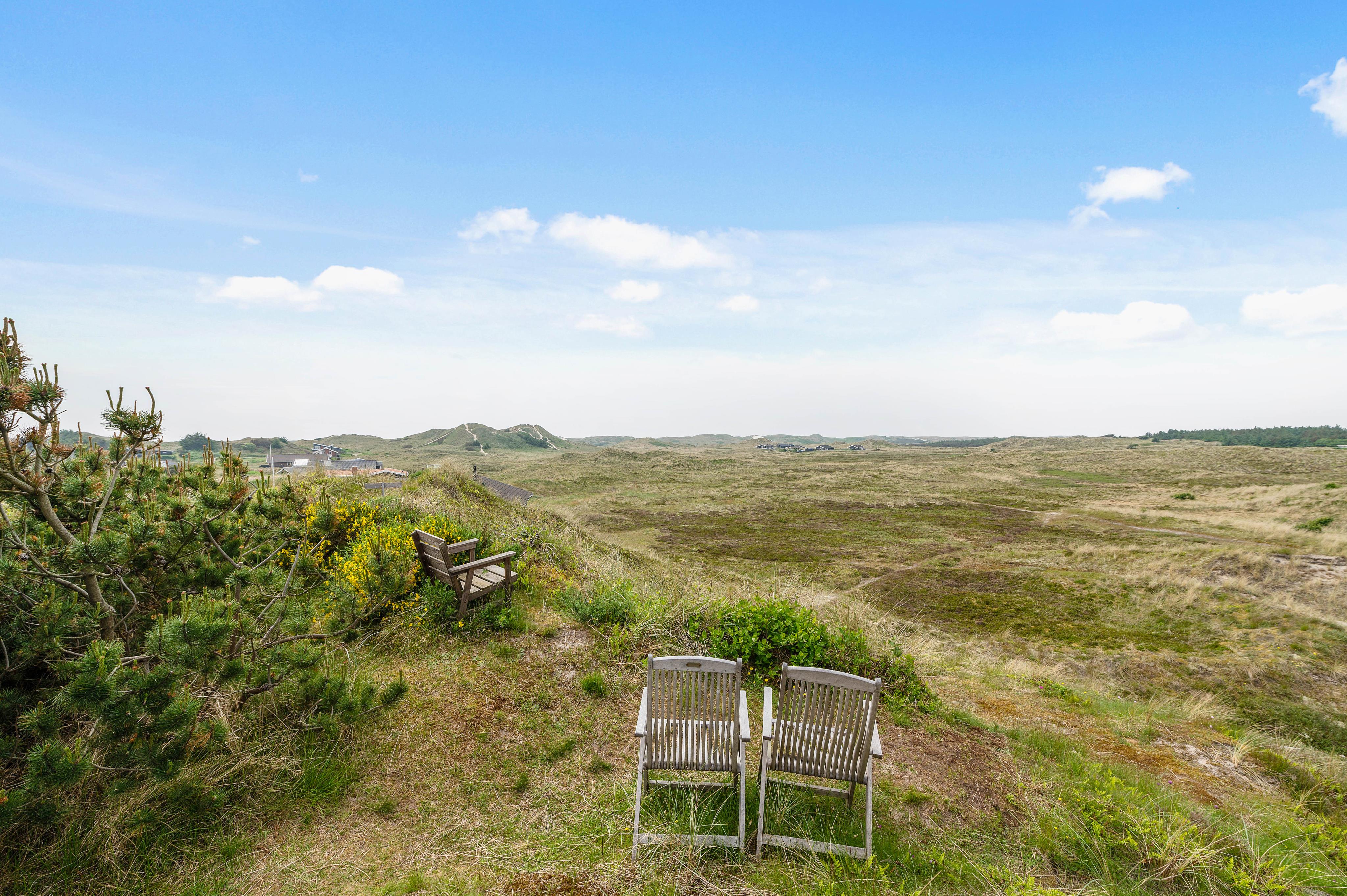 Euer Ferienhaus liegt inmitten der atemberaubenden Dünenlandschaft von Haurvig und lädt euch zu einem unvergesslichen Ausblick über die wunderschöne Umgebung ein. Die geschlossene Terrasse, ausgestattet mit bequemen Gartenmöbeln, ist teilweise abgeschirmt und bietet euch so Schutz vor Wind.
