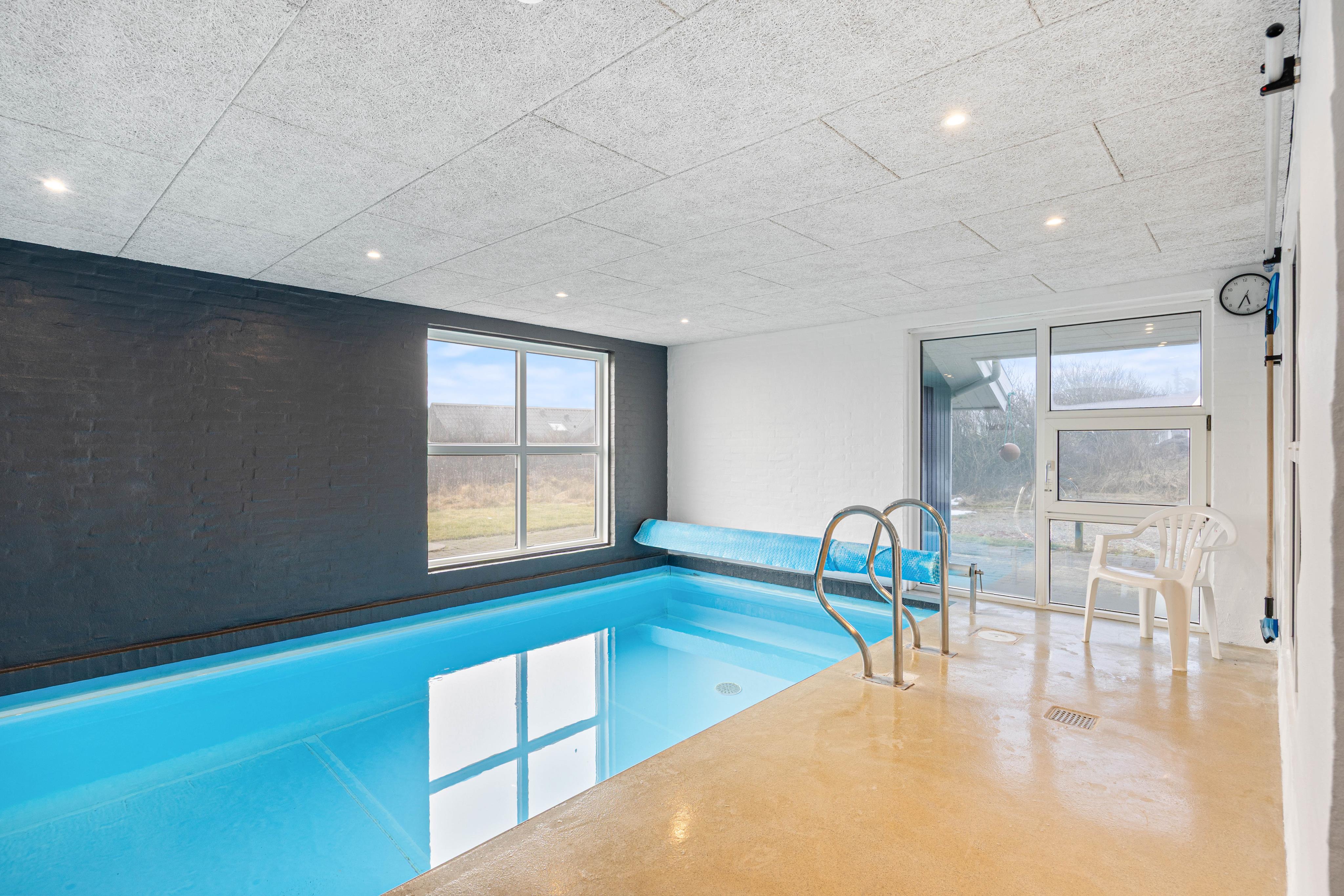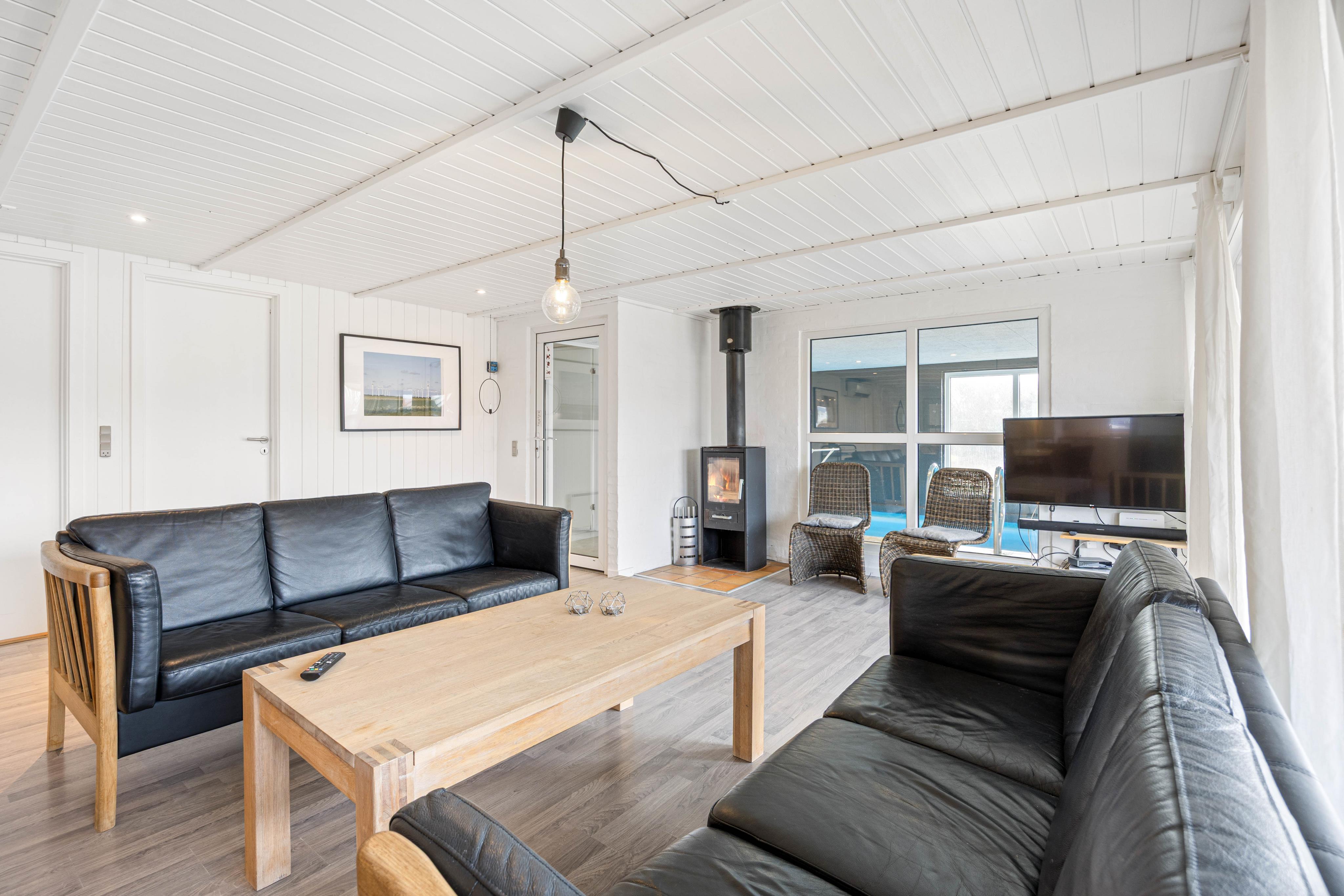 Das besondere Highlight dieses hyggeligen Sommerhauses ist natürlich der 19 qm große Pool mit angrenzendem Whirlpool. Genießt entspannte Stunden im Wasser oder in der Sauna.