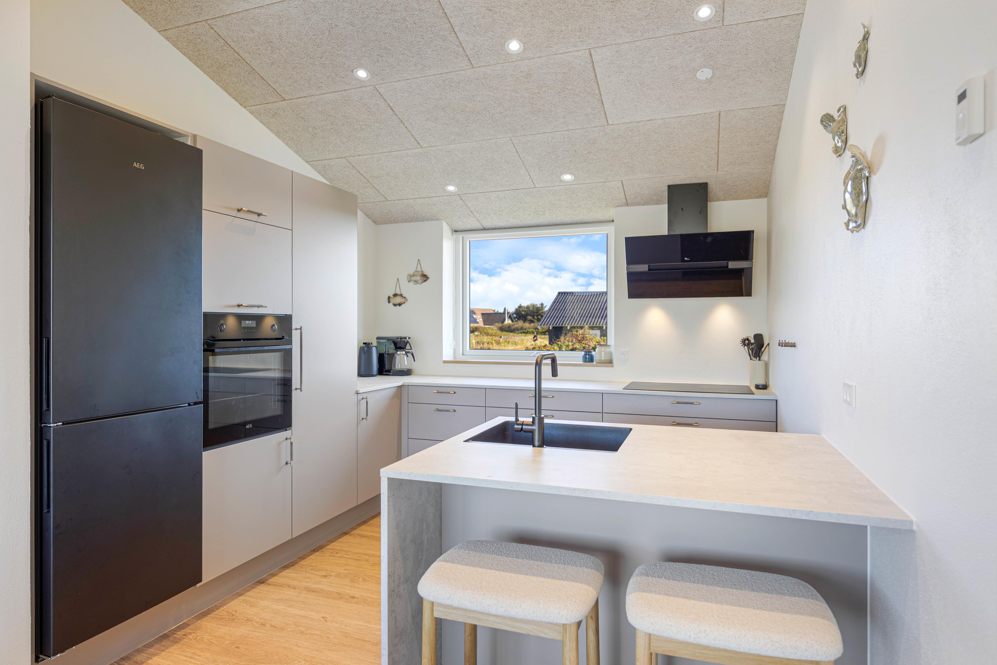 Im Inneren des Ferienhauses werdet ihr von einem einladenden Ambiente aus warmen Holztönen und moderner Einrichtung empfangen. Durch hohe Decken und bodentiefe Fensterfronten entsteht ein großer, lichtdurchfluteter Wohlfühlbereich. Dieser offene Wohn- und Essbereich bietet ausreichend Platz zum Entspannen und Beisammensein. Die große, voll ausgestattete Küche mit separatem Gefrierschrank ermöglicht es, zusammen die leckersten Gerichte zu kochen und reichlich Vorräte zu verstauen. Natürlich habt ihr auch eine Geschirrspülmaschine, die euch anschließend den Abwasch abnimmt. 4 geräumige Schlafzimmer, die jeweils mit Doppelbetten ausgestattet sind, garantieren eine erholsamen Schlaf. Es gibt 2 moderne Badezimmer inklusive Fußbodenheizung. So startet der Tag angenehm warm und ohne lange Wartezeiten an der Badezimmertür.