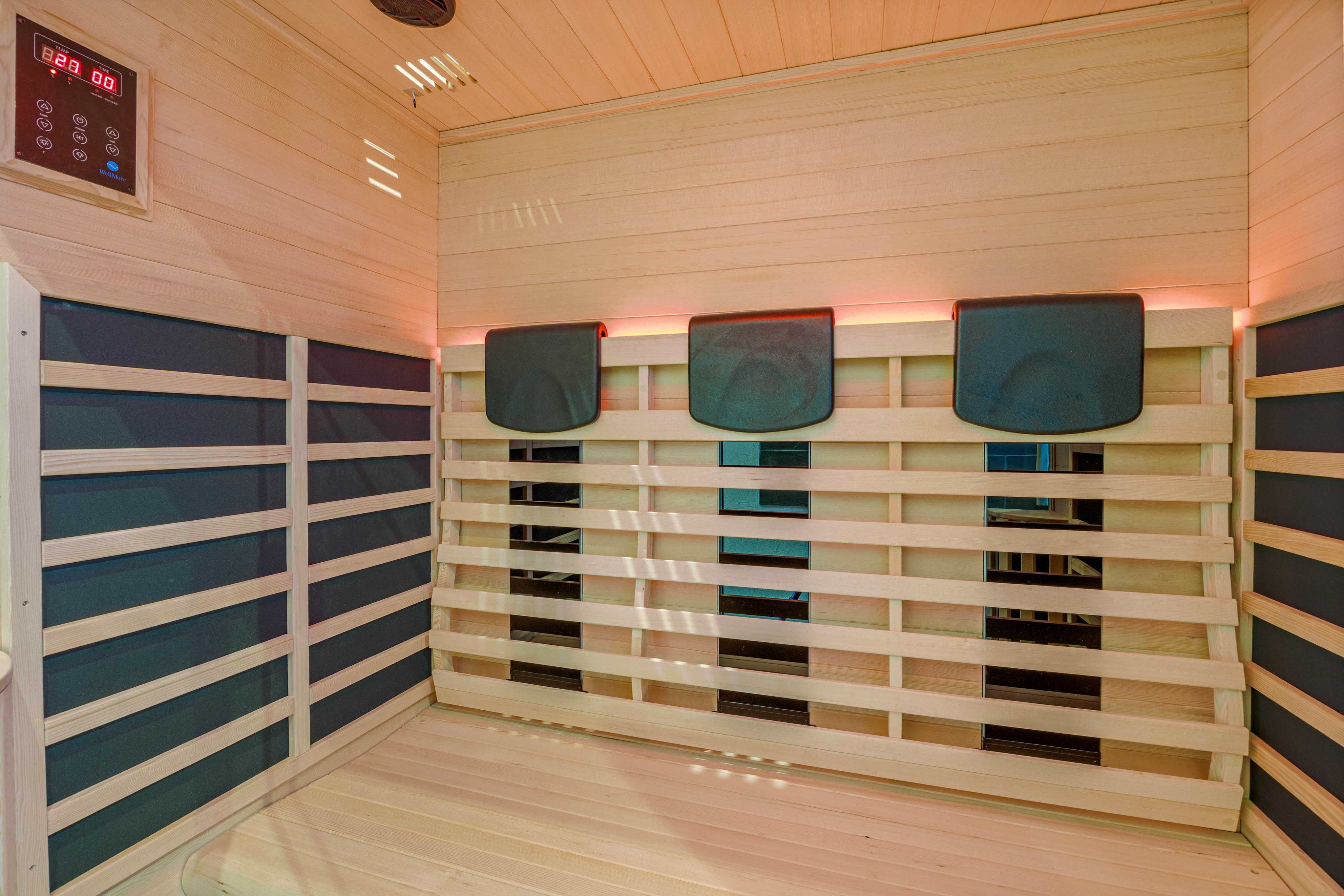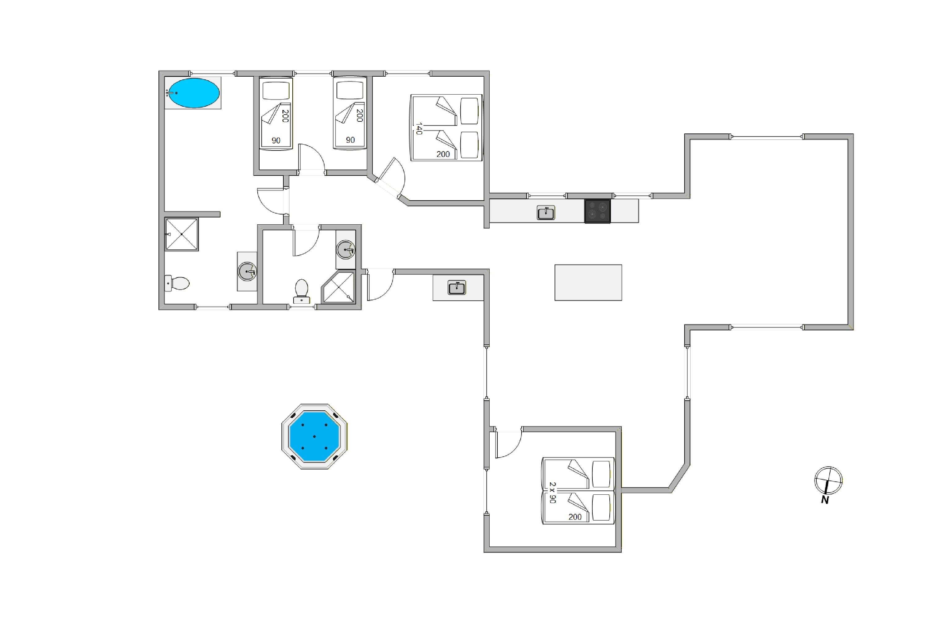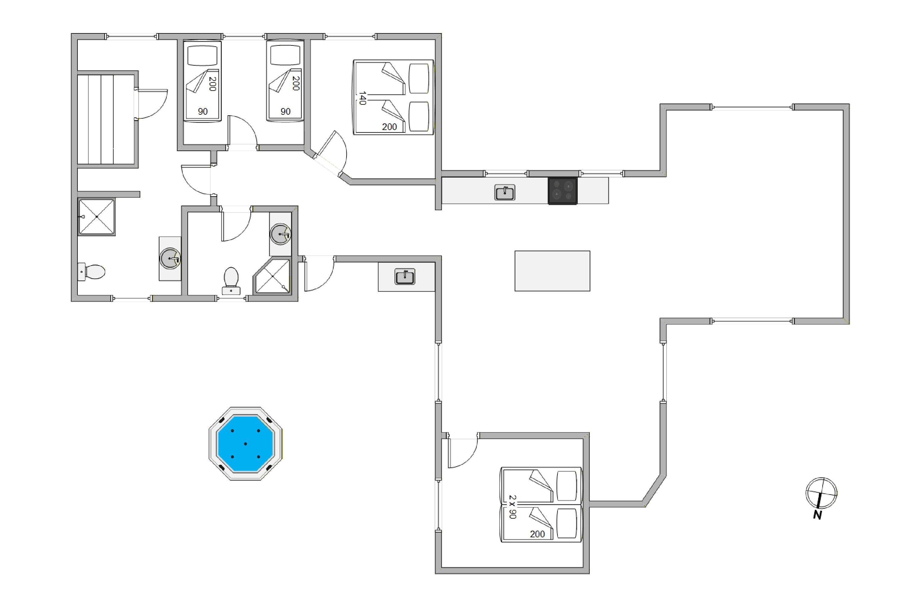 Das Haus bietet 3 Schlafzimmer. Zwei davon sind mit Doppelbetten eingerichtet und die Matratzen in einem der Doppelbetten sind außerdem verstellbar. Das letzte Zimmer ist mit zwei Einzelbetten eingerichtet. Die zwei Badezimmer haben beide je eine Dusche und Fußbodenheizung. Das große Badezimmer hat eine fantastische Dusche aus Backstein. Eine großzügige Badewanne lädt zum Entspannen ein.