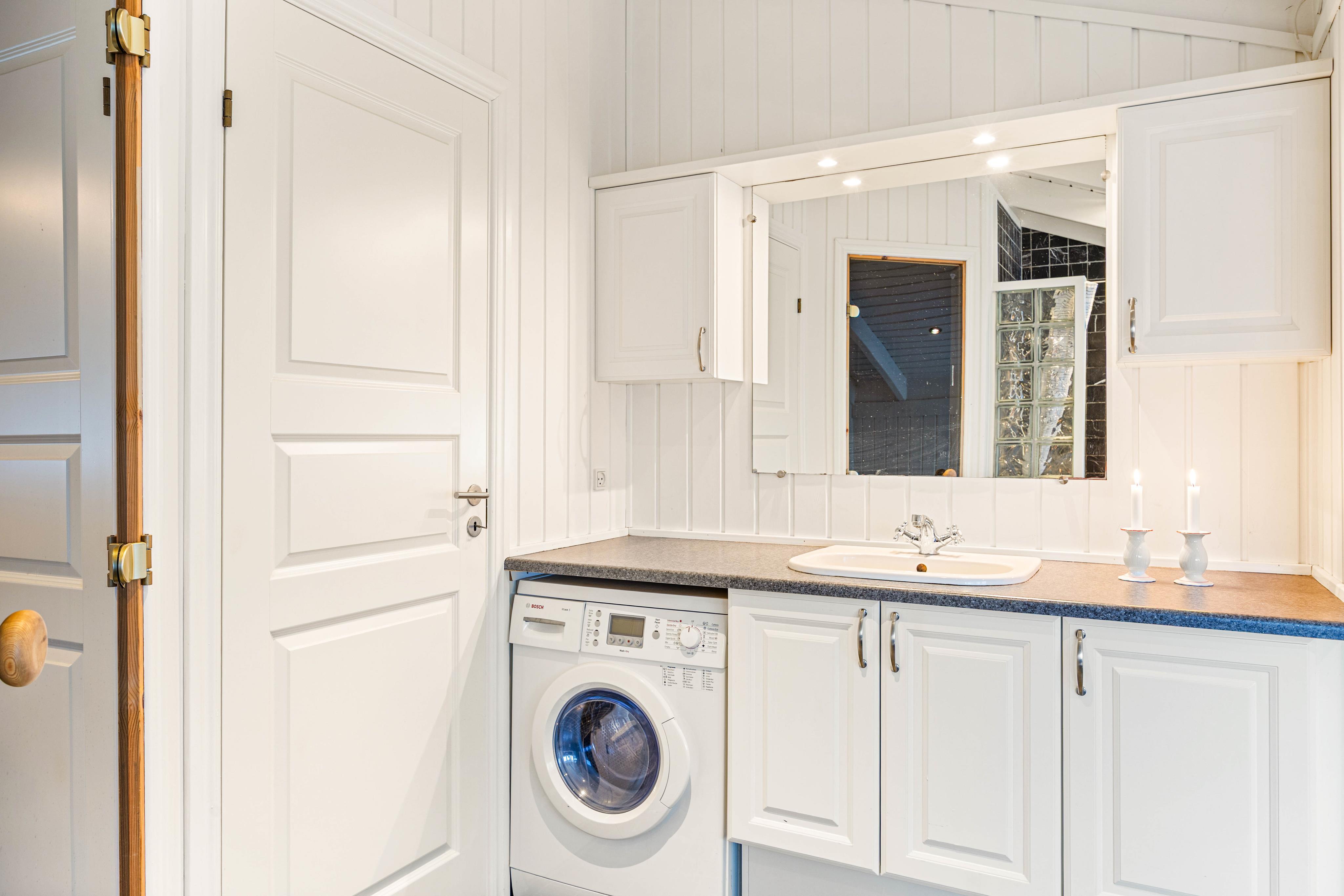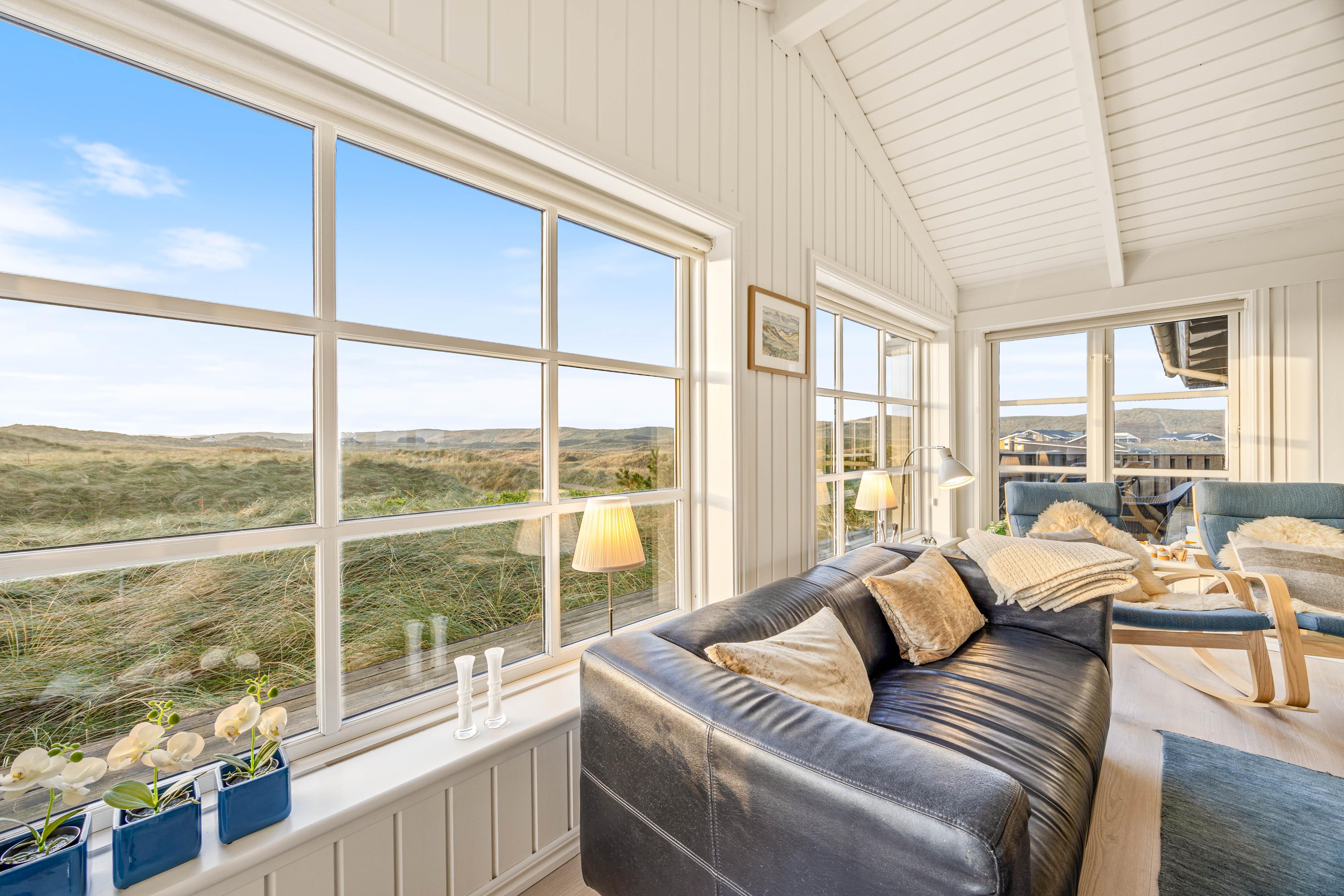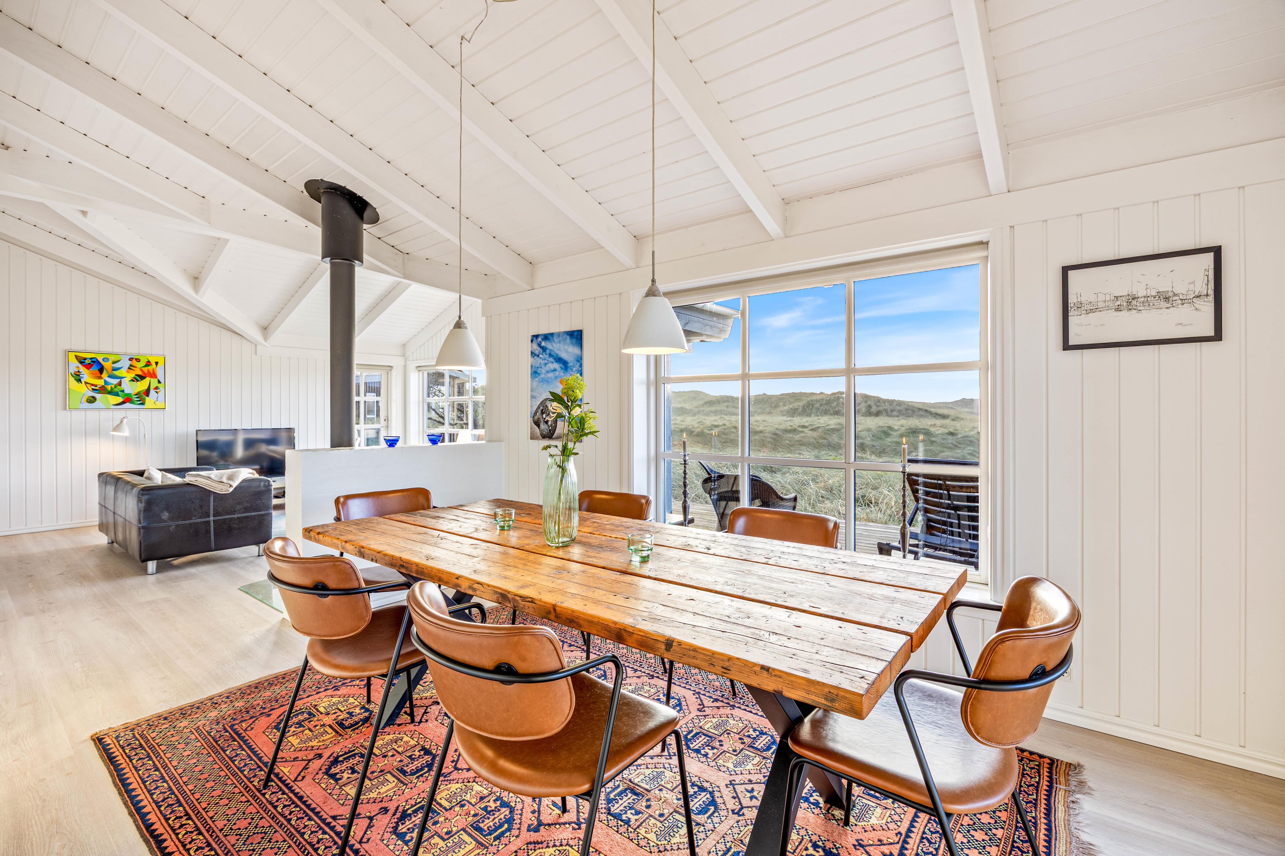 Ein sehr gemütliches und neueres Ferienhaus in Årgab. Das Ferienhaus hat firsthohe, weiße Decken und weiß gestrichene Wänd, zusammen mit der großen Fernsterpartie erscheint das Haus hell und einladend. Die Einrichtung ist sehr geschmackvoll.