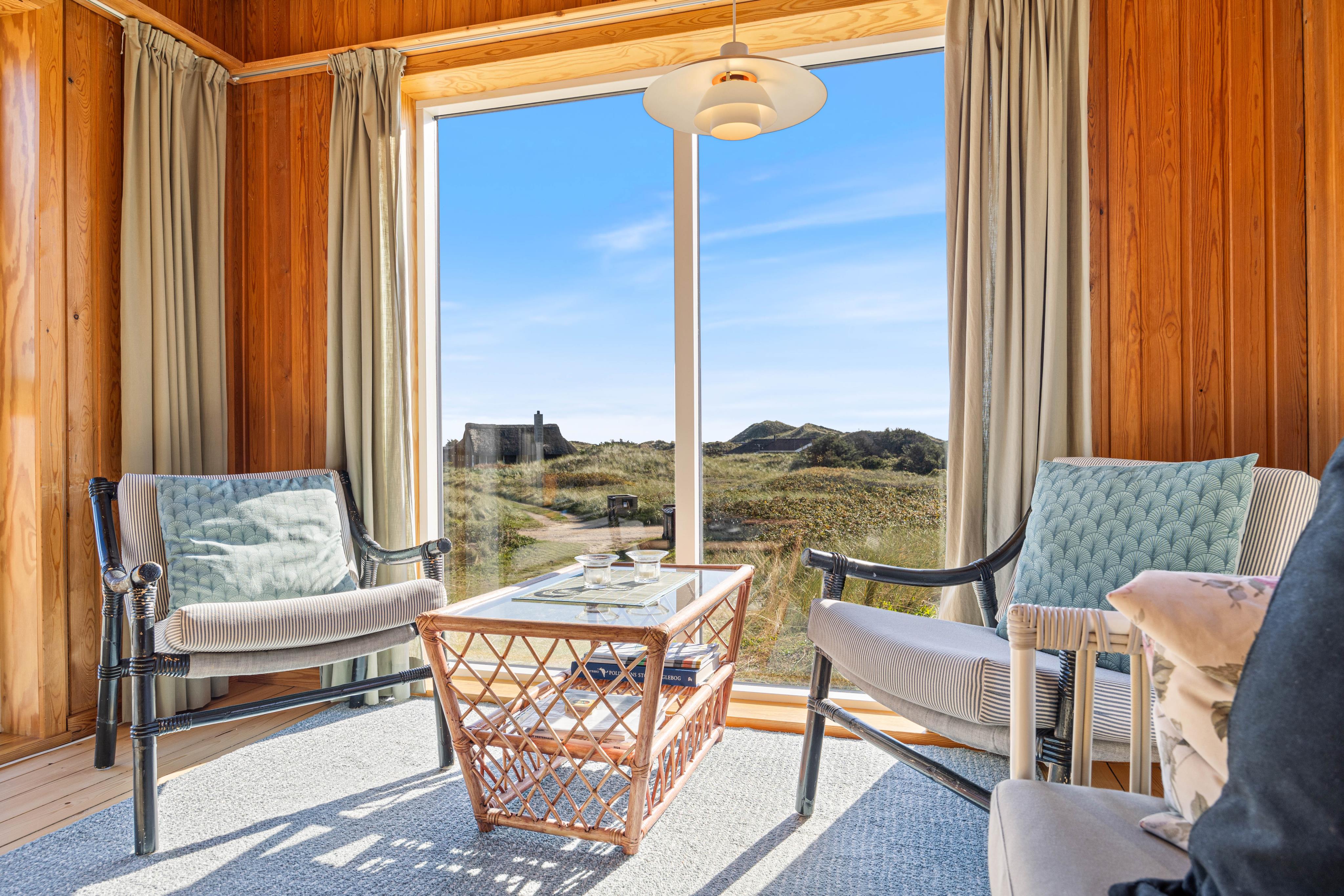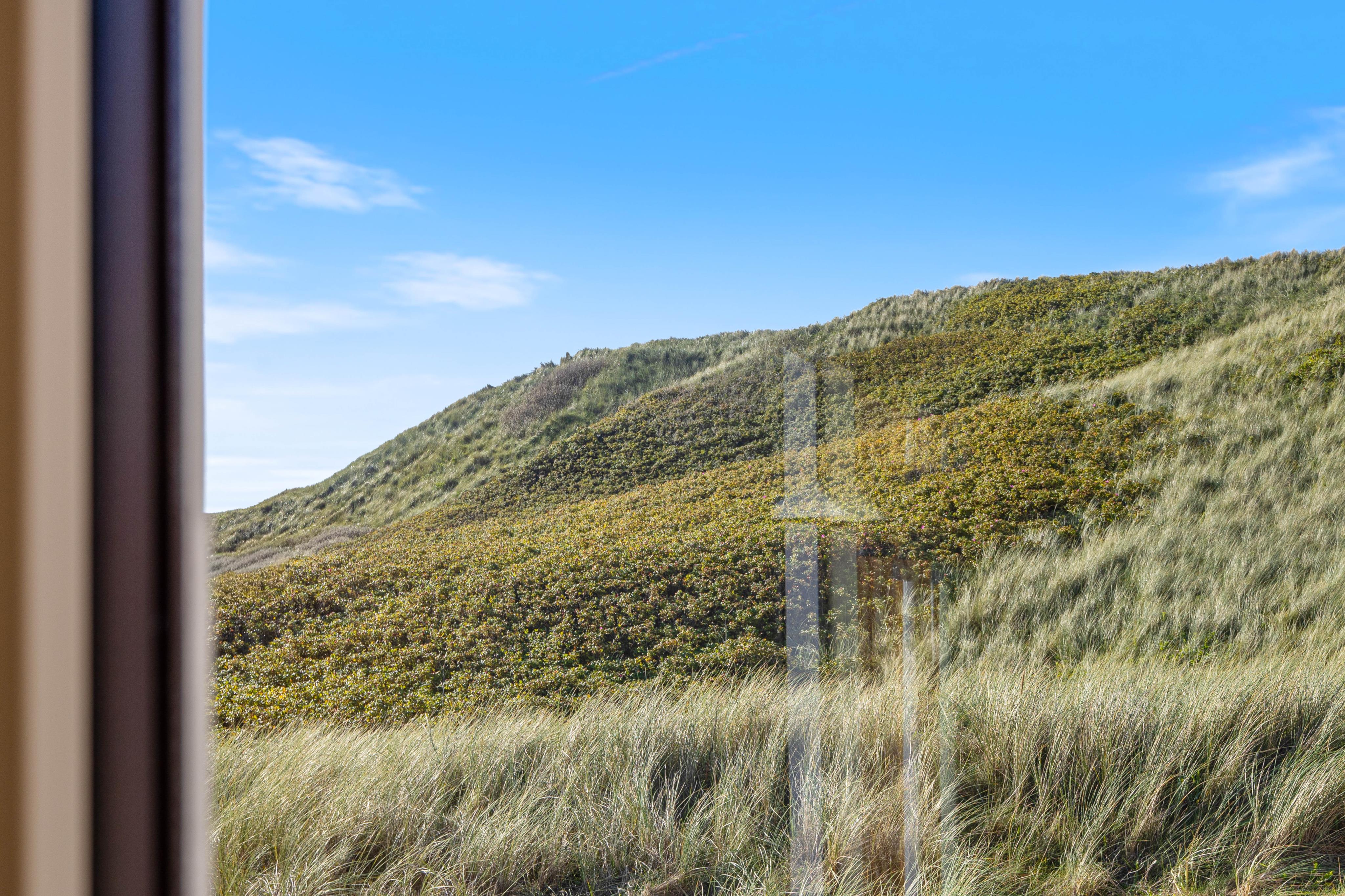 Das Ferienhaus liegt an den Dünen und deswegen hat man im Haus und auf der Terrasse eine wunderschöne Aussicht zu der einzigartigen Dünenlandschaft. Und von hier aus kann man sogar das Rauschen der Nordesee hören.