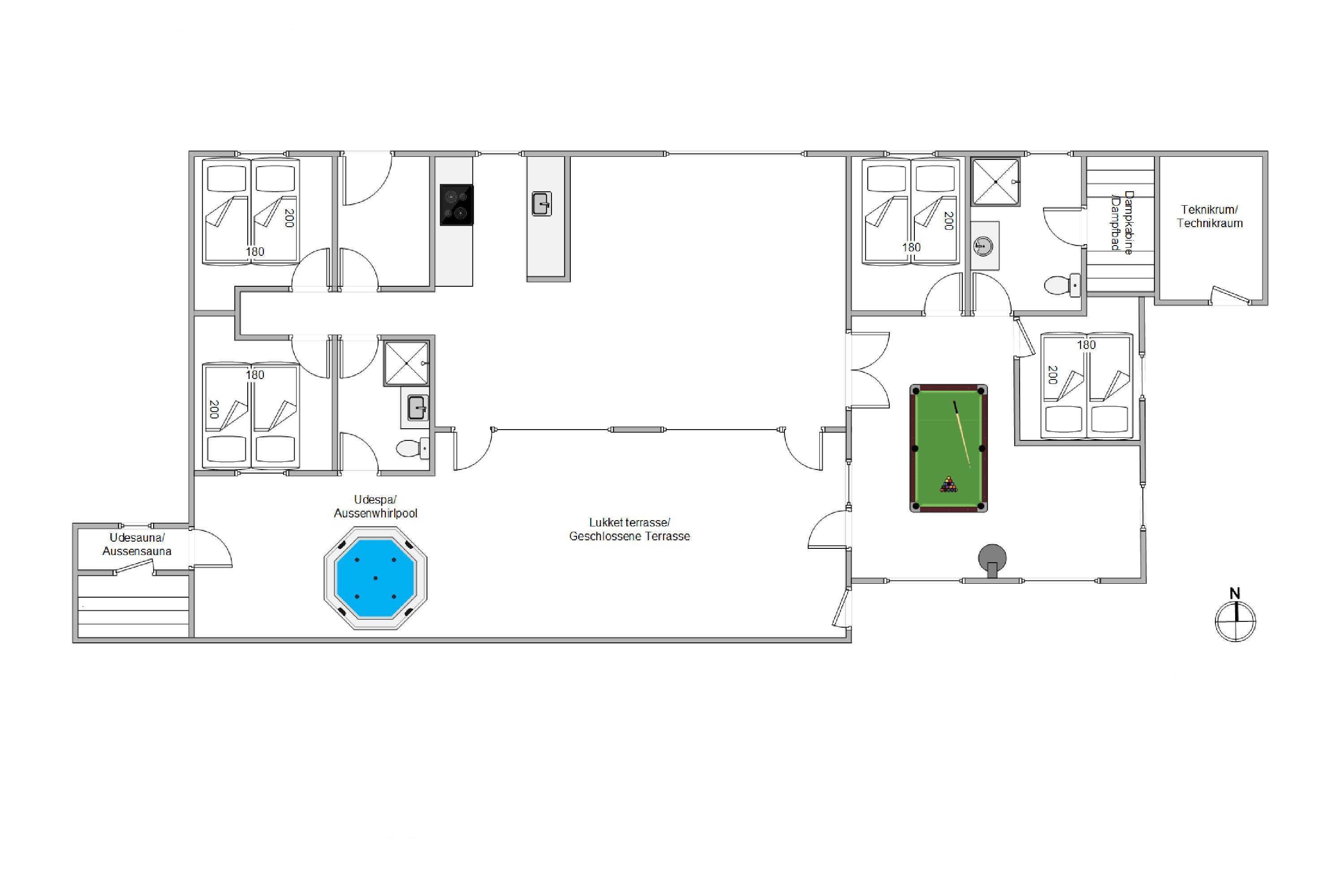 Dieses Ferienhaus ist Toll!!! Gute Zimmer Aufteilung, die Küche ist mit allem ausgestattet was man braucht. In den Bädern waren endlich mal genügend Haken um Handtücher aufzuhängen. Auch bei Regenwetter kommt hier keine Langeweile auf, Außenwhirlpool, Sauna, Dampfsauna, Billard… Zum Wohlfühlen und entspannen Perfekt!