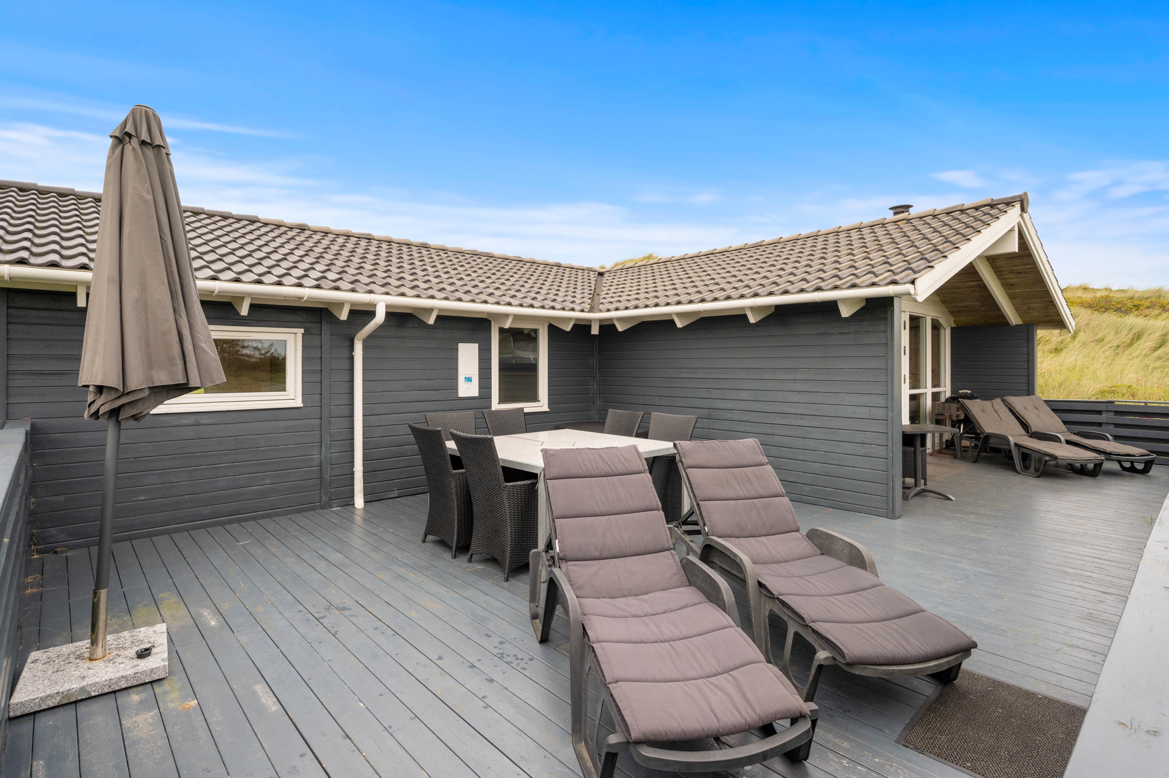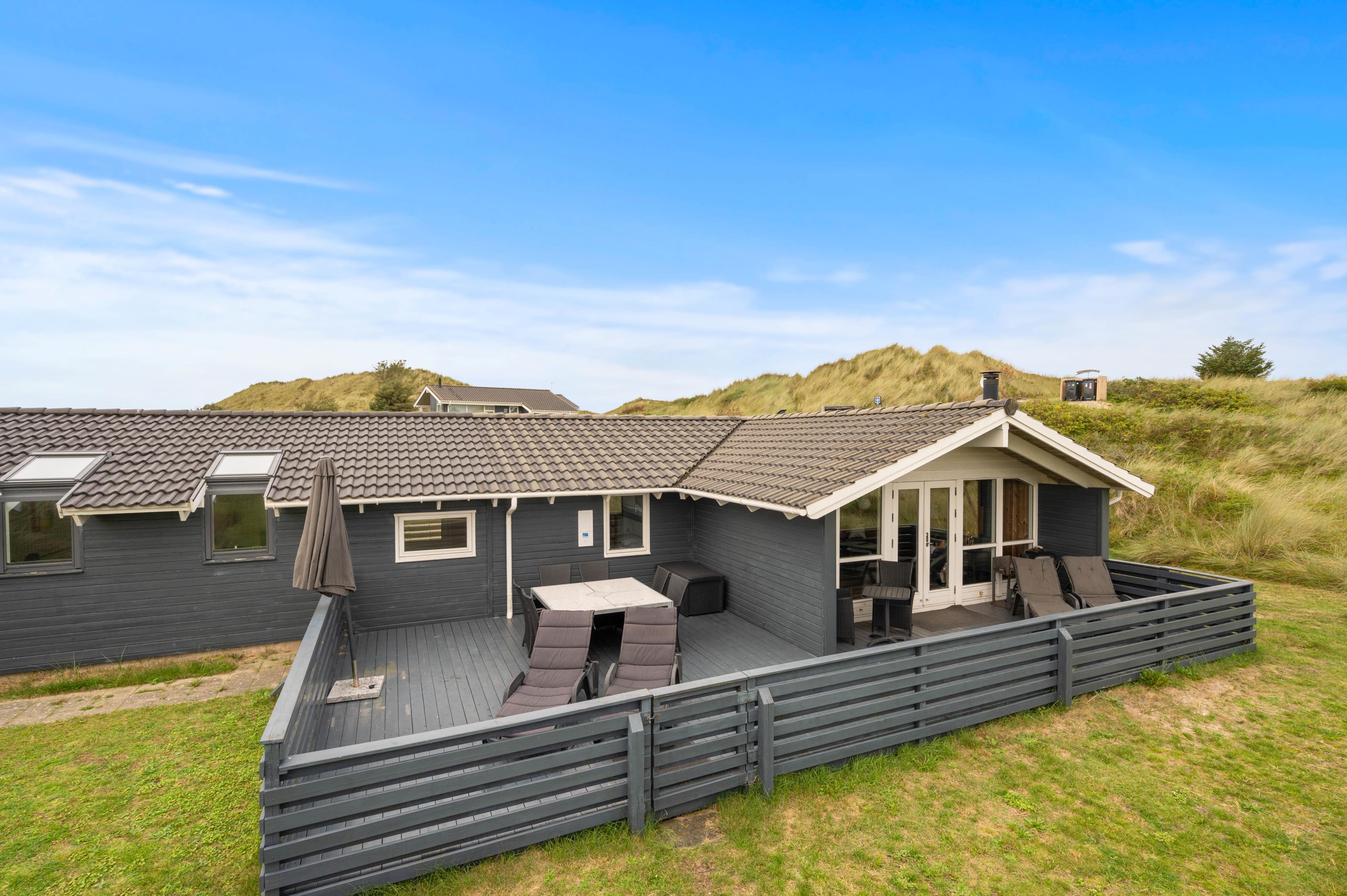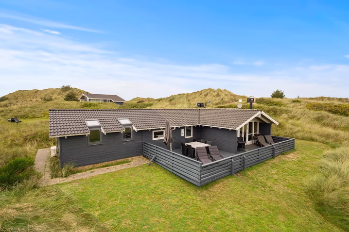 Großes, gemütlich eingerichtetes, direkt in den Dünen gelegenes Ferienhaus. Von dem Wohnzimmer und der Terasse hat man einen weiten Blick auf eine große Wiese und den Fjord. Viel Spaß bietet ein Zimmer, welches mit einem Billiardtisch, Sitzgelegenheiten, einem Fernseher sowie einer Dartscheibe eingerichtet ist. Man kann hier wunderbar ein paar Tage oder Wochen verbringen. Die Einrichtung ist detailliert und sorgsam gewählt. Das große Sofa lädt zum gemeinsamen zusammensitzen ein und dem Spielen von Gesellschaftsspielen.
