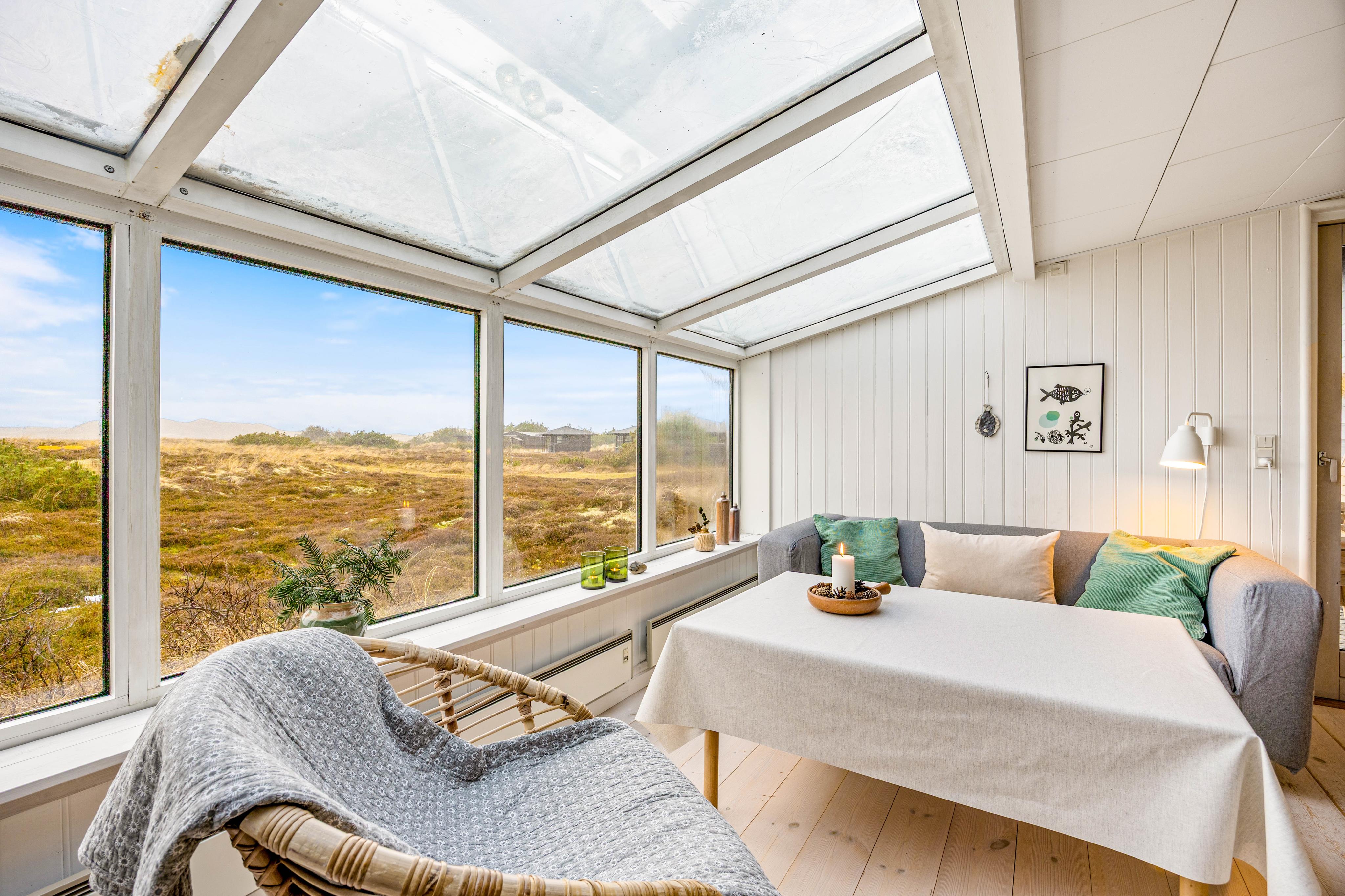 Von der großen Fensterfront Richtung Westen kannst du auch vom Sofa der Natur ganz nah sein. Es ist einfach einzigartig in der Umgebung von Holmsland Klit den Urlaub zu verbringen- zu jeder Jahreszeit.