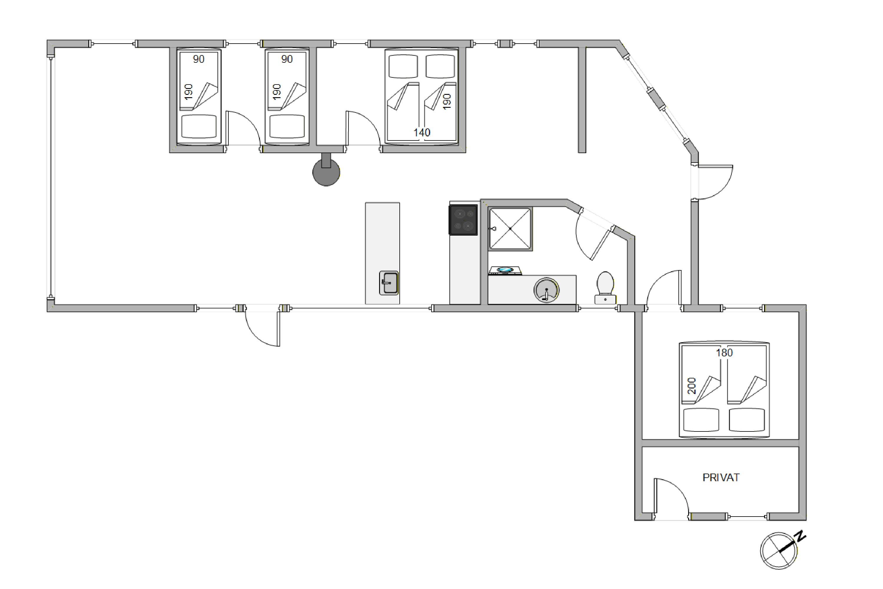 Ein kleines, aber feines Ferienhaus mit Platz für bis zu 6 Personen bzw 2 Erwachsene und bis zu 4 Kindern. Gute Sitzmöglichkeiten im Ess/Küchenbereich, offene Küche, Wohnzimmer mit Klimaanlage, Fernseher und offenem Blick zu den Dünen. 1 gr. Elternschlafzimmer mit Doppelbett. 2 kleine Schlafzimmer, eines mit Doppel - , das andere 2 Einzelbetten. 1 kleines Badezimmer mit Dusche, Waschmaschine und WC. Im Aussenbereich finden sich 2 unüberdachte Terassen mit Tisch, Stühlen und Liegen zum Entspannen und Ruhe genießen. 2 Schaukeln und ein Sandkasten sind für die Kleinen ebenfalls da. Möchte jemand als Familie nah am Strand und sonst in einer ruhigen Wohngegend Urlaub machen mit Nähe zu Sondervig, dann ist er hier genau richtig.