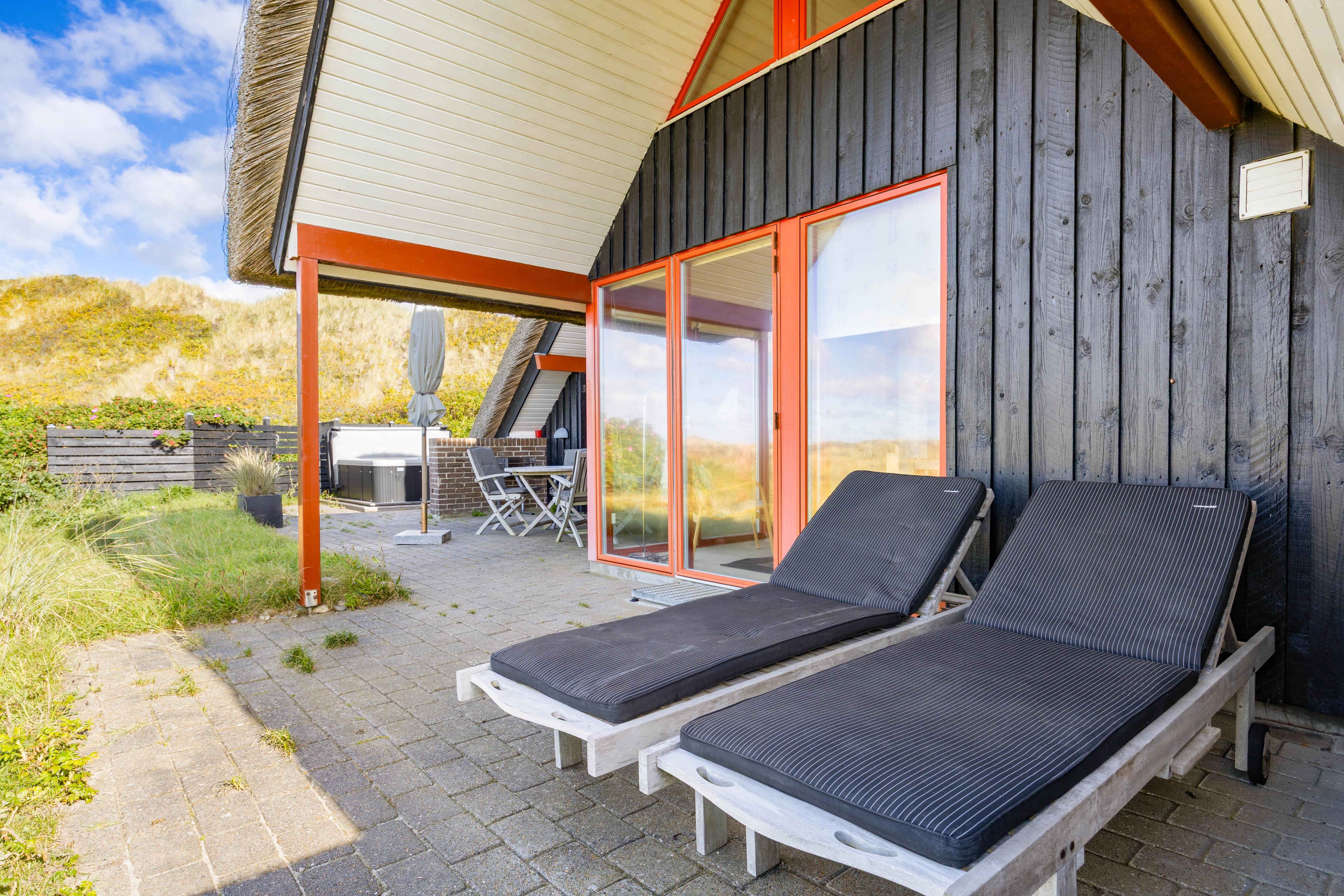 Reetgedecktes Ferienhaus mit persönlicher Einrichtung. Das Haus liegt direkt an den Dünen und nah an der Nordsee, welches es einfach macht zum Strand zu gelangen. Von der Terrasse hast du einen tollen Blick auf die Dünen, hier kann man die langen Sommerabende genießen.