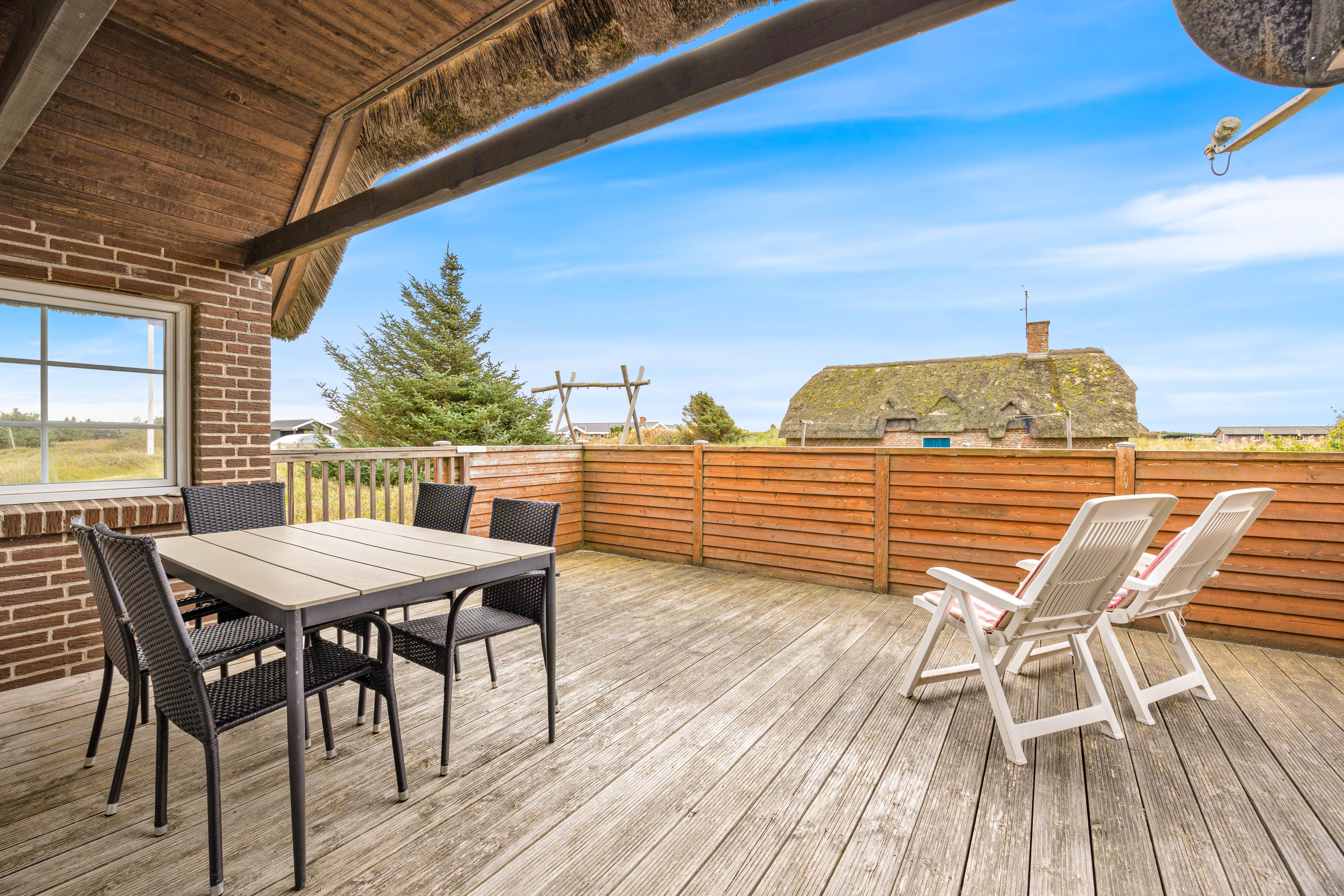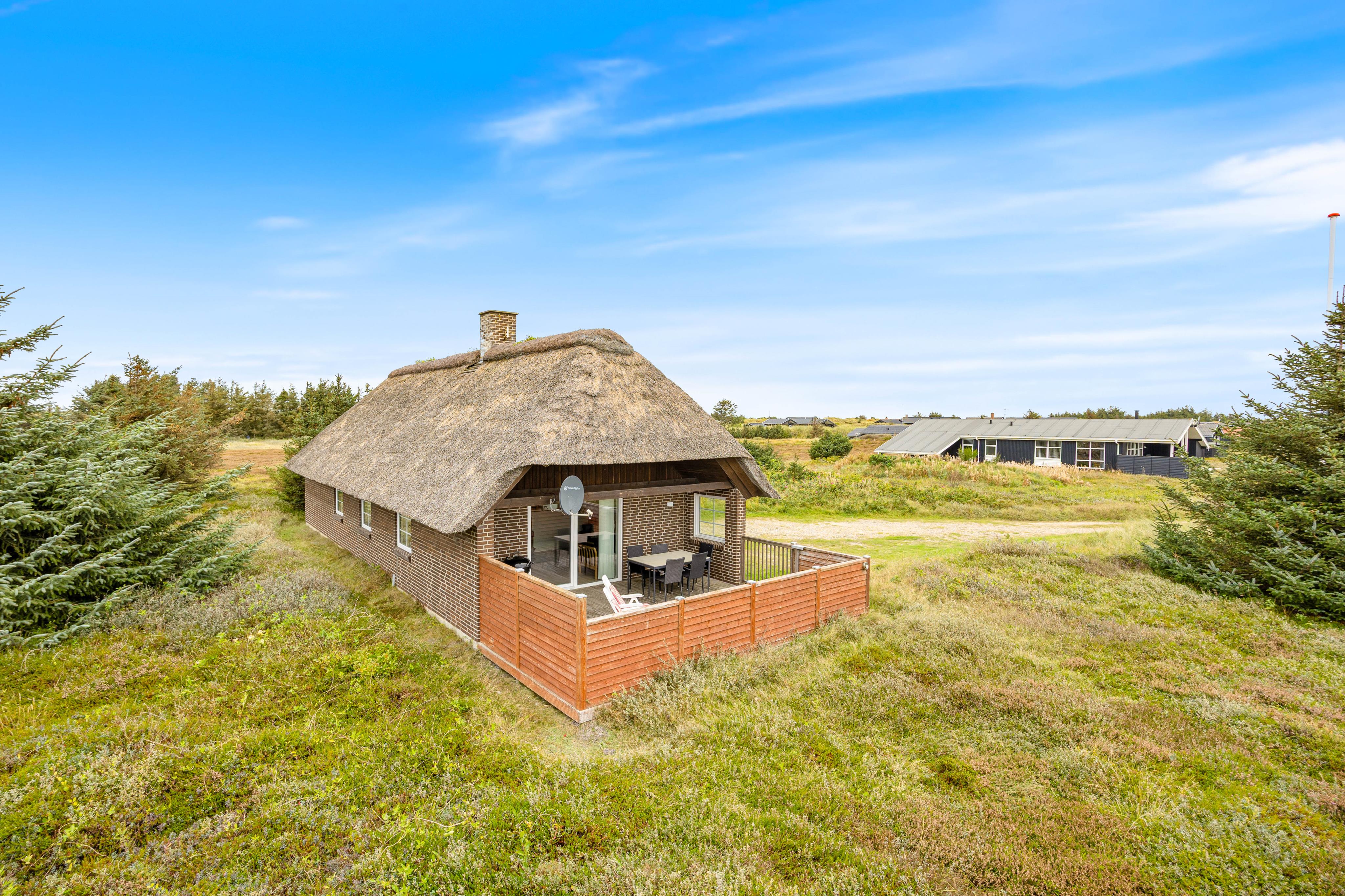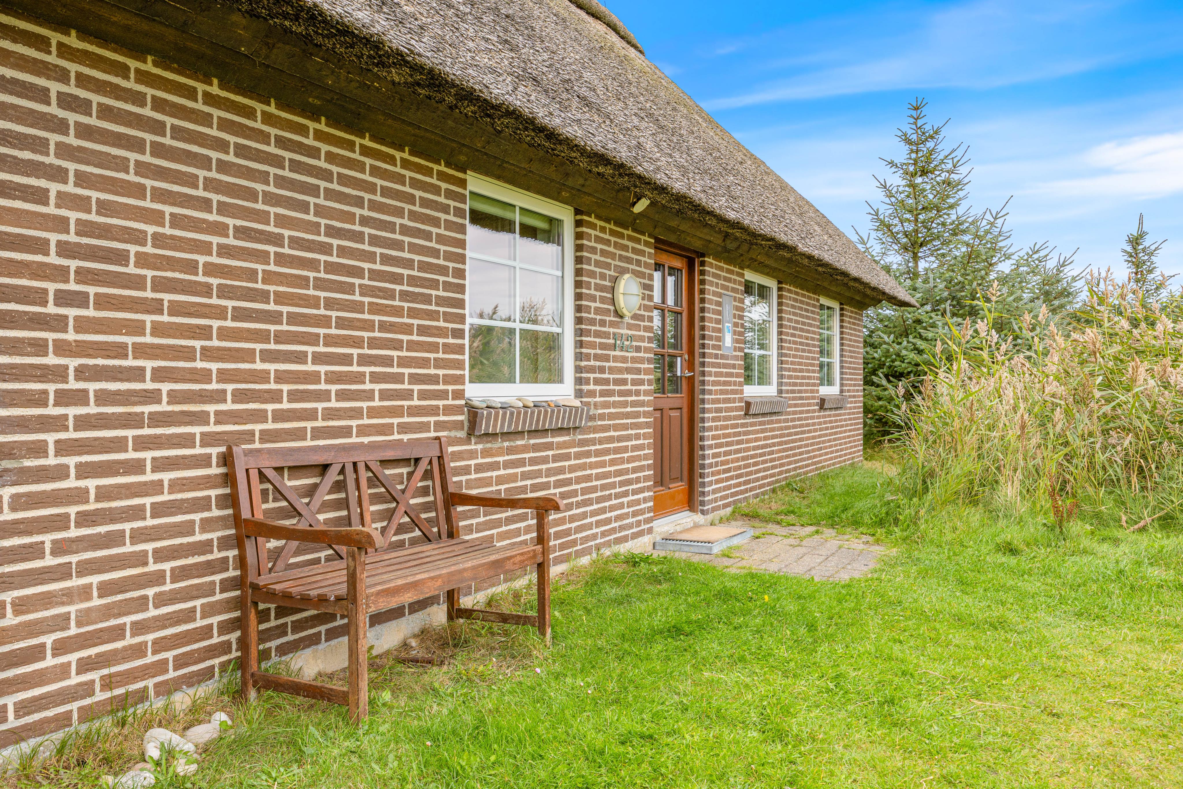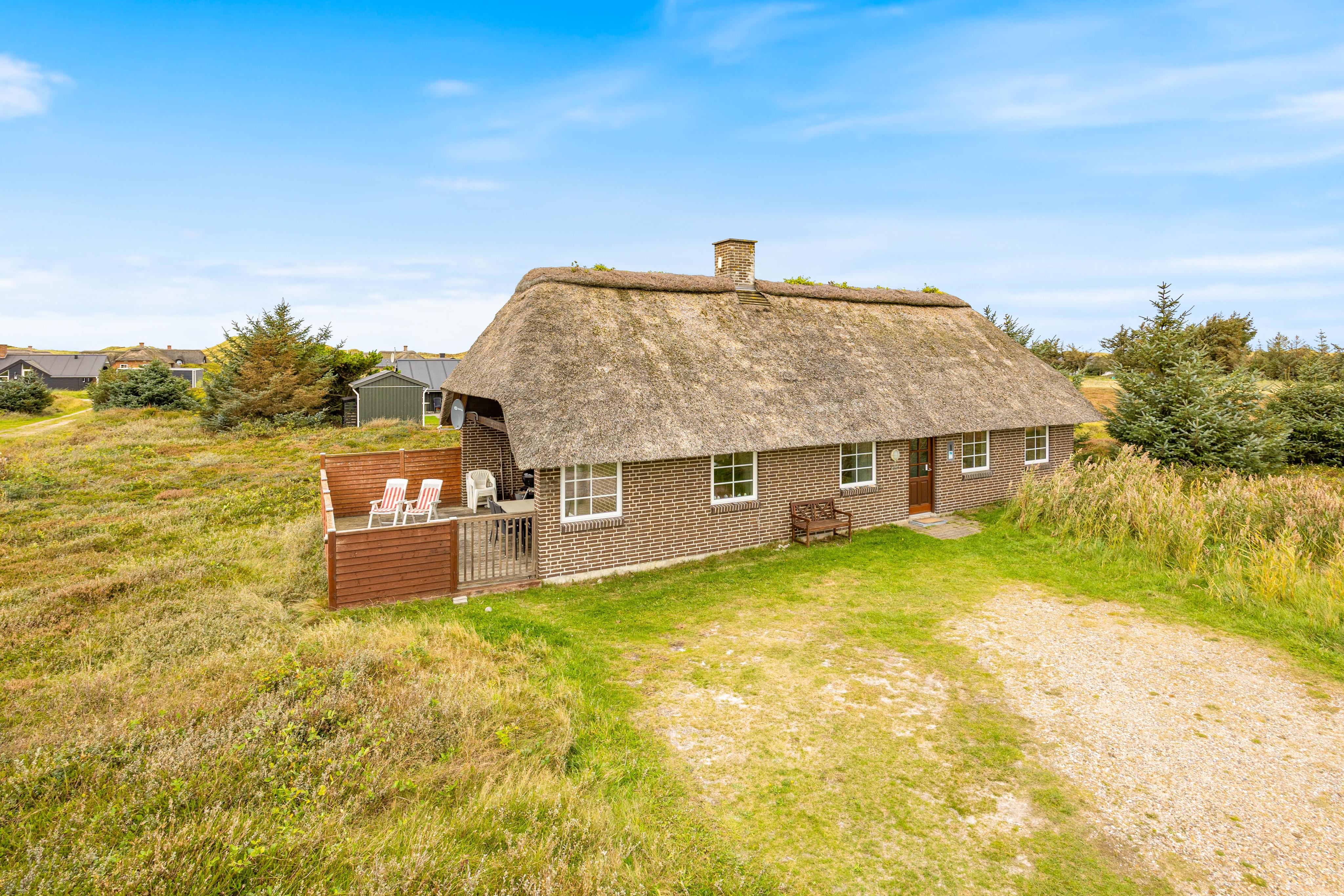 Gemütliches Ferienhaus mit Reetdach und charmanter Einrichtung im Fladsbjergvej in Klegod. Das Haus liegt auf einem Naturgrundstück nur 300 Meter von der Nordsee entfernt und auch bis nach Søndervig oder Hvide Sande ist es mit dem Auto nicht weit.