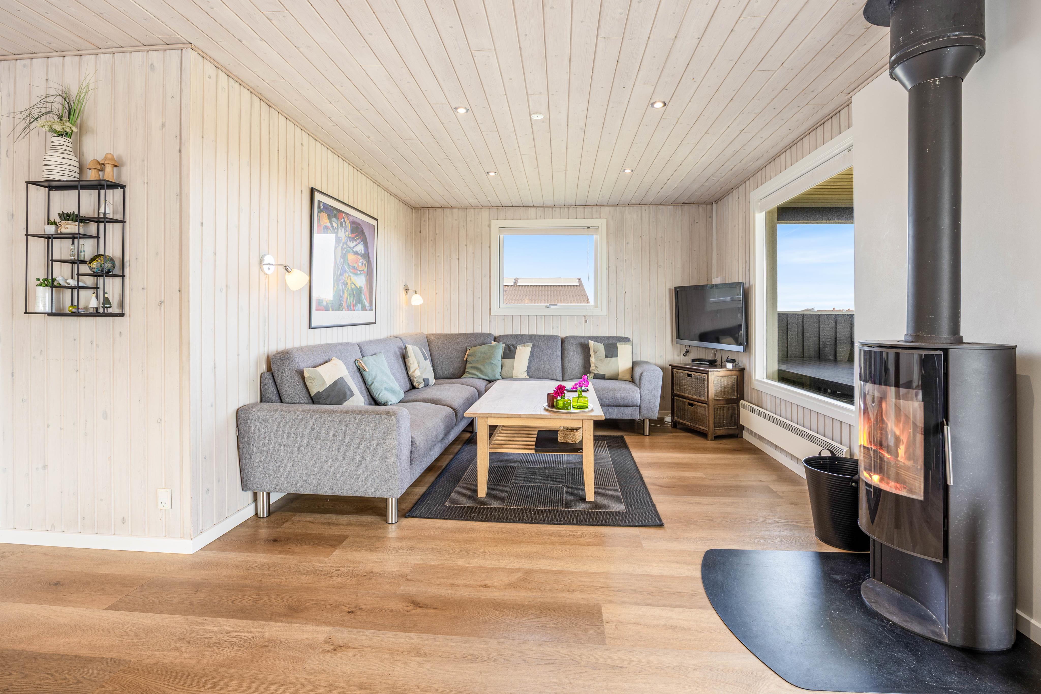 Urlaub mit der ganzen Familie! 4 Schlafzimmer, davon 2 mit Doppelbetten und 2 mit Einzelbetten, garantieren bis zu 8 Personen ausreichend Platz für einen erholsamen Urlaub. In diesem schönen, hellen Haus mit herrlicher Aussicht und vielen Möglichkeiten zum Genießen - Sauna und Whirlpool stehen zur Verfügung, können entspannte Tage miteinander verbracht werden. Das Haus wurde 2017 renoviert und ist mit hellen Holzverkleidungen, schönen bequemen Möbeln, einem Holzofen und einer offenen Küche ausgestattet, welche modern und gut ausgestattet ist.