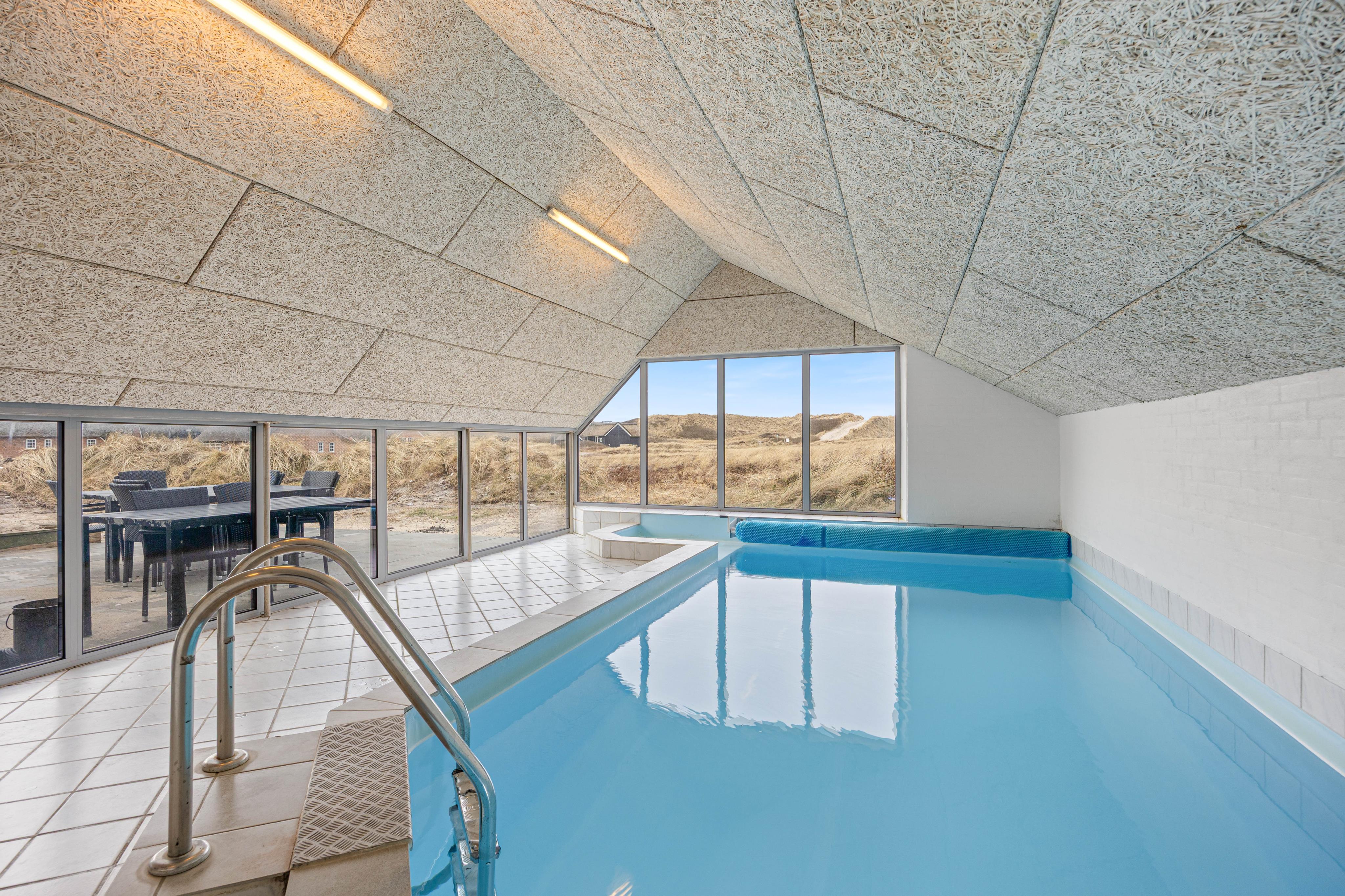 In Kræ Degns Vej 56 wohnt ihr inmitten der Dünenlandschaft Westjütlands, nur 240 Meter von der Nordsee entfernt. Der 15 m² große Pool bietet stundenlangen Badespaß und Entspannung für Groß und Klein, während Sauna und Whirlpool das Urlaubserlebnis abrunden.
