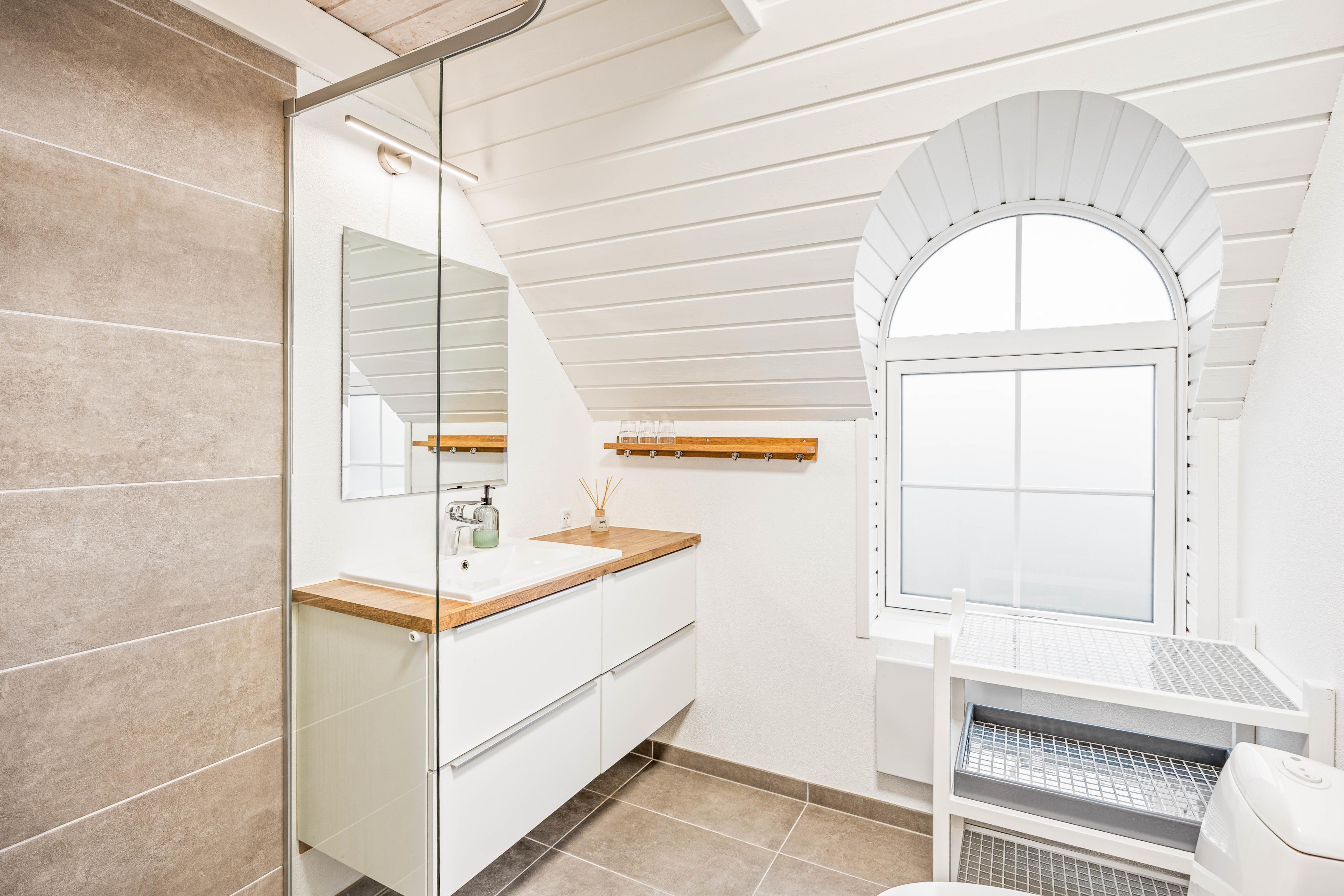 Es ist leicht zu sehen, dass das Haus im Jahr 2018 renoviert wurde, und das gemütliche und helle Dekor mit dezenten Farben schafft eine einladende Atmosphäre. Der Kaminofen im Wohnzimmer sorgt auch an den kälteren Urlaubstagen für gemütliche Wärme und eine entspannende Urlaubsatmosphäre.