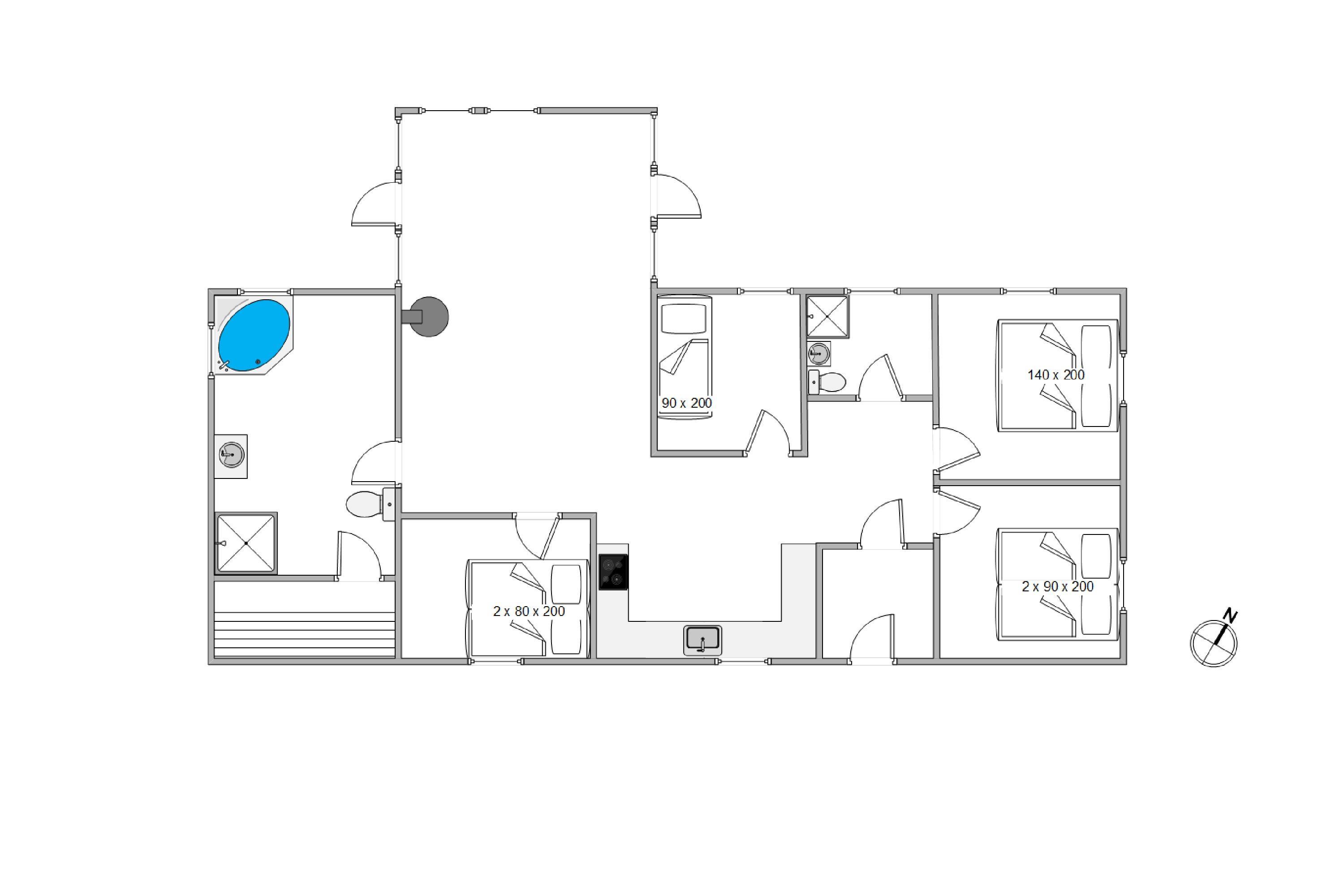 Das Ferienhaus, welches auf einem 2000 m2 großem Grund im schönen Klegod liegt, verfügt insgesamt über 4 Schlafzimmer sowie 2 Badezimmer.