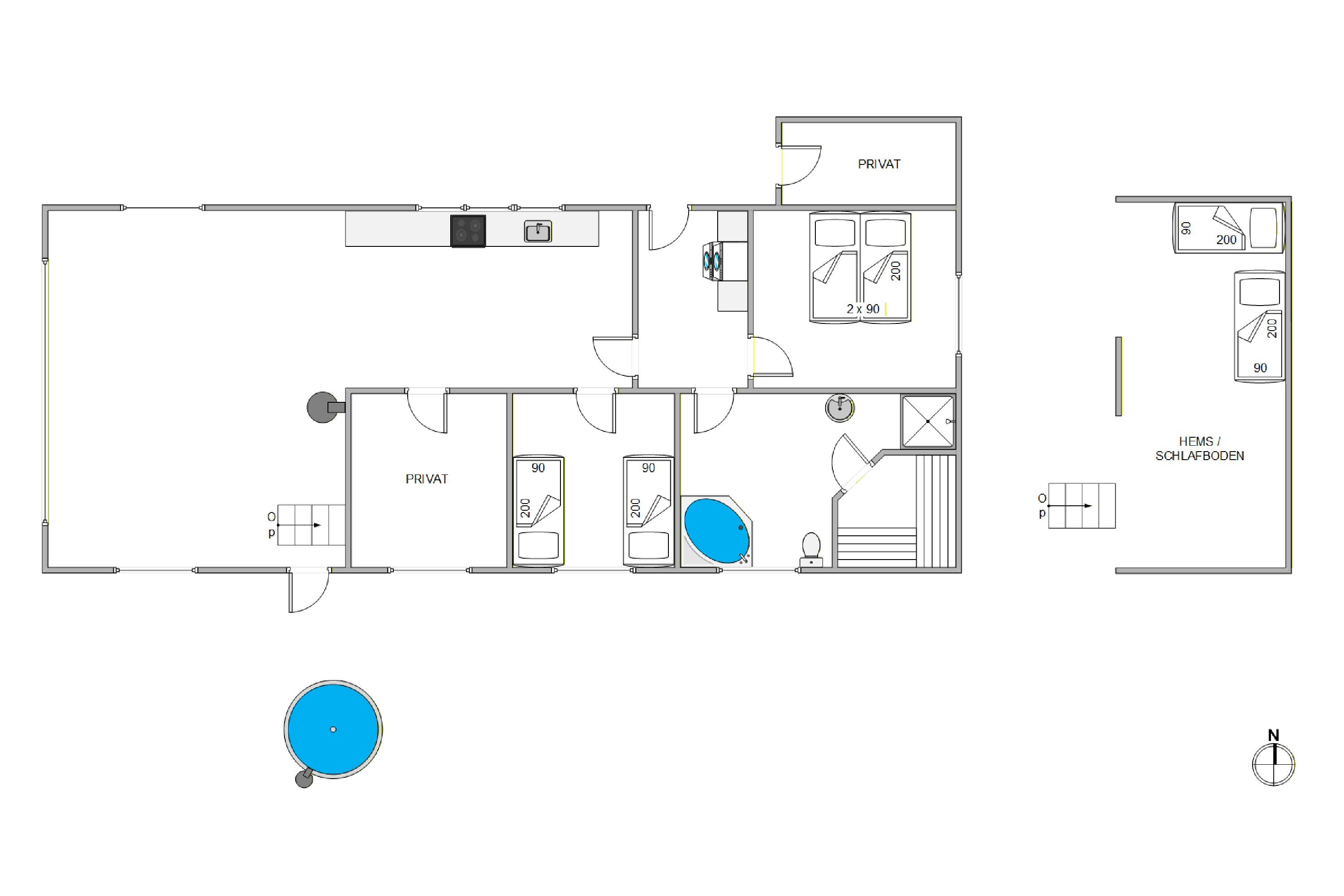 Das Herz des Hauses ist die offene Küche, verbunden mit dem Ess- und Wohnbereich. Hier könnt ihr abends vor dem SMART-TV entspannen und den Tag zusammen ausklingen lassen. Vor dem knisternden Kamin schmeckt ein leckeres Essen umso besser und die hohen Decken sowie die sichtbaren Balken verleihen dem Raum einen ganz besonderen Charme. Die 105 m2 verteilen sich auf den offenen Wohn- und Essbereich, die offene Küche, das großzügige Badezimmer sowie 3 Schlafzimmer und einen Hems. Vom Wohnbereich gelangt man auf die Terrasse. Hier könnt ihr tagsüber die Sonne genießen und abends den Grill anmachen.