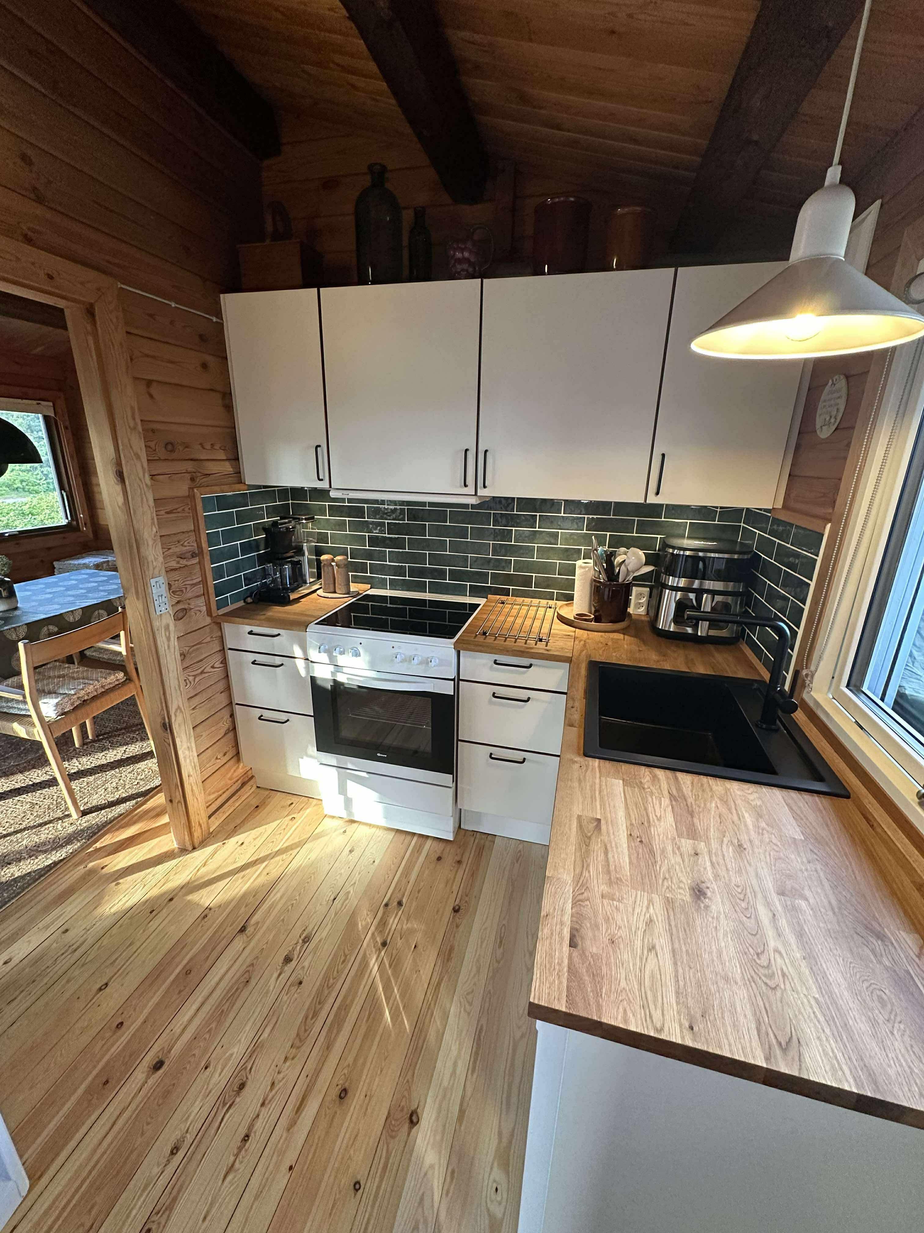 Dieses schöne Blockhaus wurde mit Respekt vor dem Naturmaterial, aus dem es gebaut wurde, eingerichtet. Wände und Decken haben sichtbare, rustikale Balken und schaffen so viel Gemütlichkeit und Atmosphäre in den Räumen. Die Einrichtung ist funktionell und mit allem ausgestattet, was man für den Aufenthalt benötigt. Ihr findet hier einen offenen Wohn- und Essbereich, sodass ihr hier viel Zeit mieinander verbringen könnt. Der gemeinsame Spieleabend wird urgemütlich und auch wenn das Wetter mal nicht ganz mitspielt findet ihr in diesem Fereinhaus jede Menge Gemütlichkeit. Einen spannenden Fernsehabend mit deutschen Programmen, steht im diesen Ferienhaus auch nichte im Wege.
