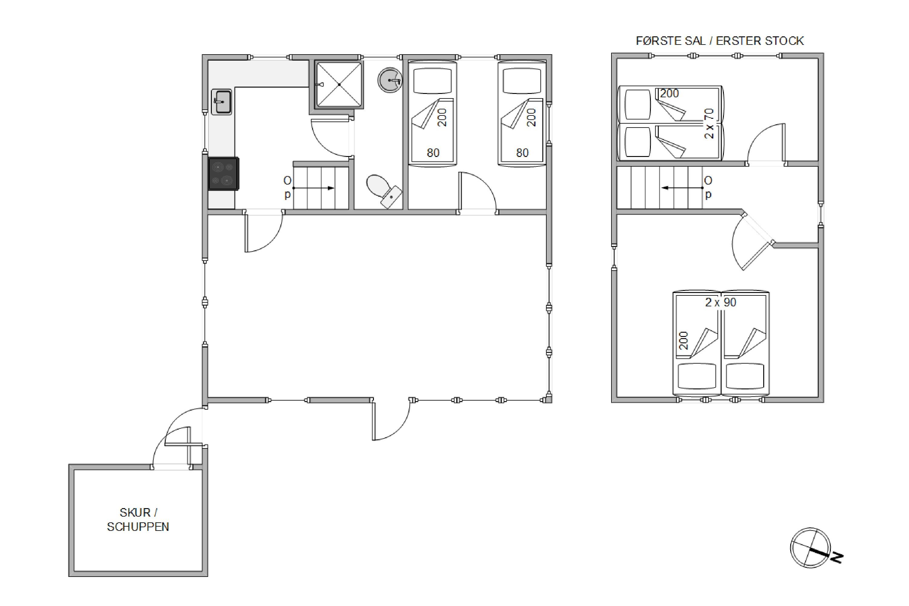 Obwohl das Haus nur 72 Quadratmeter groß ist, ist es optimal eingerichtet und bietet viel Platz für die ganze Familie. Es gibt 3 Schlafzimmer, 1 im Erdgeschoss mit einem Einzelbett und 2 Zimmer im ersten Stock - beide mit Doppelbetten. Eine ideale Wahl für diejenigen, die ein kleineres, aber funktionelles Ferienhaus in der Nähe der Nordsee suchen.