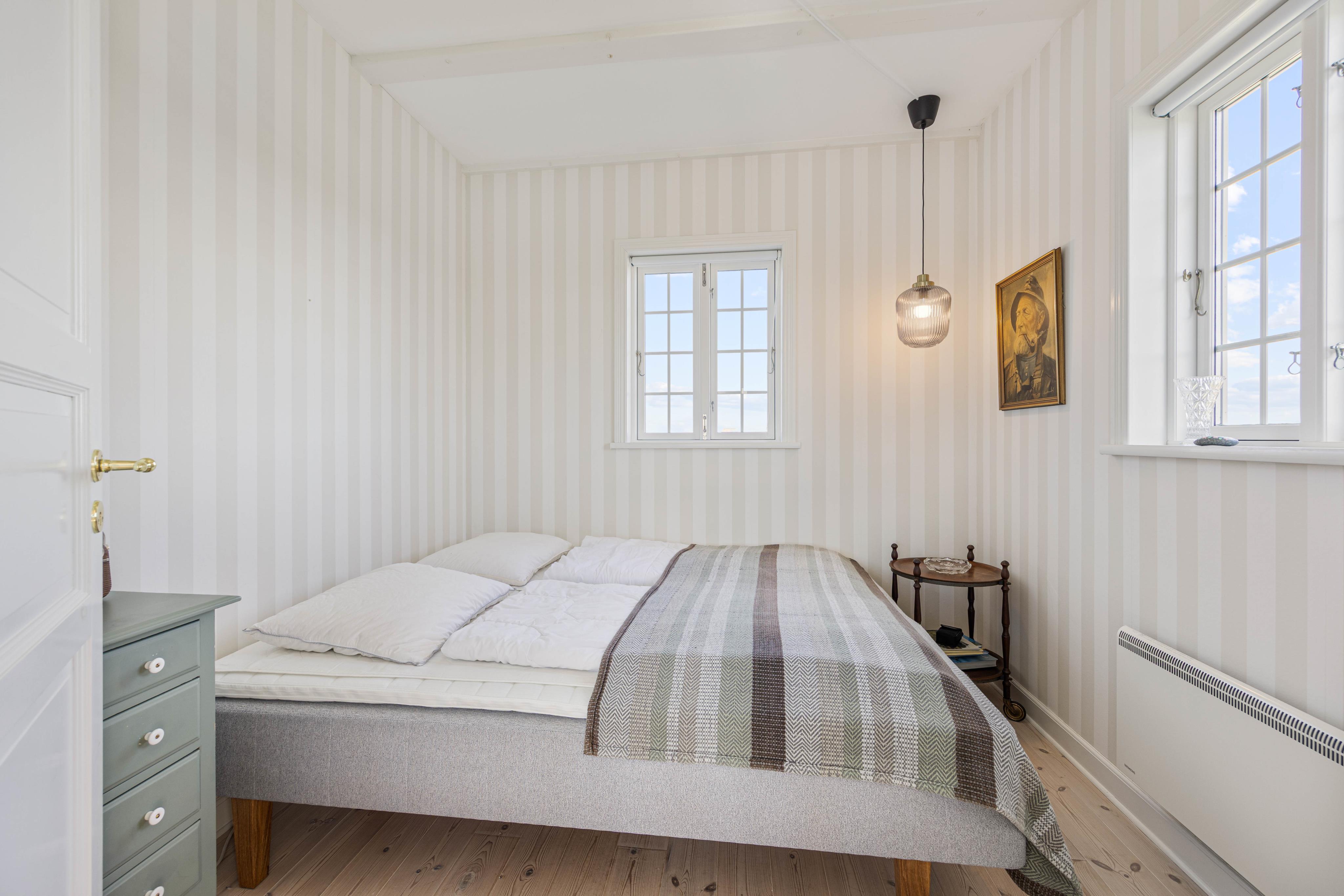 Sobald ihr dieses Ferienhaus betretet, werdet ihr die besondere Atmosphäre eines Strandhotels erleben, die das Haus einzigartig macht. Die schöne Wandvertäfelung, die schönen Tapeten und die Sprossenfenster schaffen eine authentische und gemütliche Atmosphäre, wie man sie nur selten in traditionellen Ferienhäusern zur Miete findet. Das Wohnzimmer ist mit Sofamöbeln und einer Essecke ausgestattet und ist hell und offen gestaltet. Durch die vielen Fenster habt ihr eine fantastische Aussicht auf Søndervig und die umliegende Dünenlandschaft – ideal für alle, die ein Ferienhaus mit Aussicht suchen.