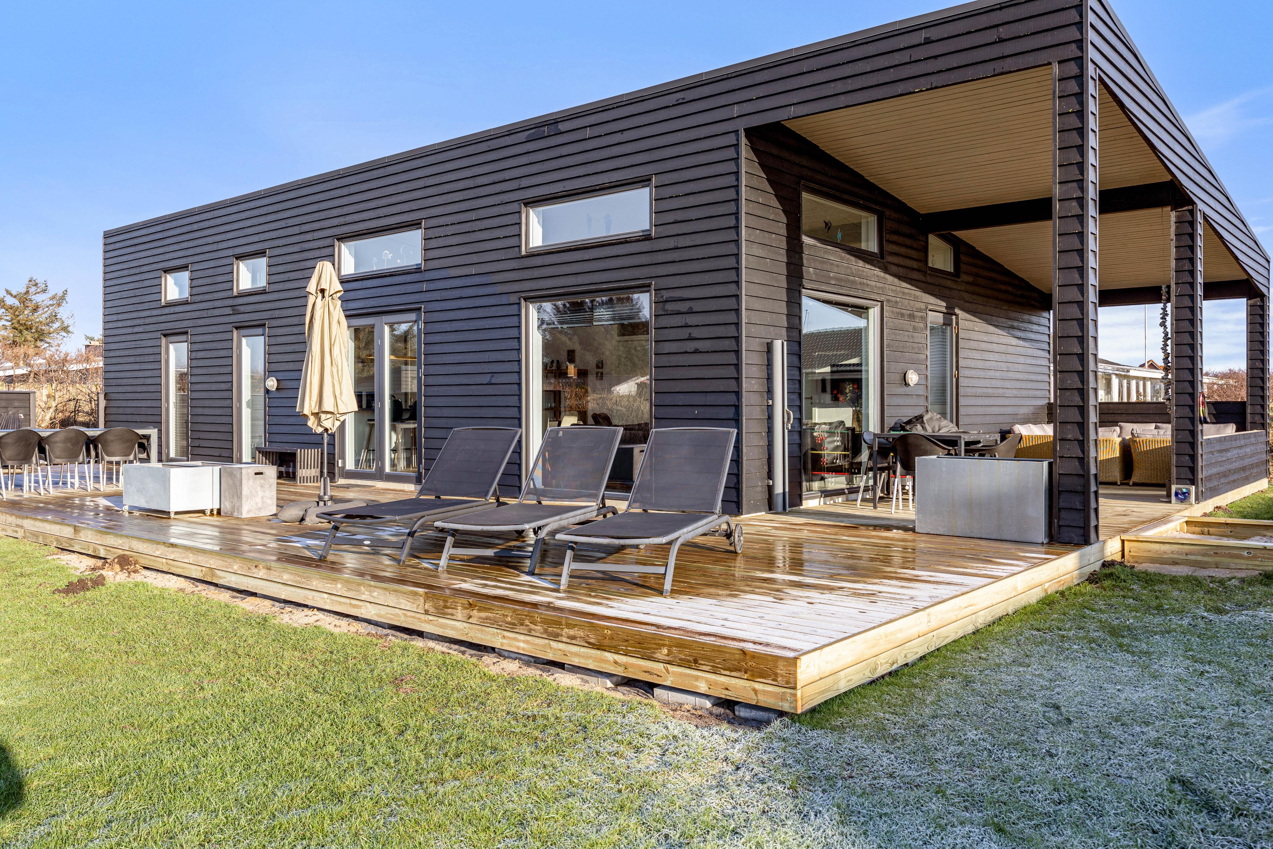 Dieses Ferienhaus auf Harbo Stages Vej 7 ist modern und geschmackvoll eingerichtet und liegt nur wenige Gehminuten vom Søndervig Zentrum entfernt. Das für bis zu 8 Personen gut ausgestattete Haus steht auf einem Rasengrundstück, mit abgeschirmter und teilweise überdachte Terrasse.