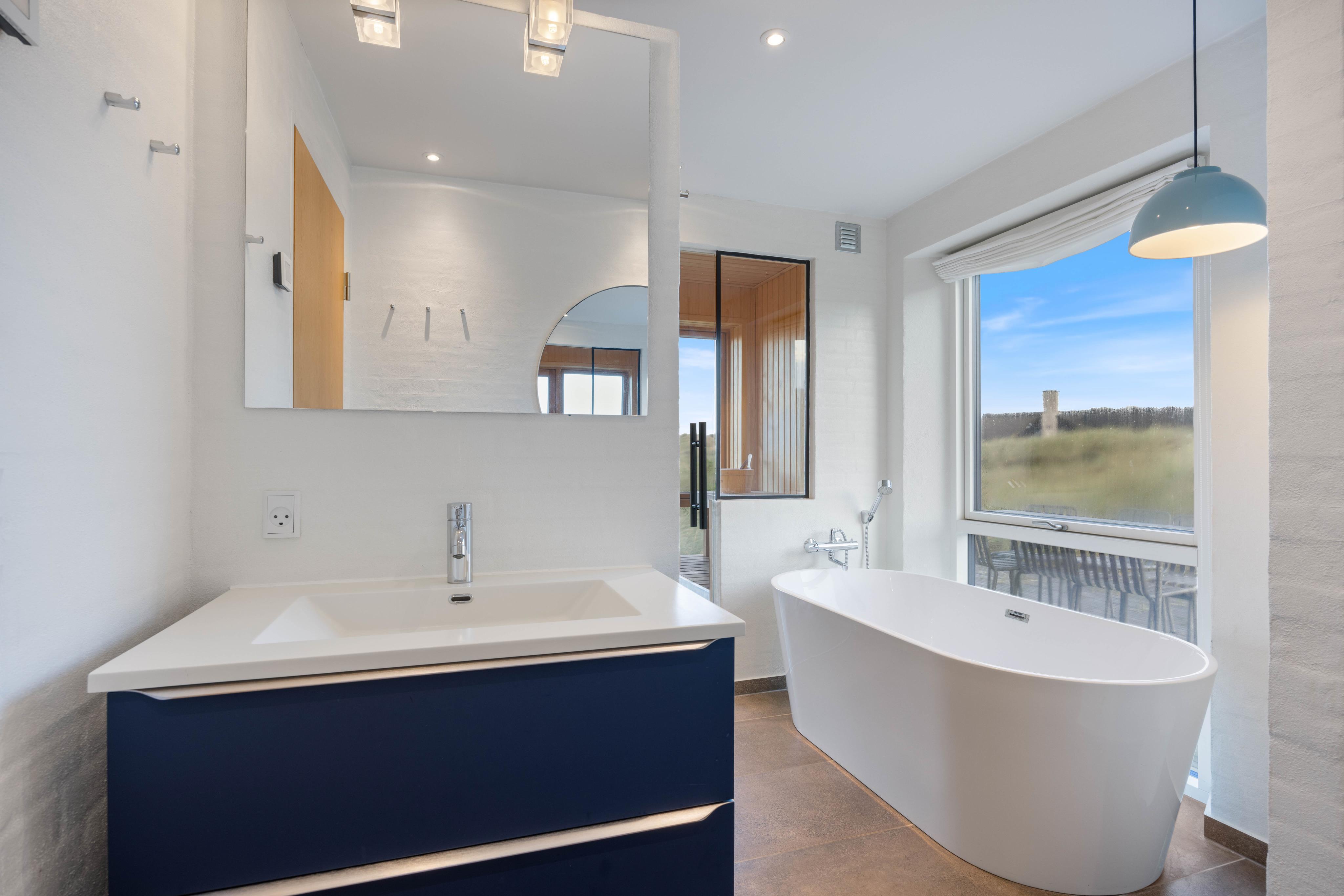 Dieses einzigartige Ferienhaus in Søndervig wurde auf einem über 3000 m2 großen, mit Heidekraut bedecktem Naturgrundstück gebaut und hat eine fantastische Lage in der 1. Dünenreihe, nur 75 Meter vom Strand. Hier wird aus dem Erholungsurlaub ein Wellnessurlaub durch die Doppeldusche, Badewanne und die Sauna. Eine Außendusche sorgt im Sommer für eine kleine Abkühlung. Nehmt auch gerne eure 2 vierbeinigen Freunde mit. Am Ferienhaus befindet sich eine Lademöglichkeit für euer E-Auto, damit ihr euer Fahrzeug laden könnt.