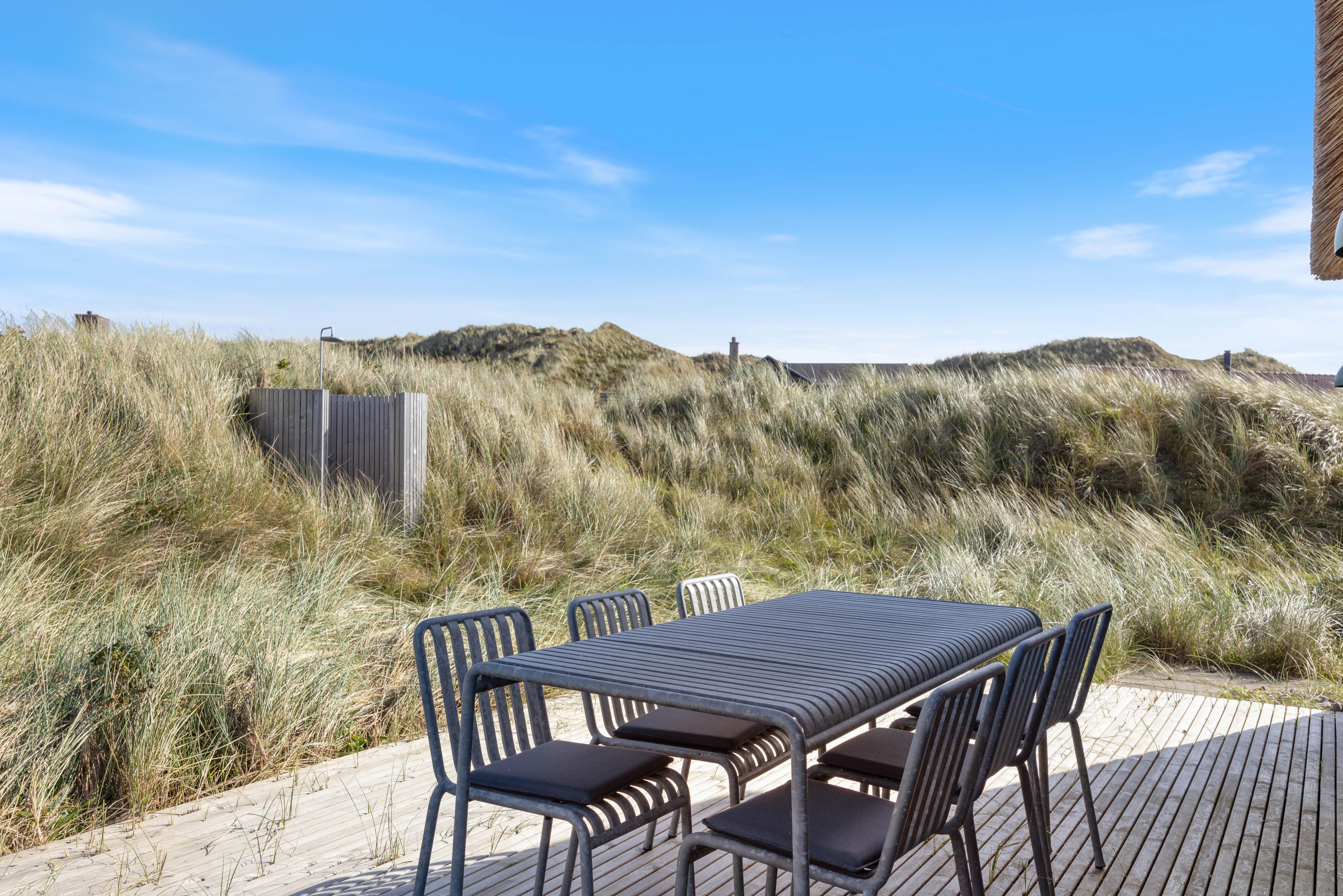 Die Lage ist völlig ungestört und ihr habt Zugang zu den hohen Dünen direkt hinter dem Haus. Hier werdet ihr mit einem atemberaubenden Blick auf den Fjord nach Ringkøbing und auf das Meer belohnt. Der Strand ist ca. 75 m entfernt, sodass ihr jeden Tag die Nordsee mit ihren verschiedenen Facetten erleben könnt. Nach einem Bad im Meer könnt ihr, in der Zeit von April-November, euch das Salz und den Sand unter der Außendusche abspülen. Auf den Terrassen auf beiden Seiten des Ferienhauses, könnt ihr die Sonne genießen, in einem guten Buch versinken lesen.
