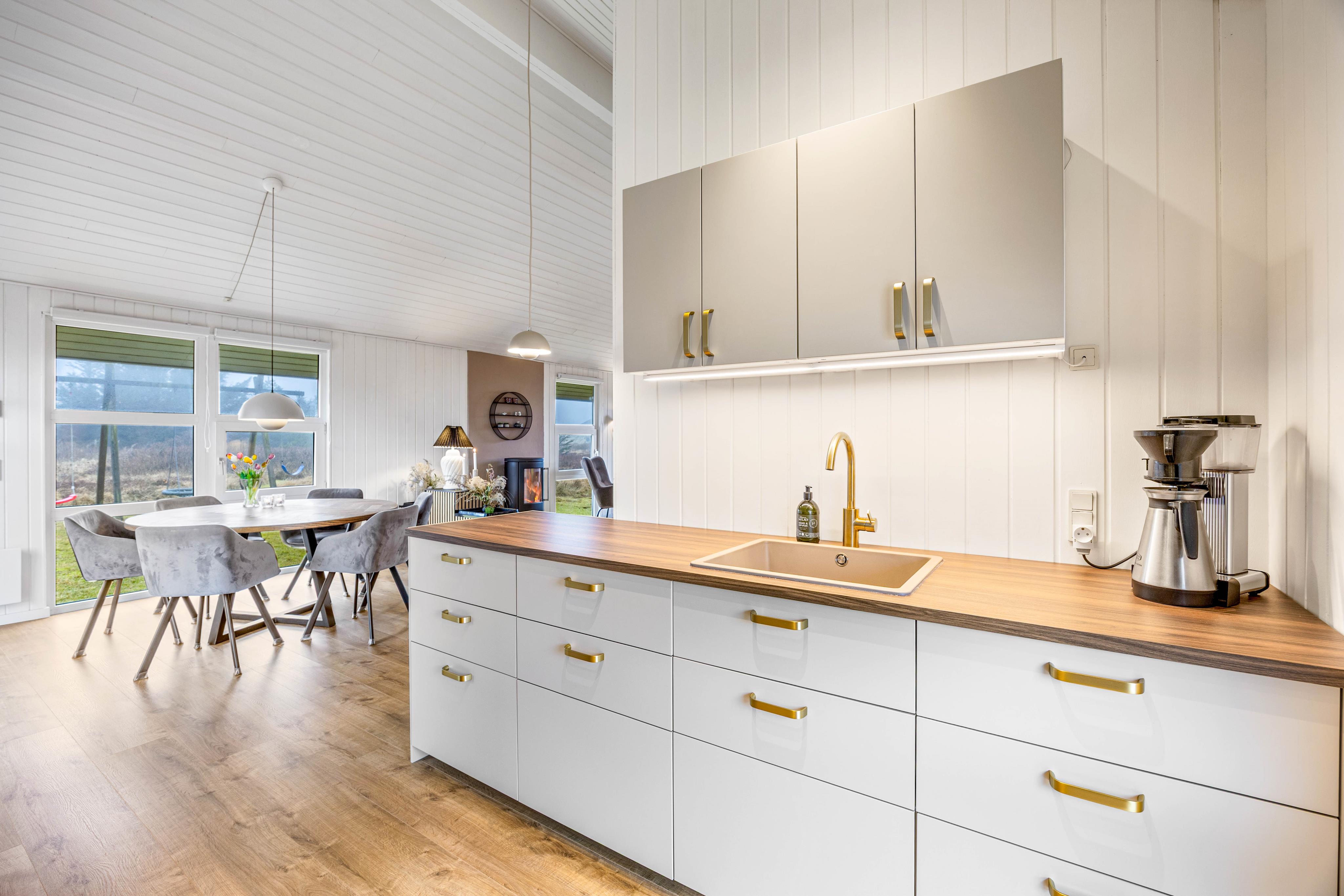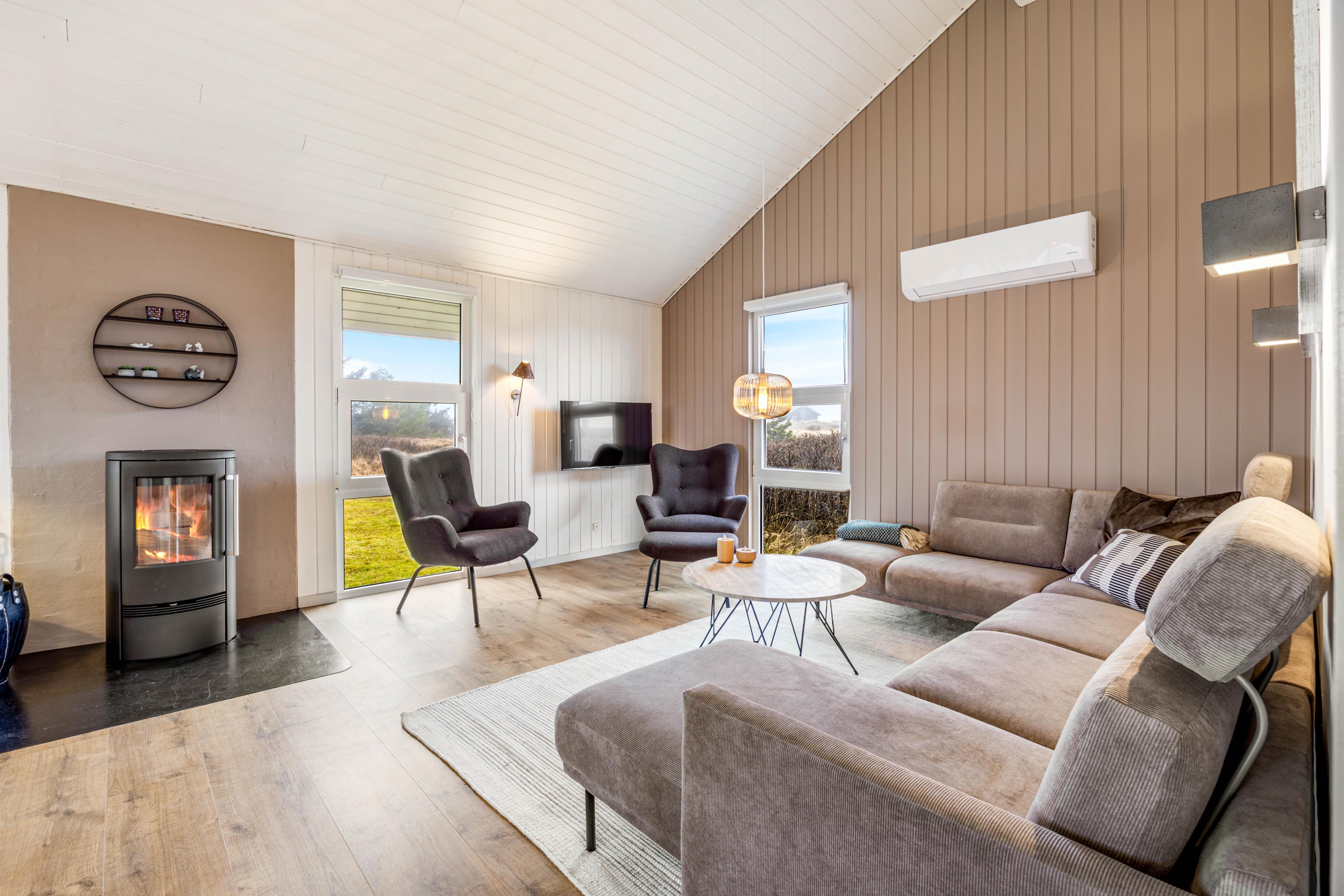 Im Wohnbereich erwartet euch ein großzügiger und offener Raum, in dem ihr viel gemeinsame Zeit miteinander verbringen könnt. Der Holzofen verleiht dem Raum eine warme und einladende Atmosphäre. Hier könnt ihr nach einem Tag am Strand entspannen und die Seele baumeln lassen. Die gut ausgestattete Küche mit Spülmaschine macht die Zubereitung gemeinsamer Mahlzeiten zu einem Vergnügen. Auch im Wohnbereich steht alles für einen geselligen Abend bereit, während die Wärme der integrierten Wärmepumpe für ein behagliches Klima im Wohnbereich sorgt.