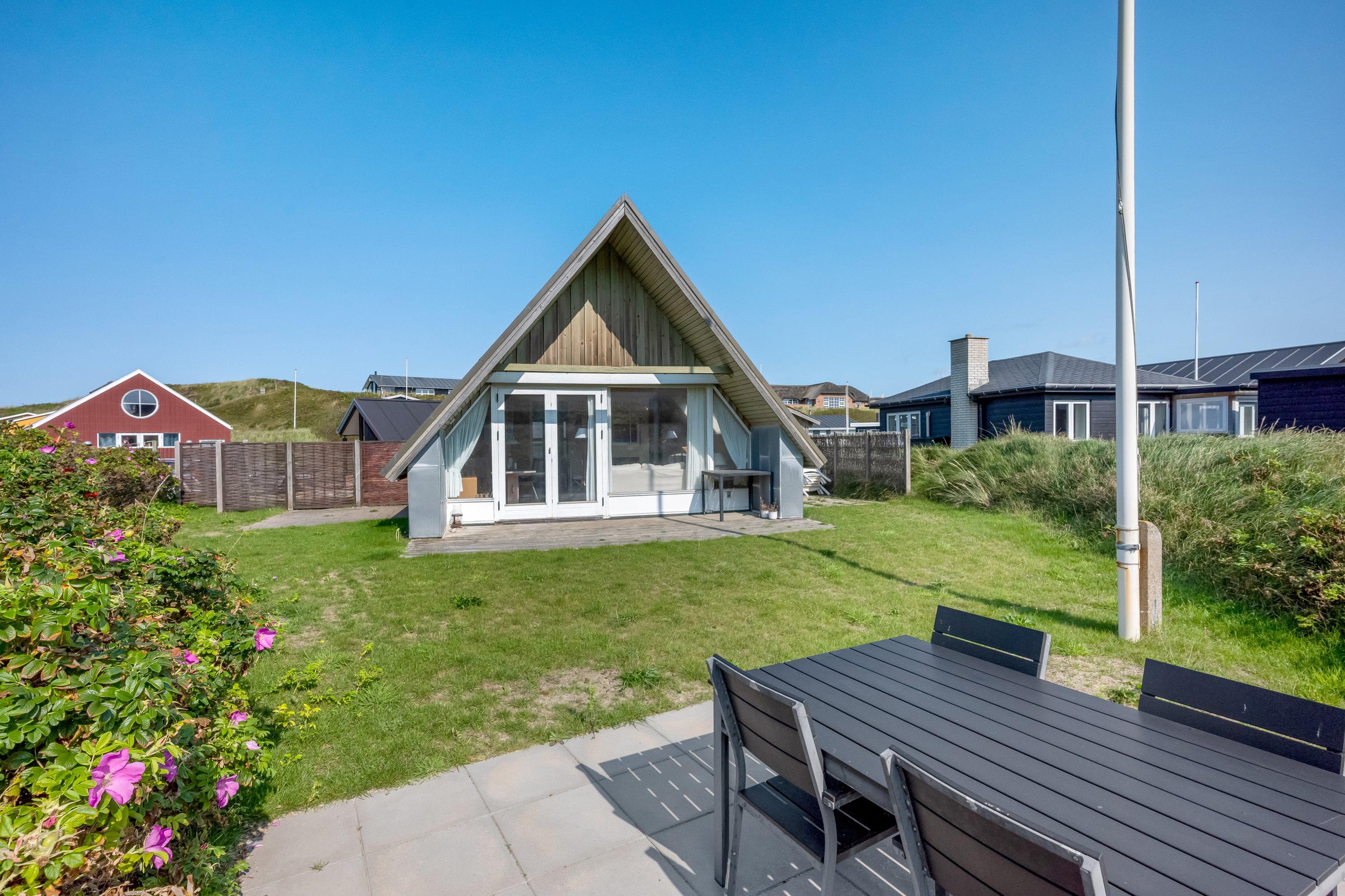 Nur ein paar Schritte hinter der schützenden Düne beginnt der Außenbereich deines Ferienhauses. Die offene Terrasse lädt zum Verweilen ein – sei es beim Grillen oder beim Entspannen in den bereitstehenden Gartenmöbeln. Das Rasengrundstück bietet Platz zum Spielen oder Entspannen und die Nähe zur Natur lässt euch die Ruhe und Weite der dänischen Landschaft genießen.