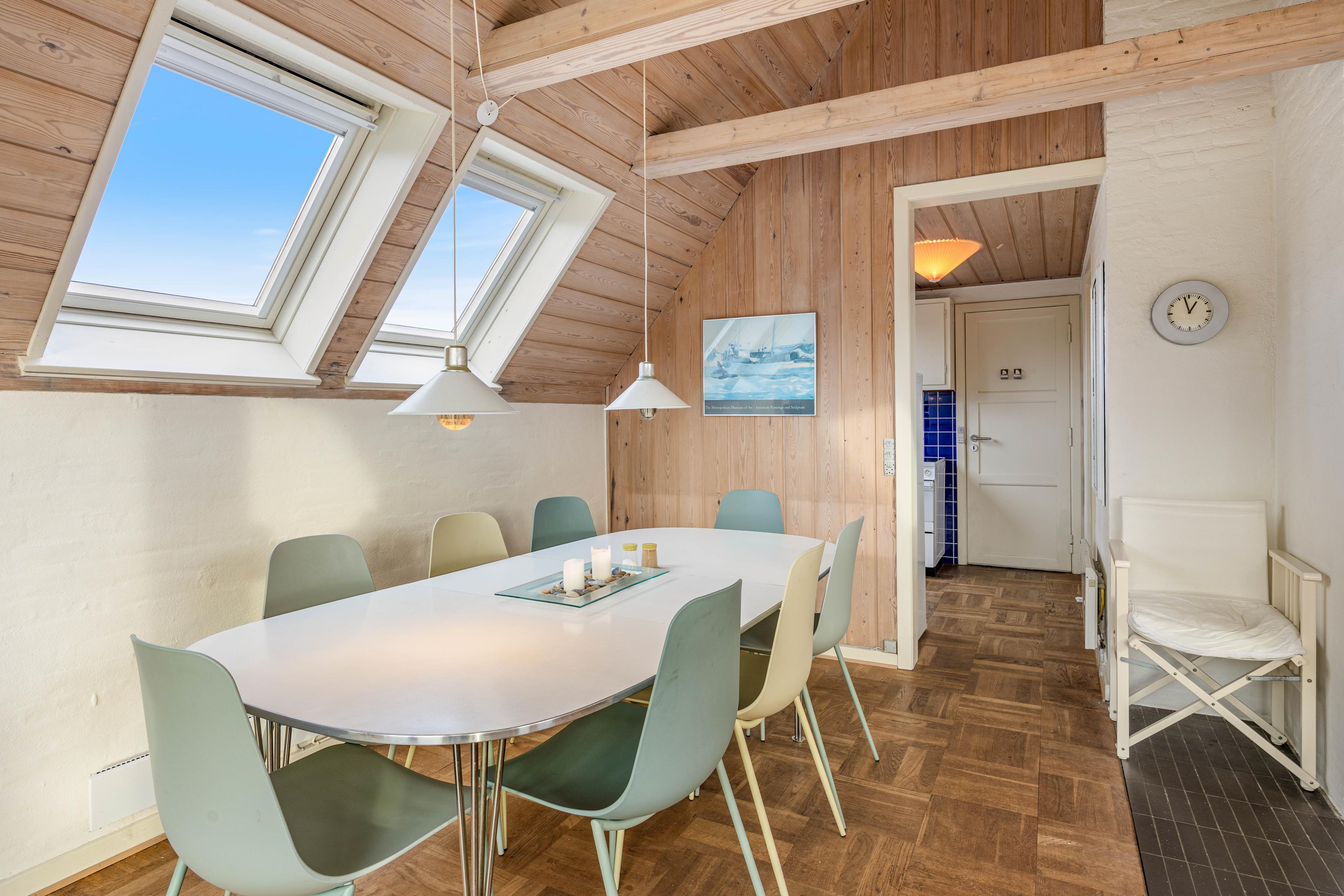 In diesem Ferienhaus finden bis zu 6 Personen Platz, sodass ihr einen Urlaub mit Familie oder Freunden in vollen Zügen genießen könnt. Zwei Schlafzimmer stehen zur Verfügung, wovon eines ist mit zwei Einzelbetten ausgestattet, das andere Schlafzimmer hat ein Etagenbett, ideal für Kinder. Darüber hinaus gibt es zwei weitere Schlafplätze im heimeligen Dachgeschoss. Alle Schlafräume versprechen eine erholsame Nacht und sorgen dafür, dass jeder genügend Platz für sich hat.